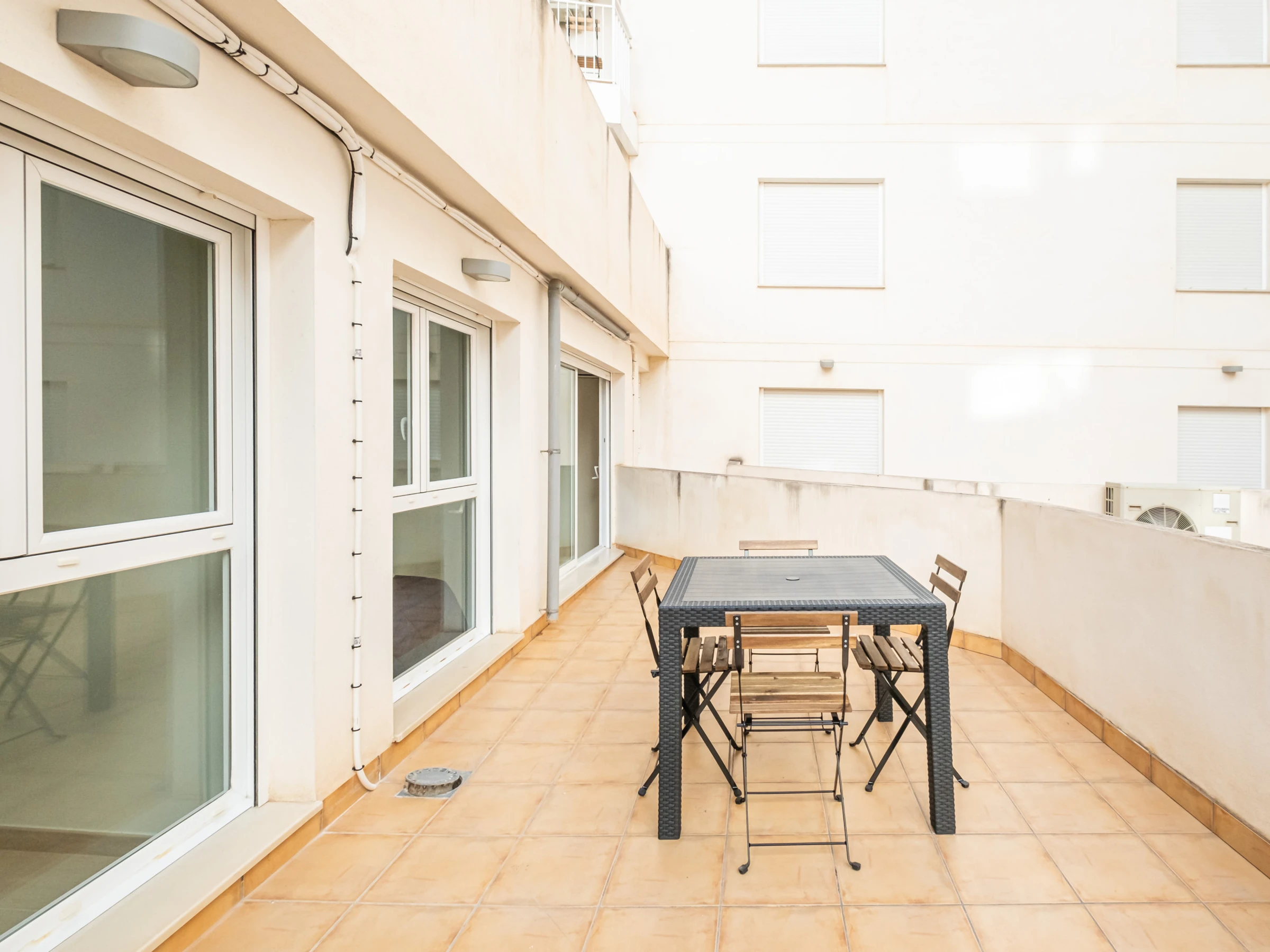 Die Unterkunft verfügt über aufzug, 5 m² terrasse, waschmaschine, bügeleisen/-brett, internet (WLAN), haartrockner, heizung, klimaanlage, überdachter parkplatz in in grundstücksnähe, 1 Fernseher.