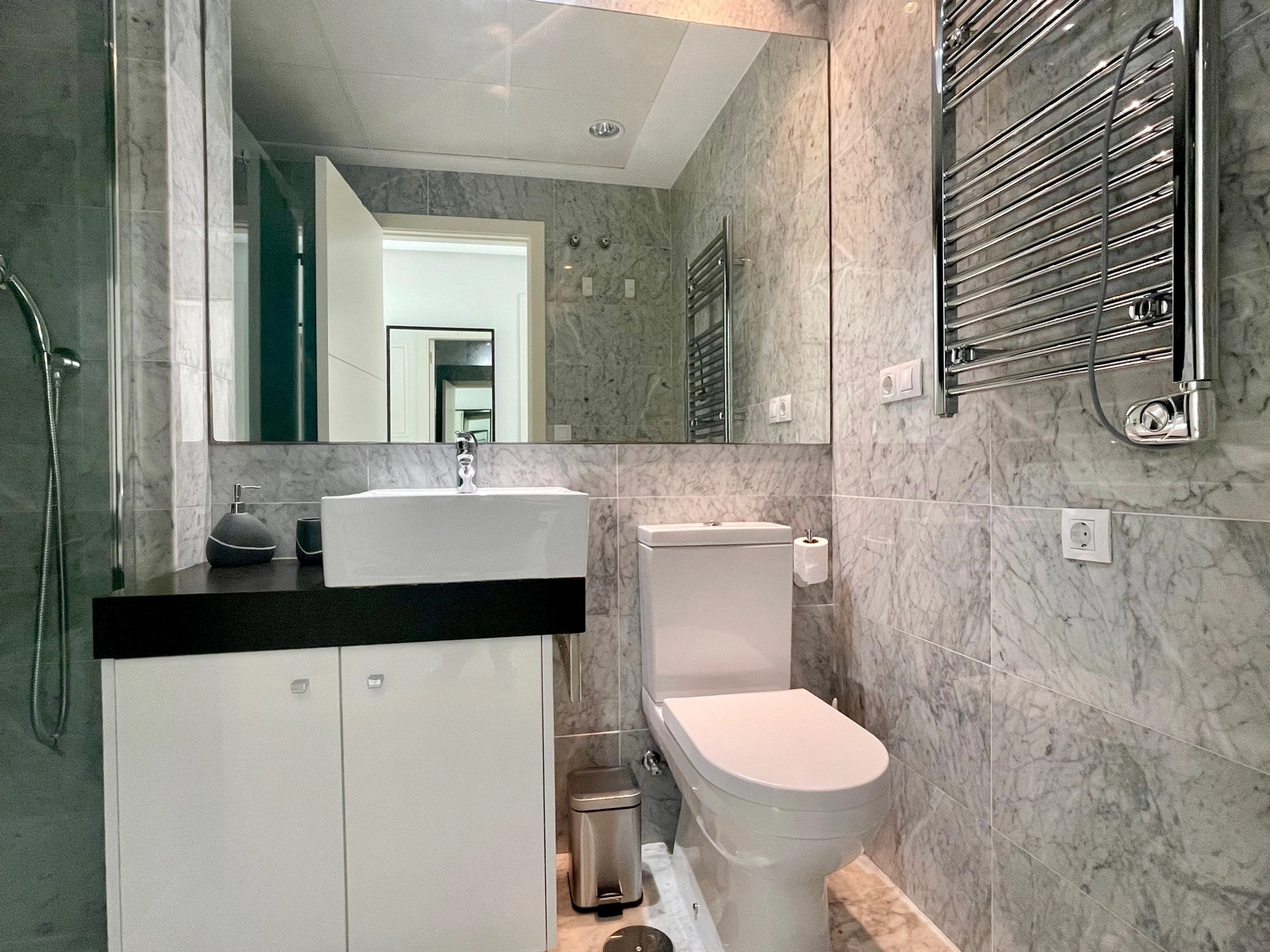 Sie verfügt über 10 m² Terrasse, Bügeleisen, Internetzugang (WLAN), Heizung mit Wärmepumpe, Klimaanlage in der gesamten Unterkunft, Gemeinschaftspool, Garage im selben Gebäude, Fernsehen.