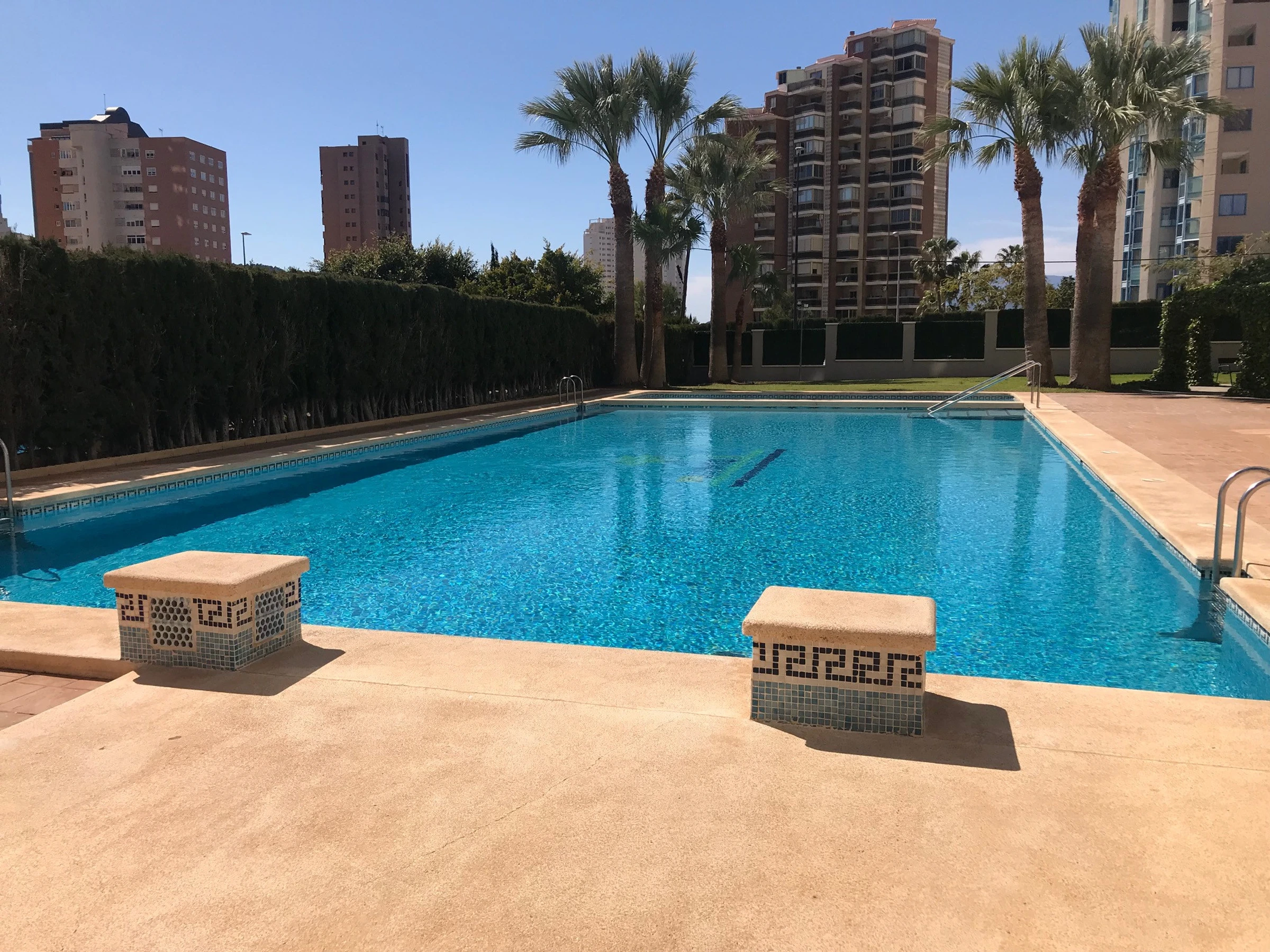Wohnung in einer geschlossenen Wohnanlage in einer Wohnzone von Cala de Benidorm. Die Wohnung befindet sich in einer ruhigen Gegend, nur 500 m vom Poniente-Strand entfernt und 5 Minuten mit dem Auto vom Einkaufszentrum La Marina und den Themenparks von Benidorm.