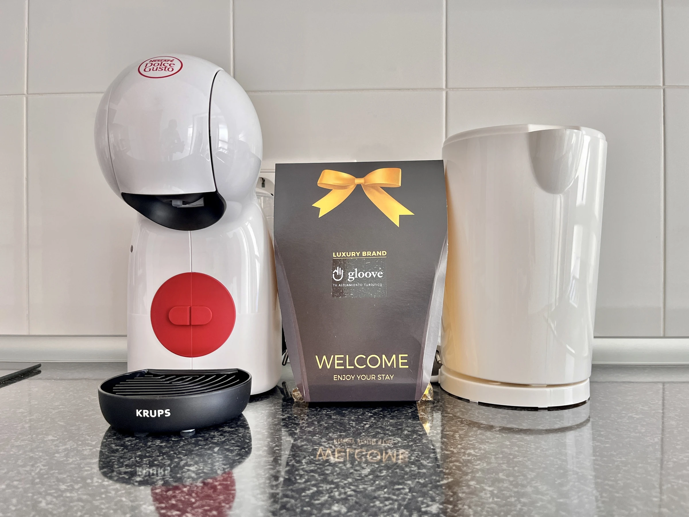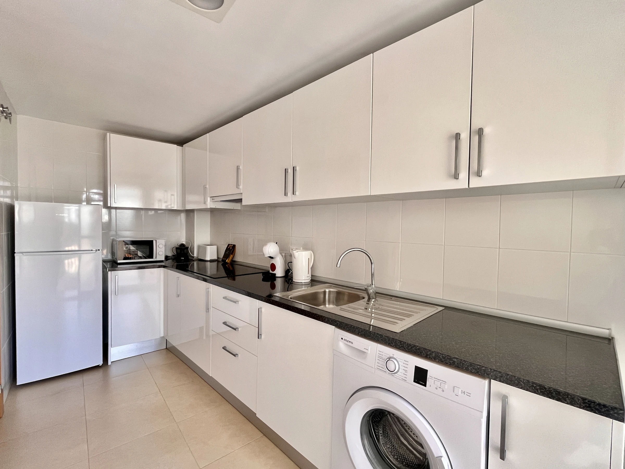 Die Küche ist von einer Induktionskochplatte bis hin zu Kühlschrank, Mikrowelle, Gefrierschrank, Kaffeemaschine, Toaster, Wasserkocher und Entsafter komplett ausgestattet. Auch eine Waschmaschine, Bügeleisen und Bügelbrett finden Sie vor.