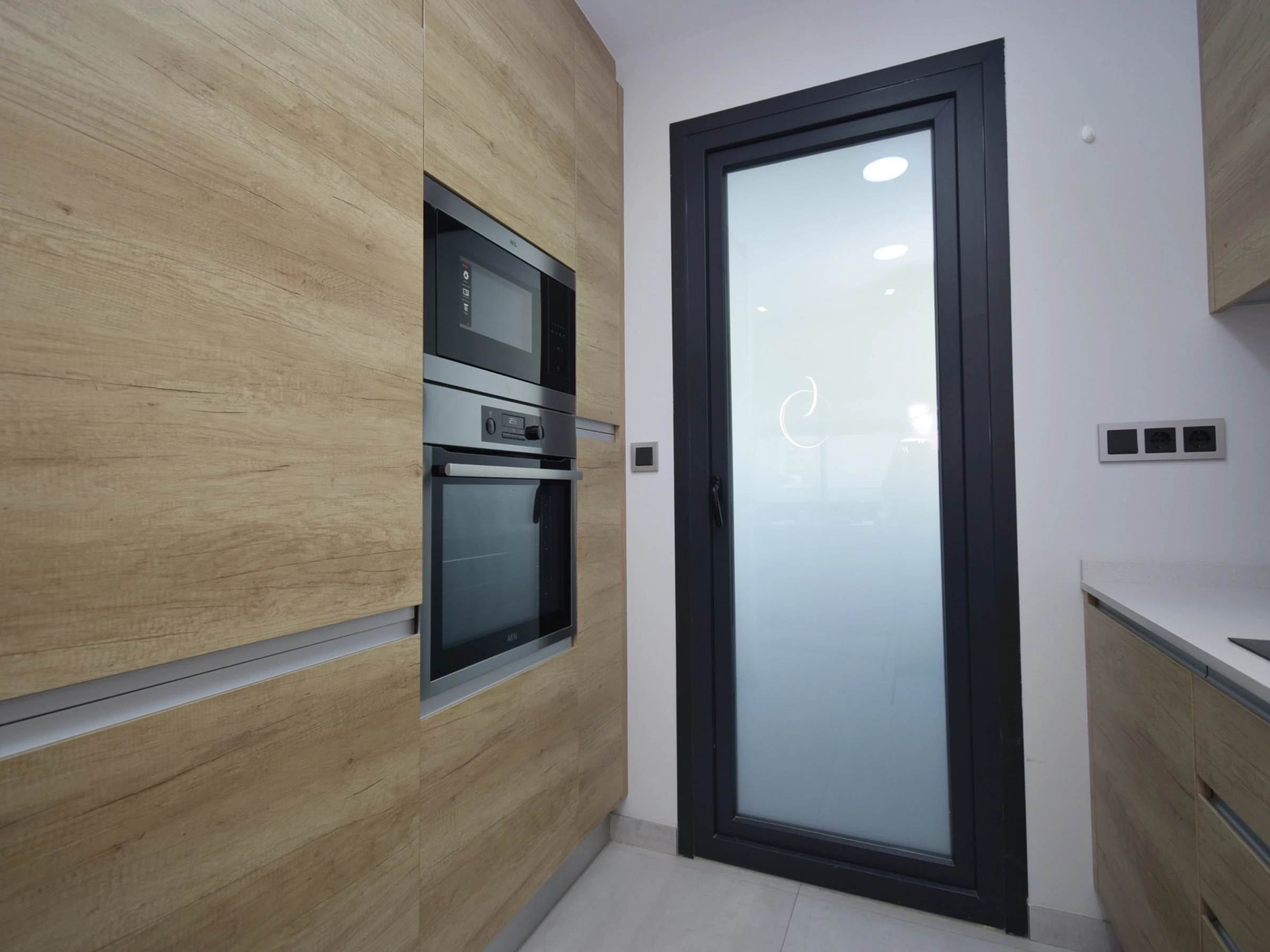 Dieses offene küche, mit ceranfeld, ist ausgestattet in kühlschrank, mikrowelle, backofen, gefrierschrank, geschirr/besteck, kochutensilien, kaffeemaschine, toaster, wasserkocher und saftpresse.