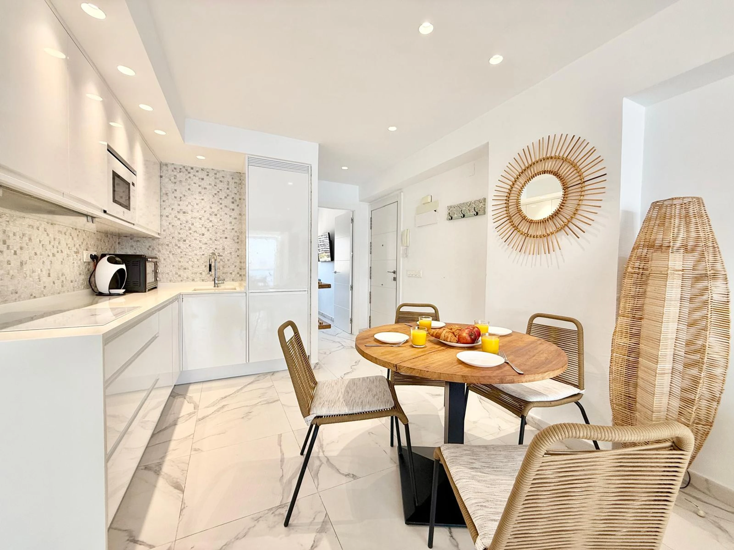 Dieses offene küche, ist ausgestattet in kühlschrank, mikrowelle, gefrierschrank, spülmaschine, geschirr/besteck, kochutensilien, kaffeemaschine, toaster und wasserkocher.