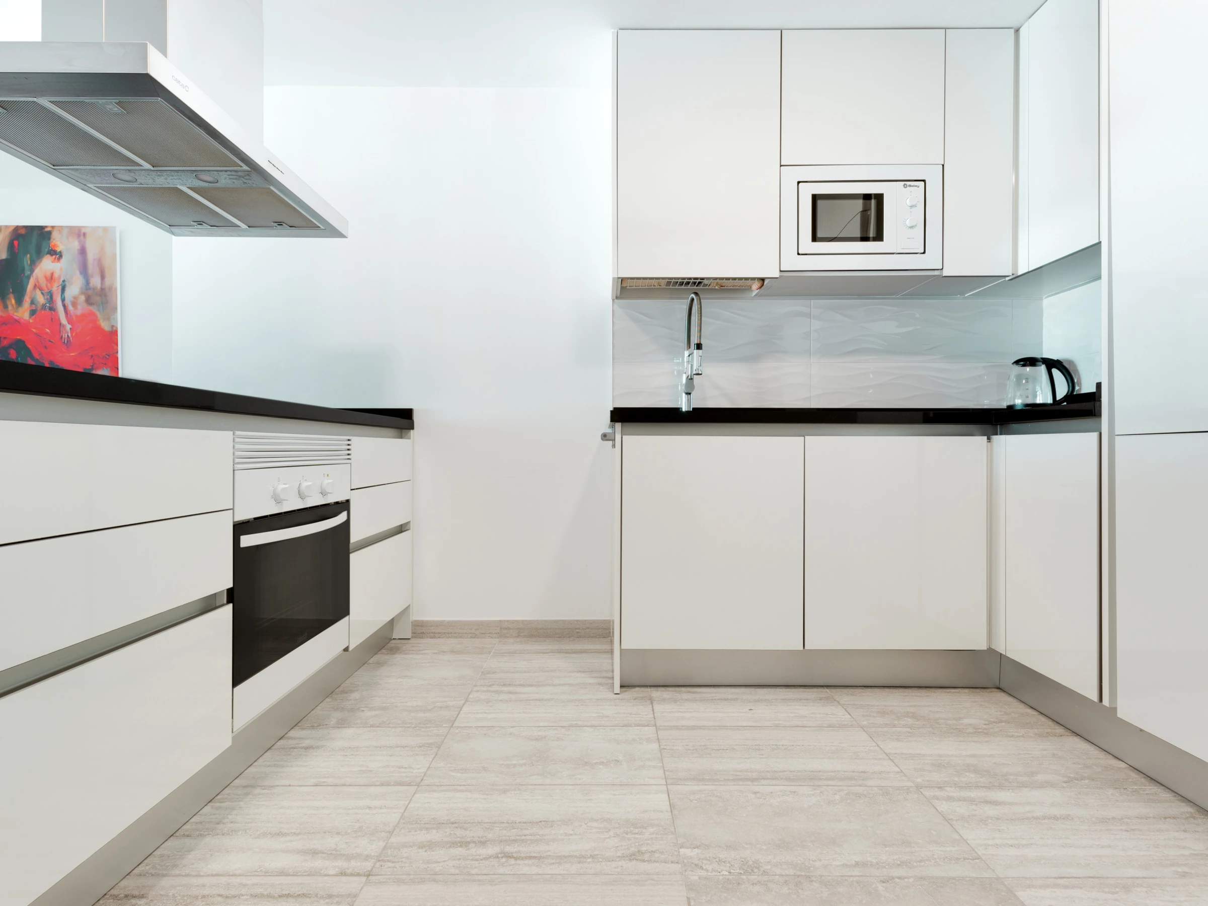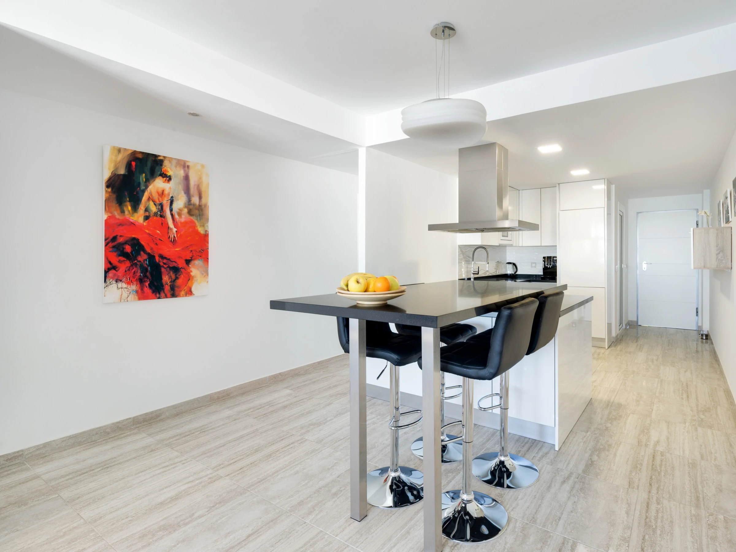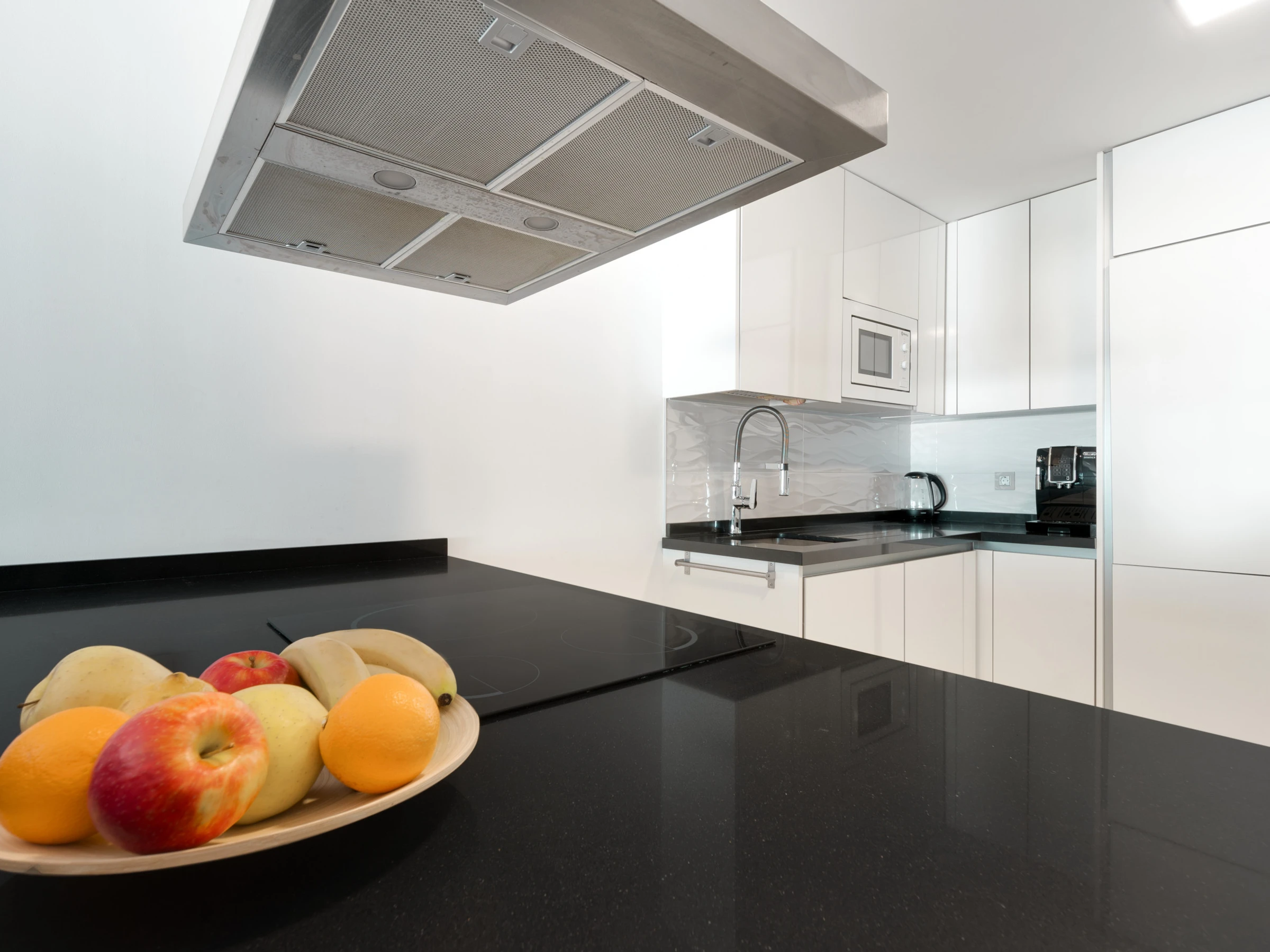 Dieses offene küche, mit ceranfeld, ist ausgestattet in kühlschrank, mikrowelle, backofen, gefrierschrank, spülmaschine, geschirr/besteck, kochutensilien, kaffeemaschine, toaster, wasserkocher und saftpresse.