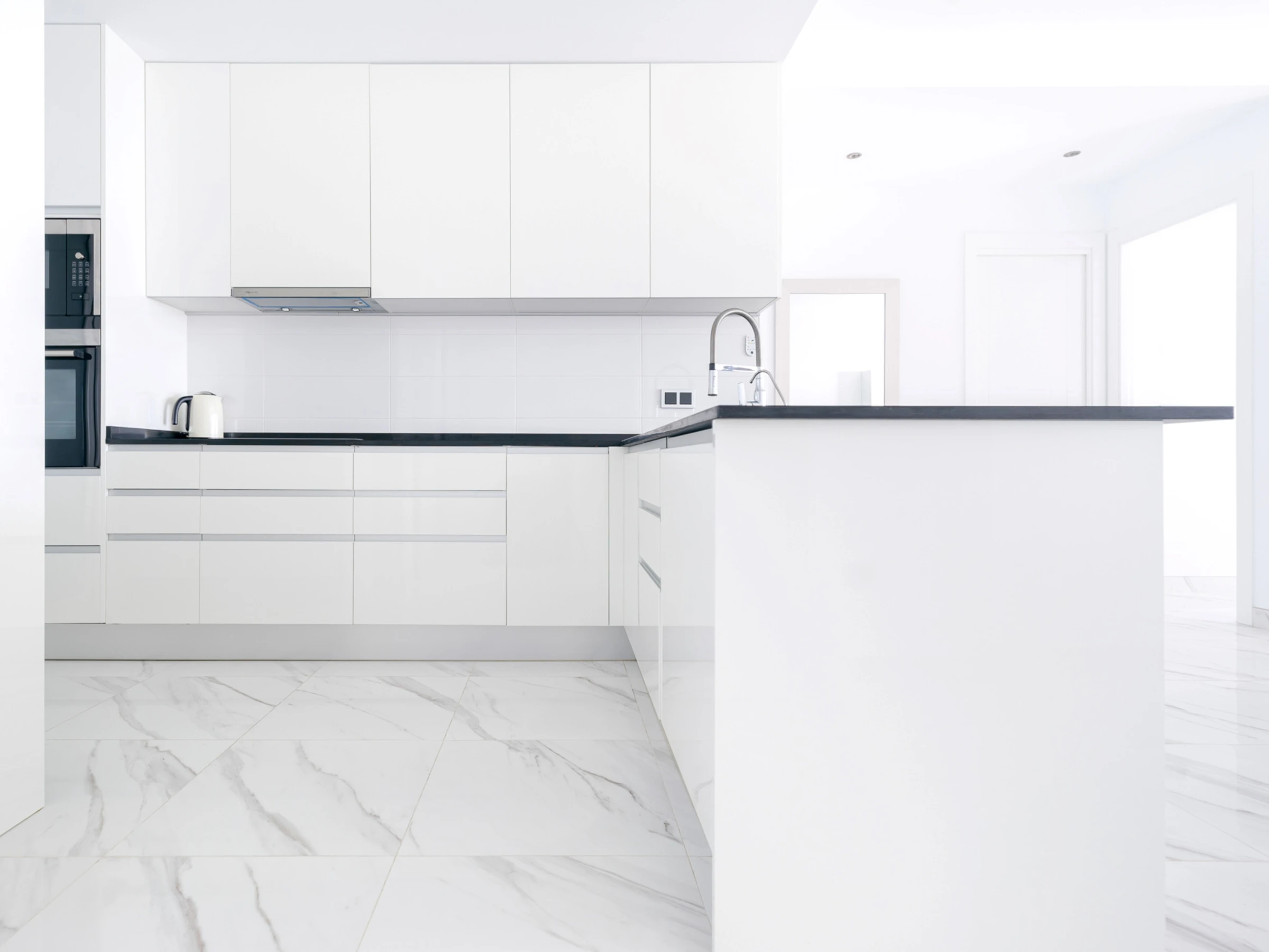 Dieses offene küche, mit induktions-kochfeld, ist ausgestattet in kühlschrank, mikrowelle, backofen, gefrierschrank, spülmaschine, geschirr/besteck, kochutensilien, kaffeemaschine, toaster, wasserkocher und saftpresse.