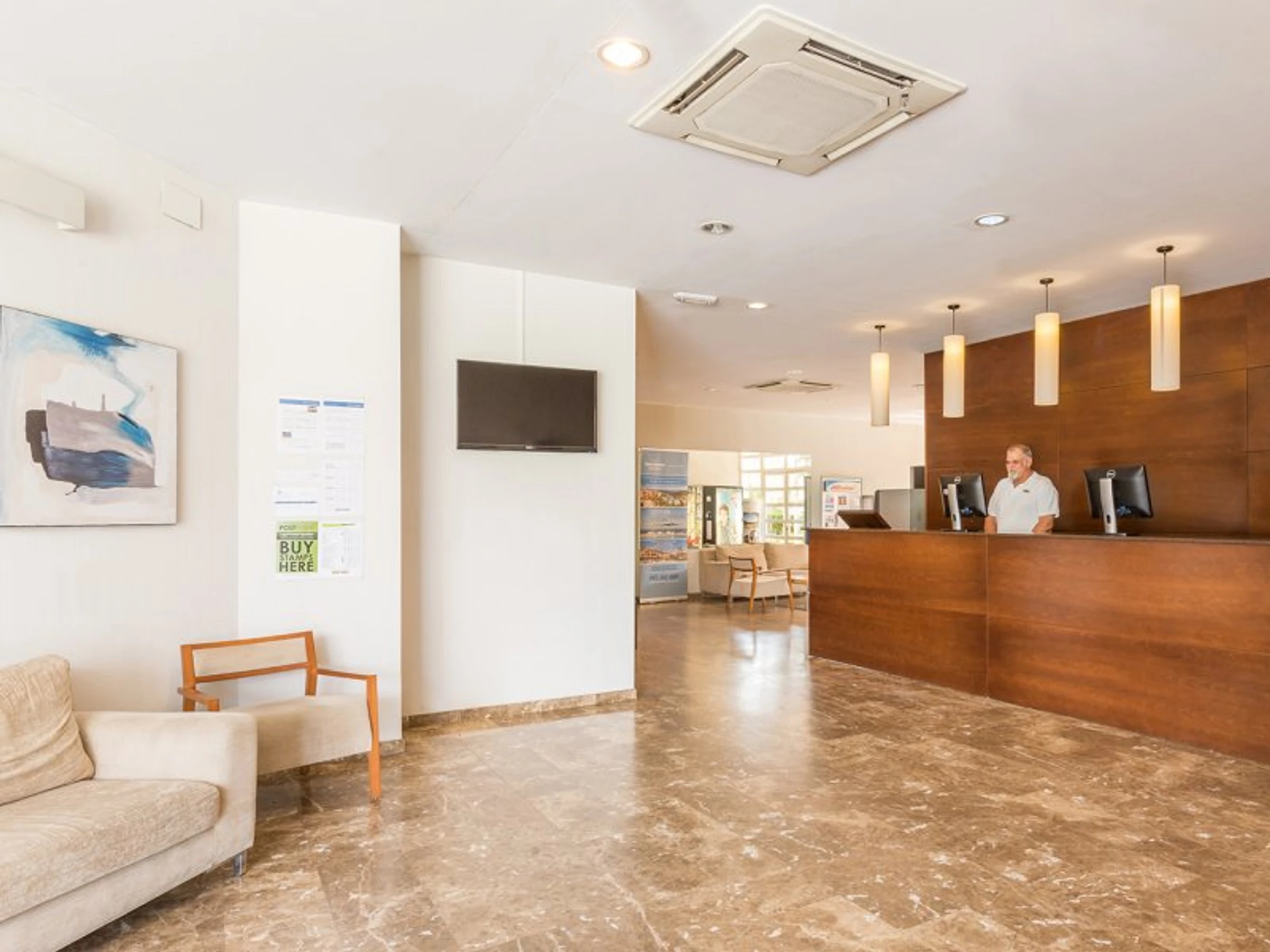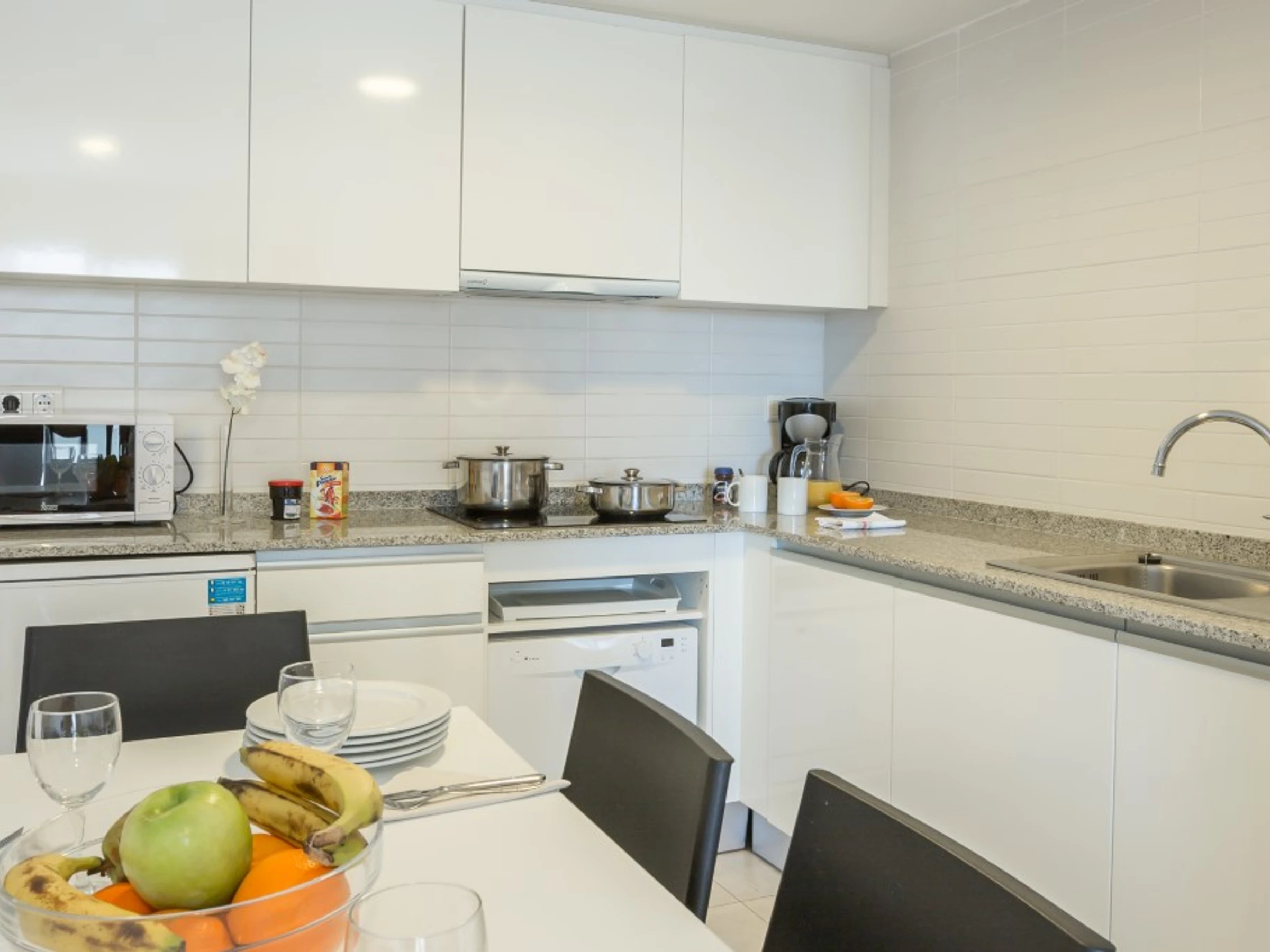 Dieses küche, ist ausgestattet in mikrowelle, spülmaschine und kaffeemaschine.