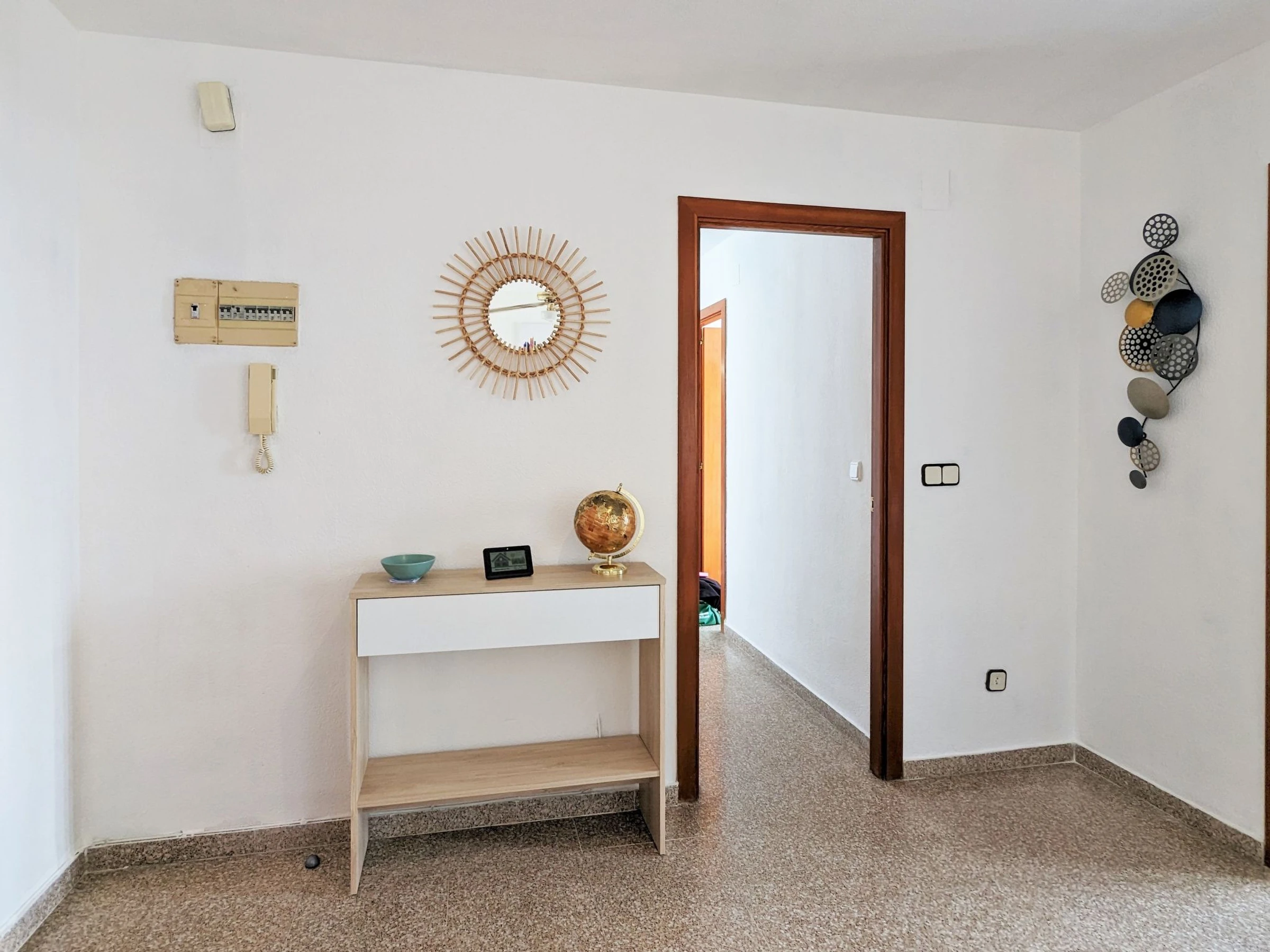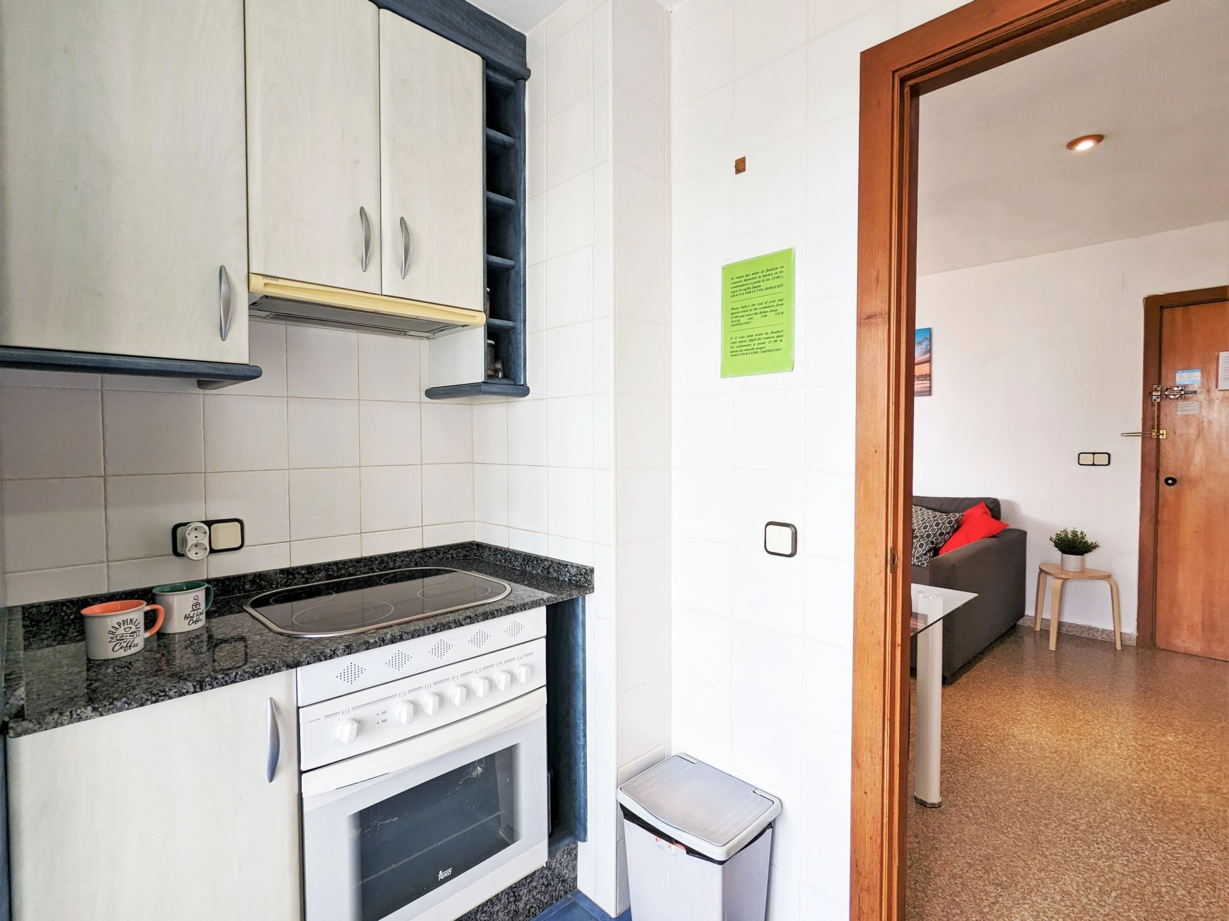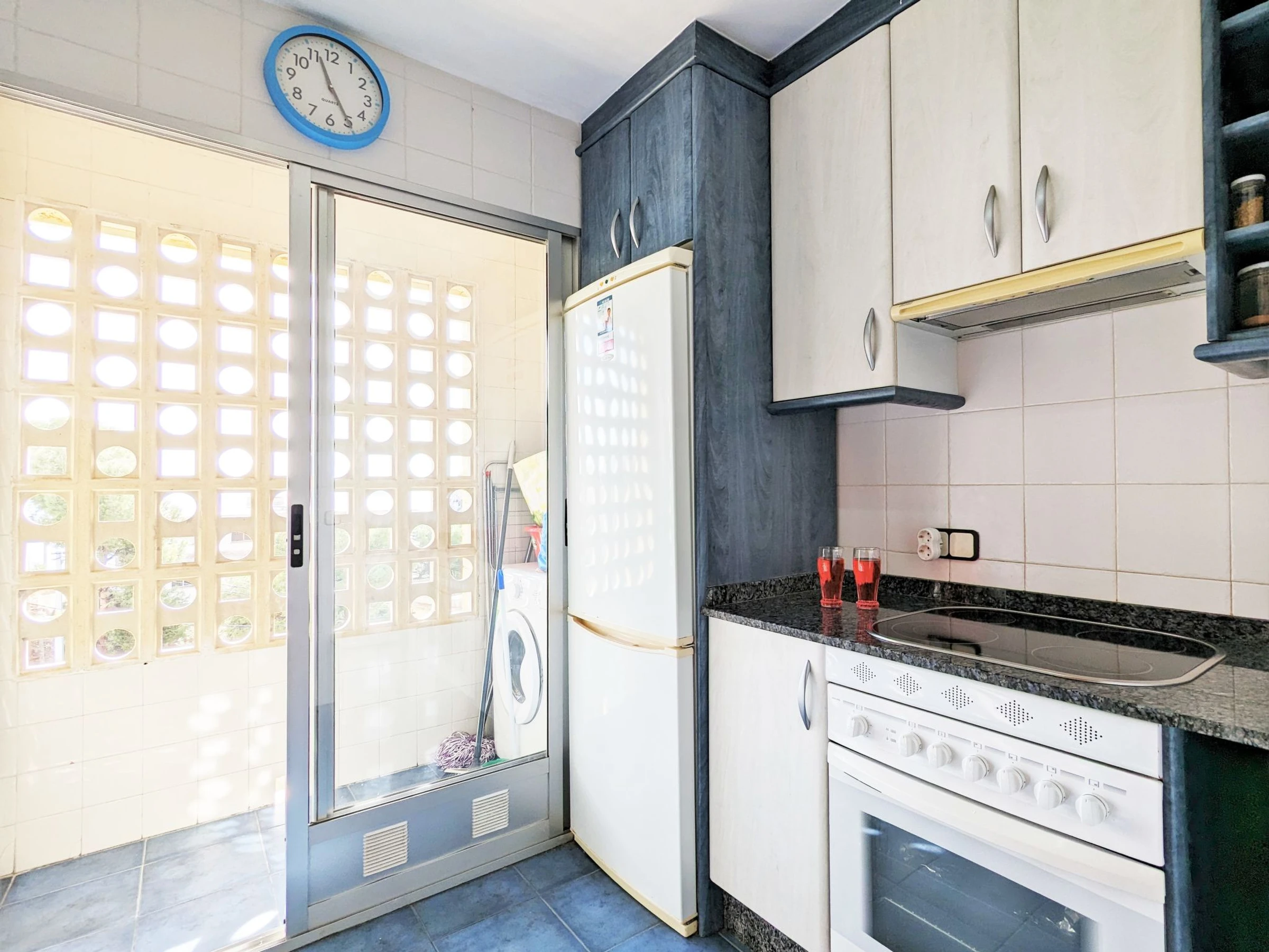 "Coblanca XVI", 3-Zimmer-Wohnung 50 m2 im 4. Stock, Ostlage. Geräumig und hell, zweckmässig und komfortabel eingerichtet: Wohn-/Esszimmer 16 m2 mit Digital-TV, E-Heizung, Klimaanlage, Ventilator und Warmluftheizung. Ausgang zur Terrasse. 1 Zimmer 7 m2 mit 2 Betten (90 cm, Länge 190 cm), Ventilator. 1 Zimmer 10 m2 mit 1 franz. Bett (150 cm, Länge 200 cm), Digital-TV und Ventilator. Küche (Backofen, Geschirrspüler, 4 Glaskeramikplatten, Toaster, Wasserkocher, Mikrowelle, Tiefkühler, elektrische Kaffeemaschine). Bad/Bidet/WC. Boiler (50 Liter). Kleine Terrasse. Terrassenmöbel. Fernsicht auf das Meer, die Berge, den Garten und die Ortschaft. Zur Verfügung: Waschmaschine, Bügeleisen, Haartrockner. Parkplatz Nr. S/N. [hidden] // Reg. Nr.: ESFCTU000003043000052904000000000000[hidden]5