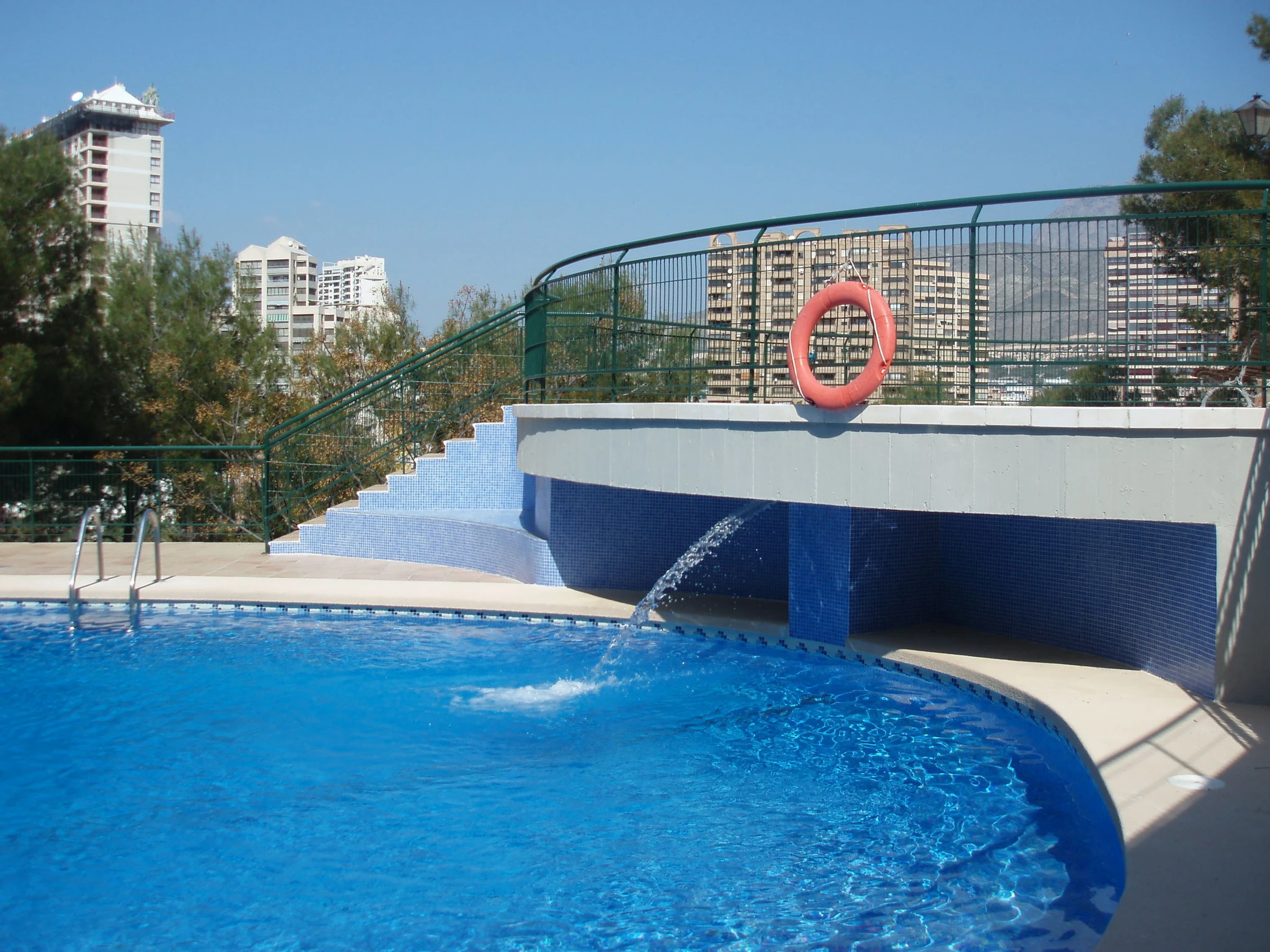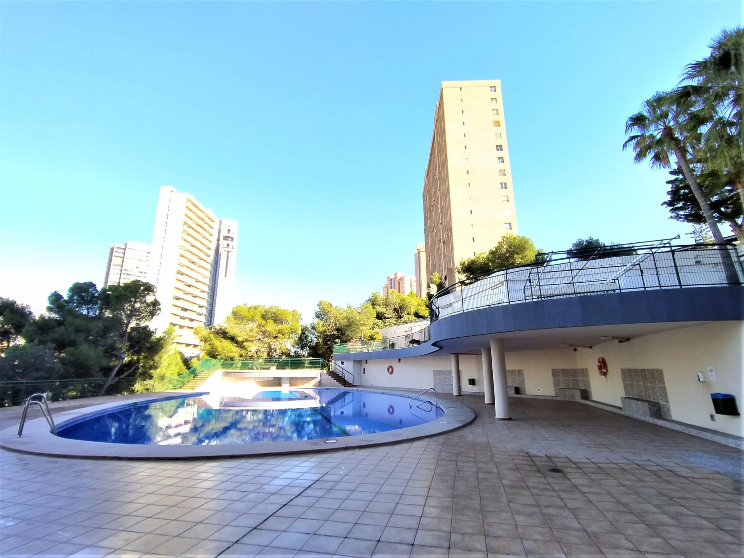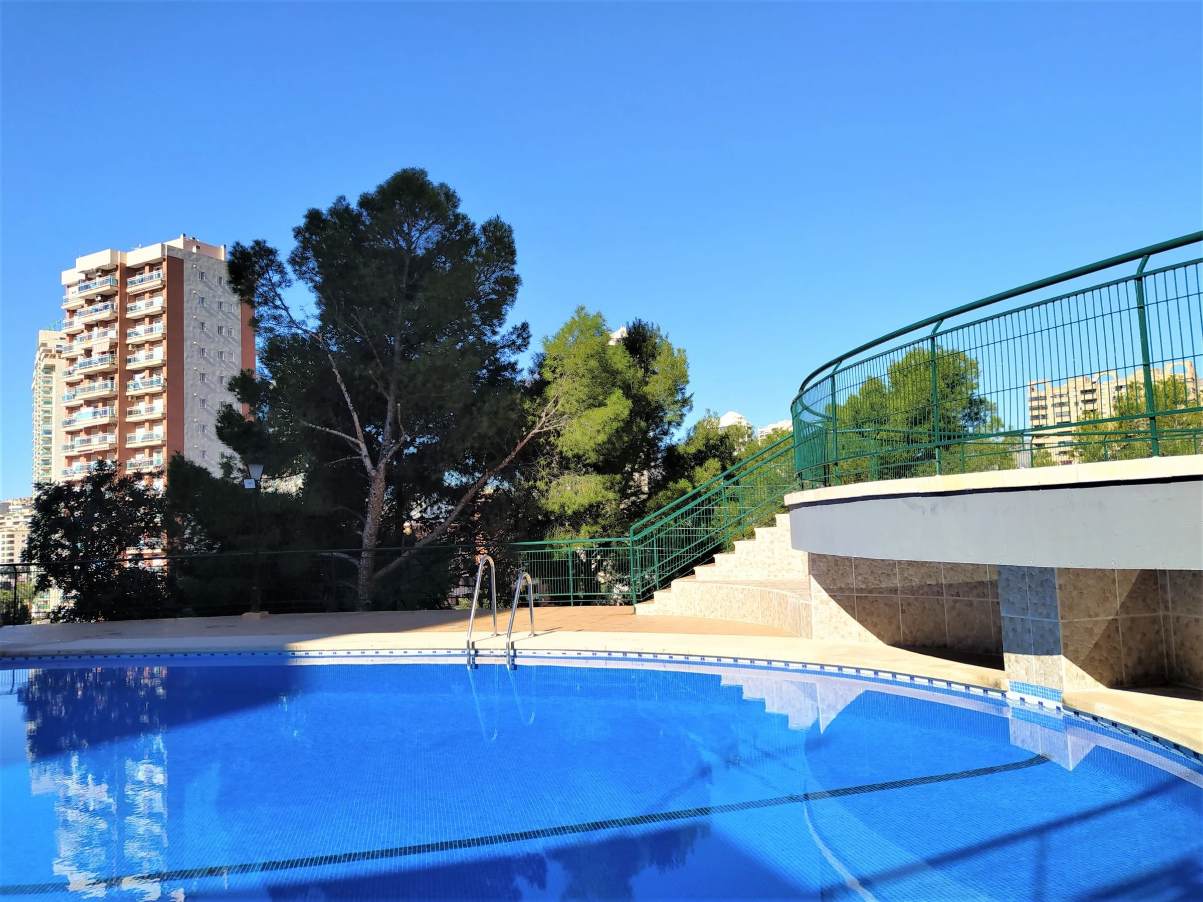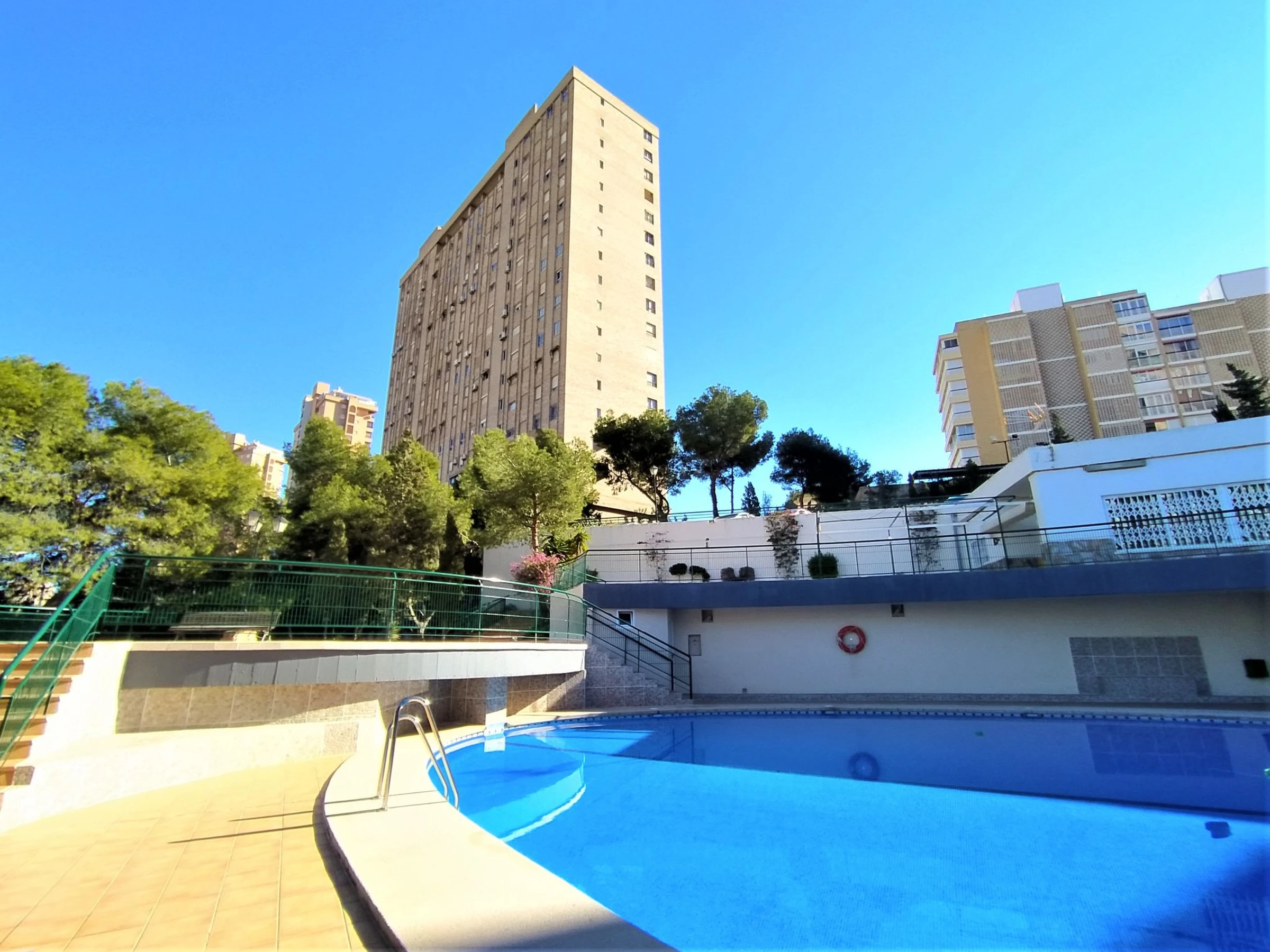 Playa de Poniente: Grosses, einfaches Appartementhaus "Coblanca XVI", auf 16 Stockwerken, umgeben von Bäumen. Im Ort, 3 km vom Zentrum von Benidorm, im Bezirk Playa Poniente, ruhige, sonnige, erhöhte Lage, 400 m vom Meer, 400 m vom Strand, Richtung Osten. Zur Mitbenutzung: Grundstück (eingezäunt), terrassierter Garten Pflanzen und Bäumen, Naturgarten 800 m2 (eingezäunt), Schwimmbad (7 x 15 m, 78 - 230 cm tief, saisonale Verfügbarkeit: [hidden] - [hidden] Kinderbecken, Aussendusche, Tennis (extra). In der Anlage: Fahrstuhl. Parkplatz auf dem Grundstück, öffentliche Parkplätze. Einkaufsgeschäft 500 m, Supermarkt 400 m, Einkaufszentrum, Restaurant 500 m, Bar, Café 100 m, Bushaltestelle "Benidorm" 400 m, Bahnstation "Benidorm" 4 km. Golfplatz (18 Loch) 4 km, Wanderwege ab Haus 600 m. Nahe gelegene Sehenswürdigkeiten: Benidorm Palace 7 km, Aqualandia 7 km, Mundomar 7 km, Terra Mitica 4 km, Terra Natura 4 km, Alicante 40 km. Bitte beachten: Babyausstattung auf Anfrage. Der Besitzer akzeptiert keine Jugendgruppen.