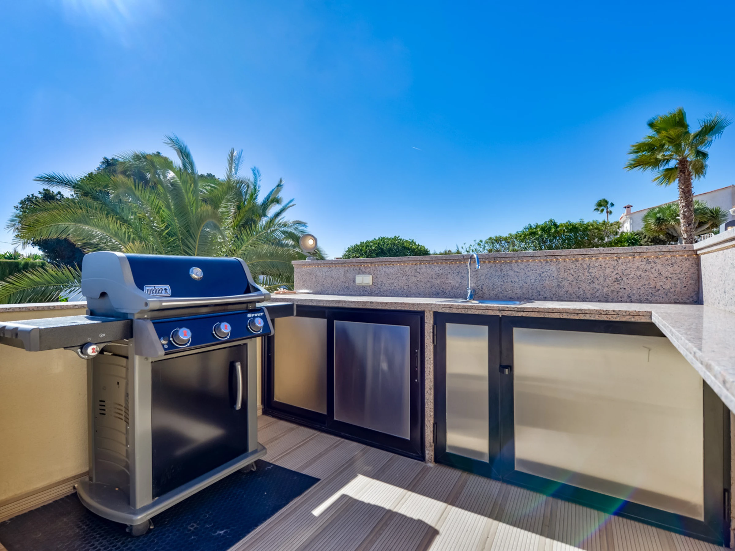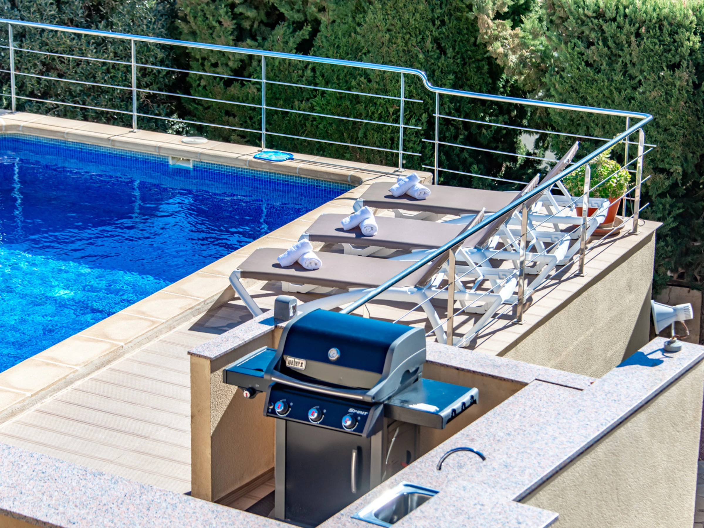 Das Grundstück ist 703 m2 groß. Ein gepflegter Garten mit Bäumen, die das Grundstück umarmen und mit Räumen, die dazu einladen, abzuschalten und unvergessliche Momente mit Ihren Lieben zu teilen. Der Swimmingpool, der über eine bequeme Treppe zu erreichen ist, ist der perfekte Ort, um Spaß zu haben, mit einem spektakulären Grillplatz und einer Bar, Sonnenliegen zum Sonnenbaden, einer Pool-Dusche und einem Terrassentisch, um im Freien mit Blick auf das Meer zu speisen.