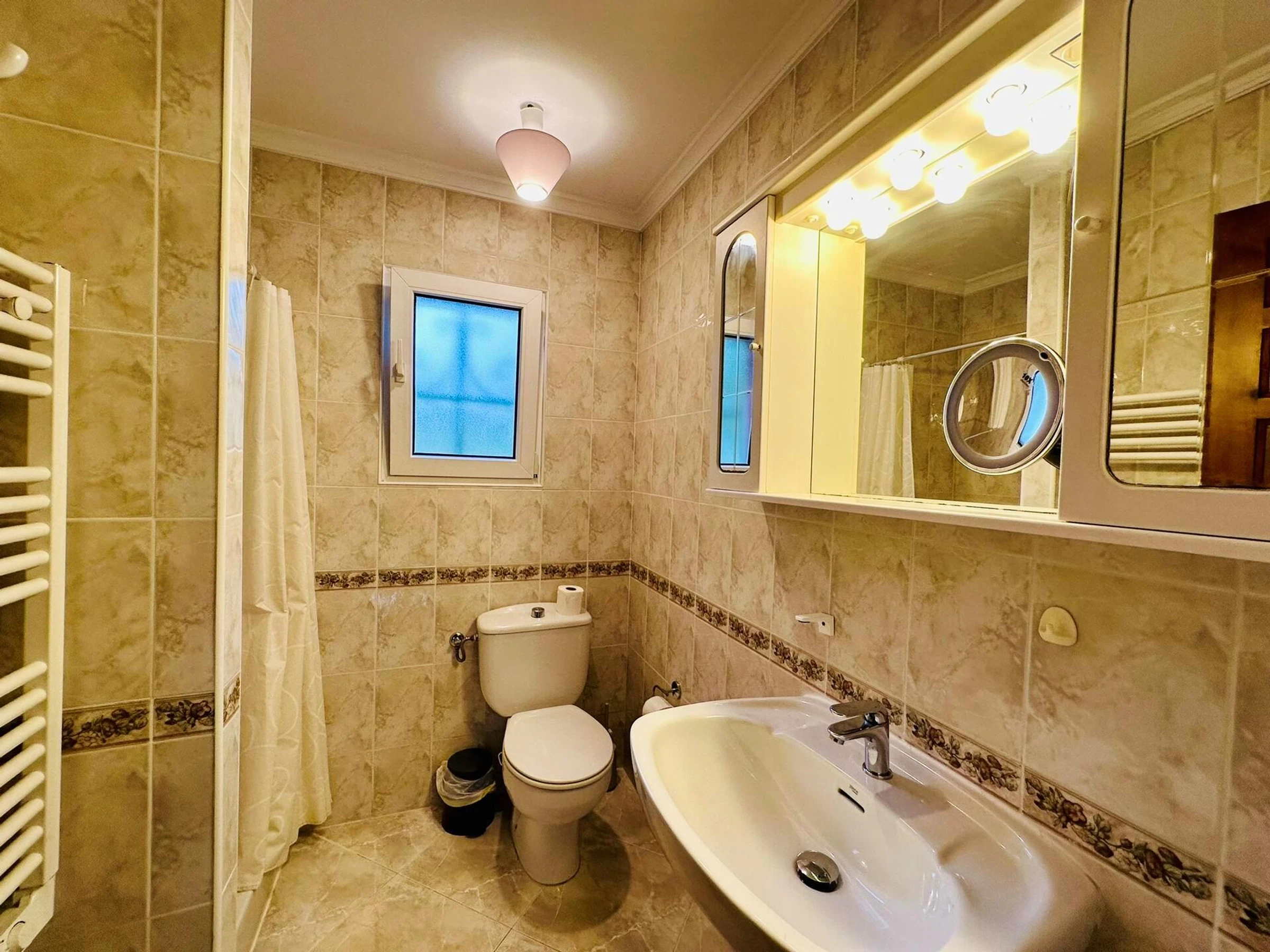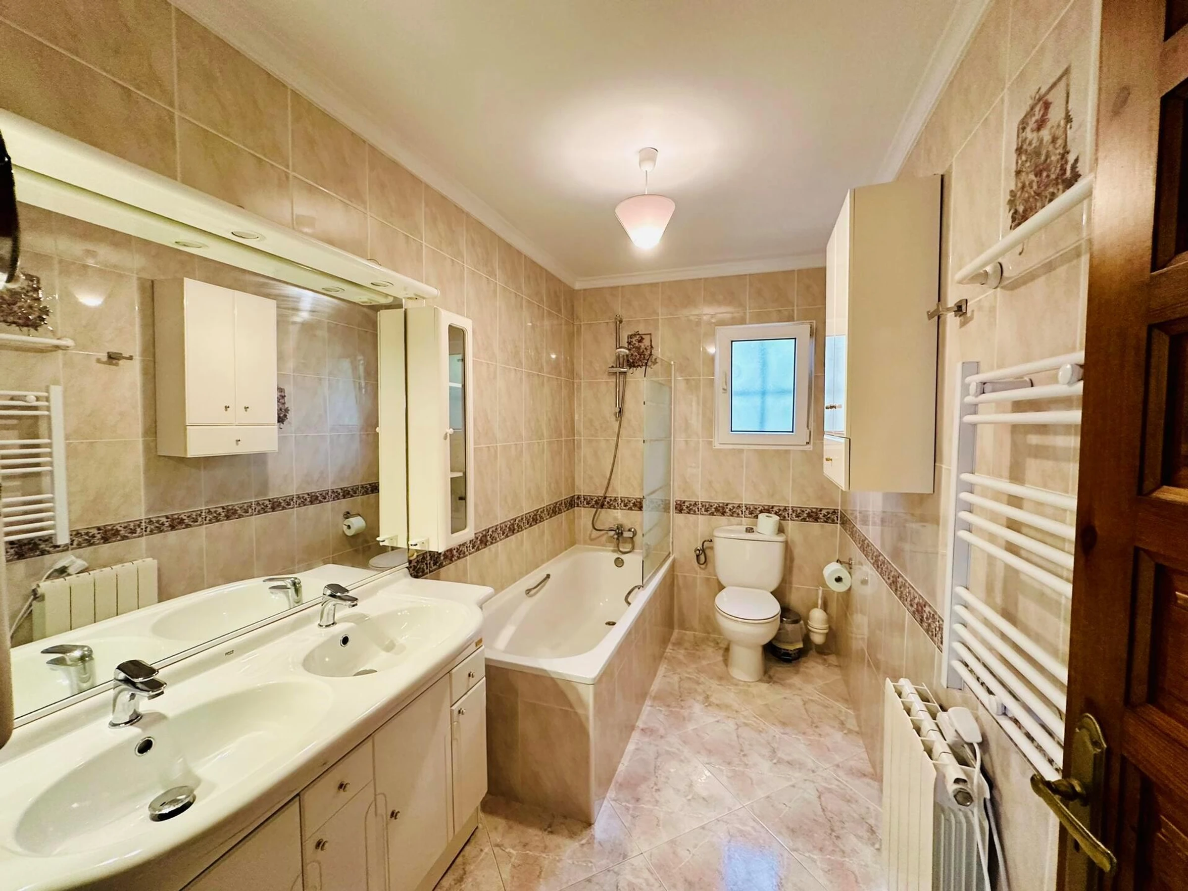 * Eigenes Badezimmer mit Waschbecken, Badewanne und WC