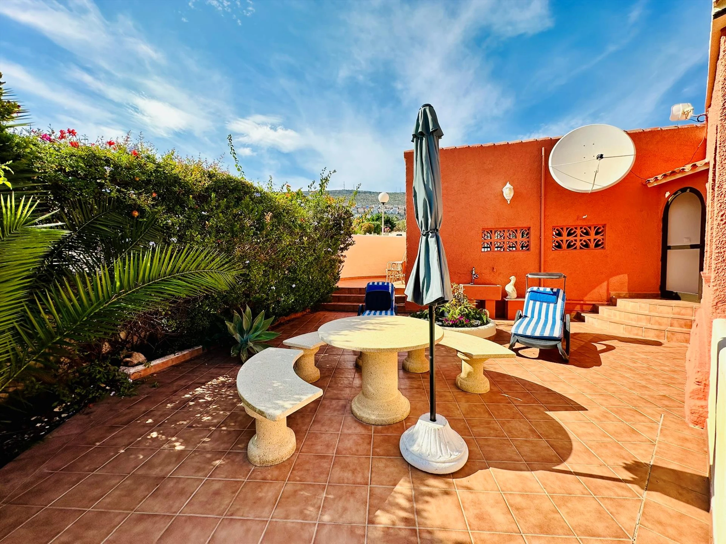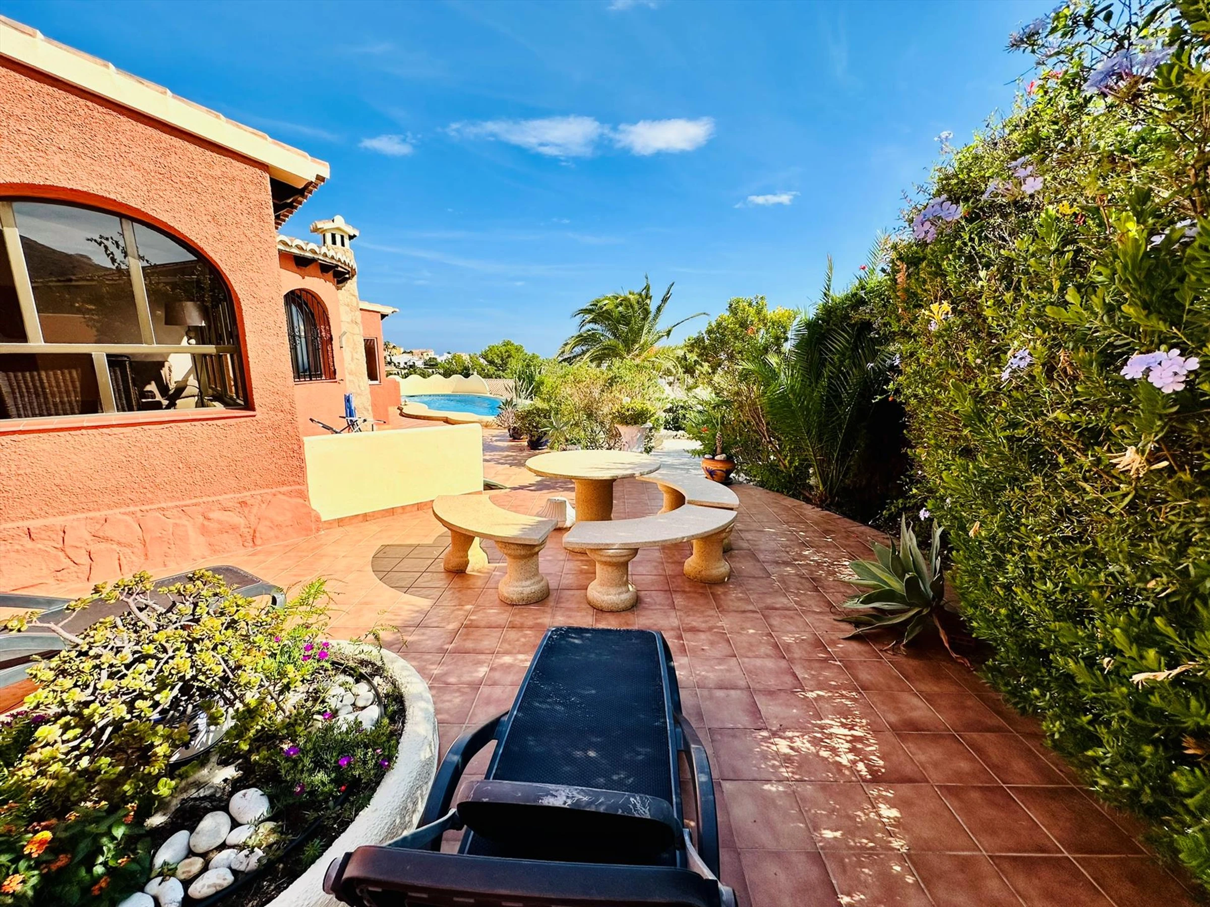 Villa mit privatem Pool in Benitachell, Costa Blanca, Spanien für 4 Personen. Das Haus befindet sich in einer Küsten- und Wohngegend, in der Nähe von Restaurants und Bars, Supermärkten und einem Tennisplatz und ist 2 km vom Strand entfernt.