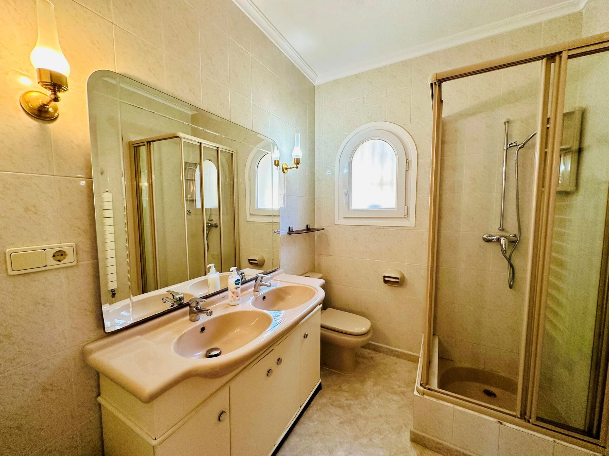 * Badezimmer mit Waschbecken und DuscheAußenbereich der Villa