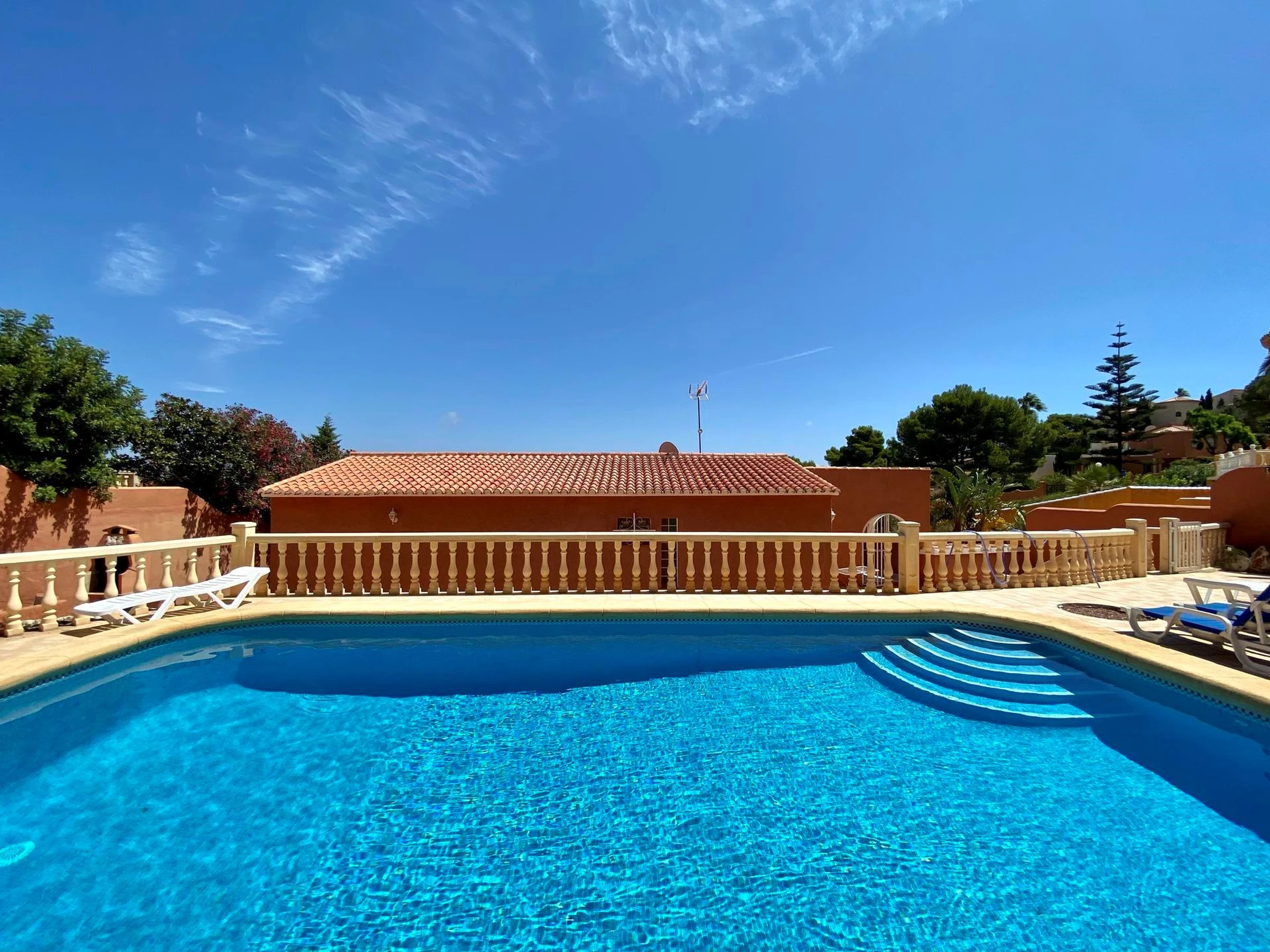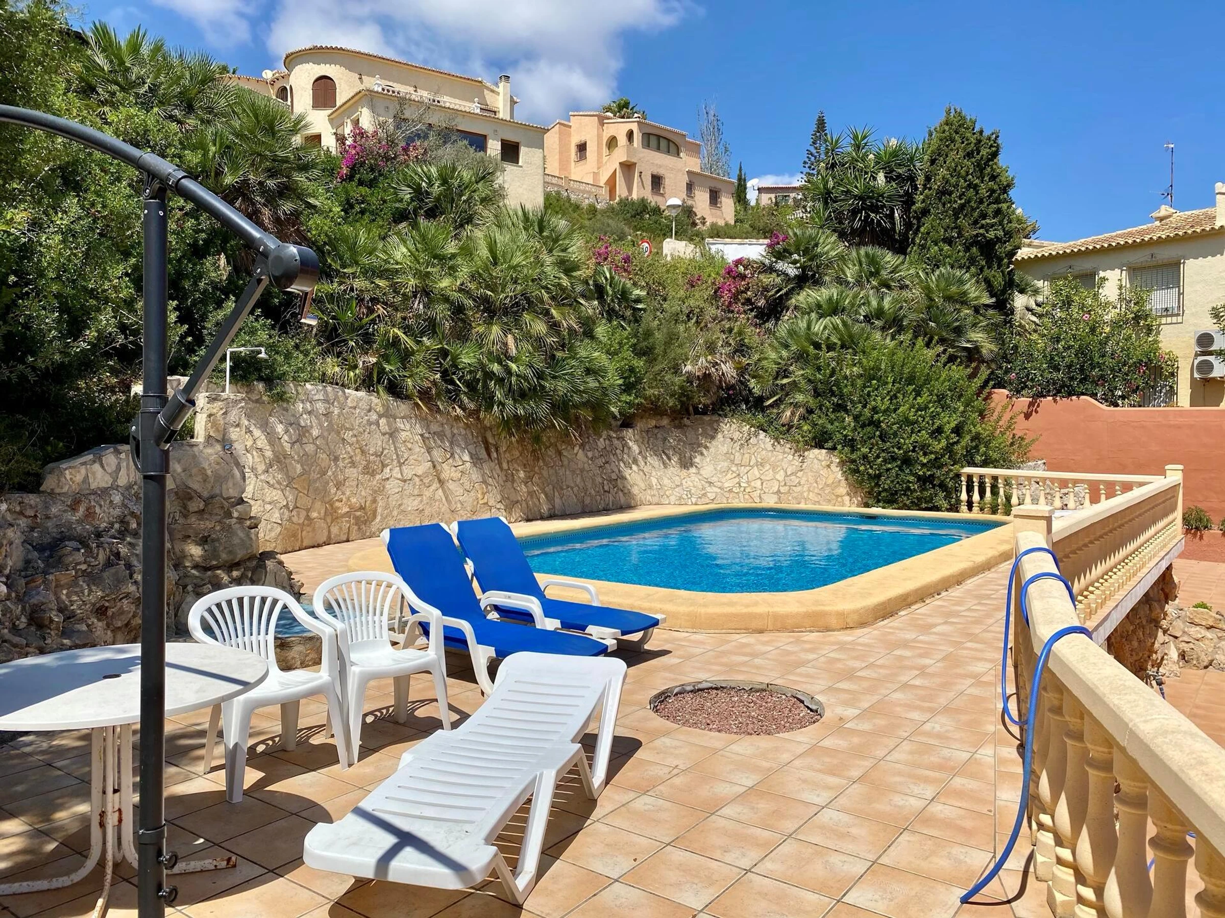 Villa in Benitachell, Costa Blanca, Spanien mit privatem Pool für 4 Personen. Das Haus befindet sich in einer küstennahen, hügeligen Wohngegend und ist 4 km vom Strand entfernt.