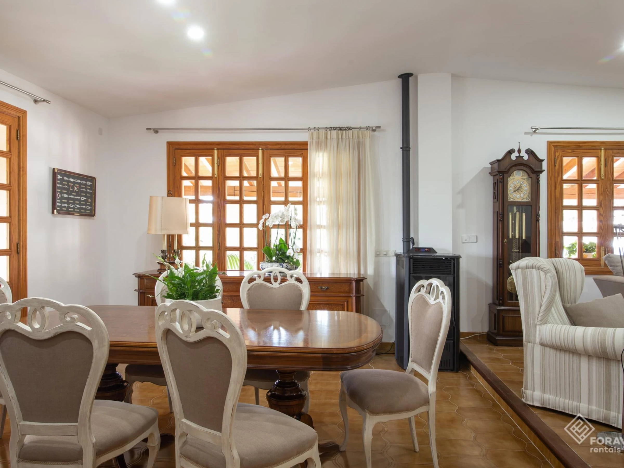 Was die Klimaanlage betrifft, verfügt die Unterkunft im Wohnzimmer und im Verteiler über Warm- / Kaltklimageräte. Dieses letzte Gerät dient zum Lüften der drei Schlafzimmer vom Flur.