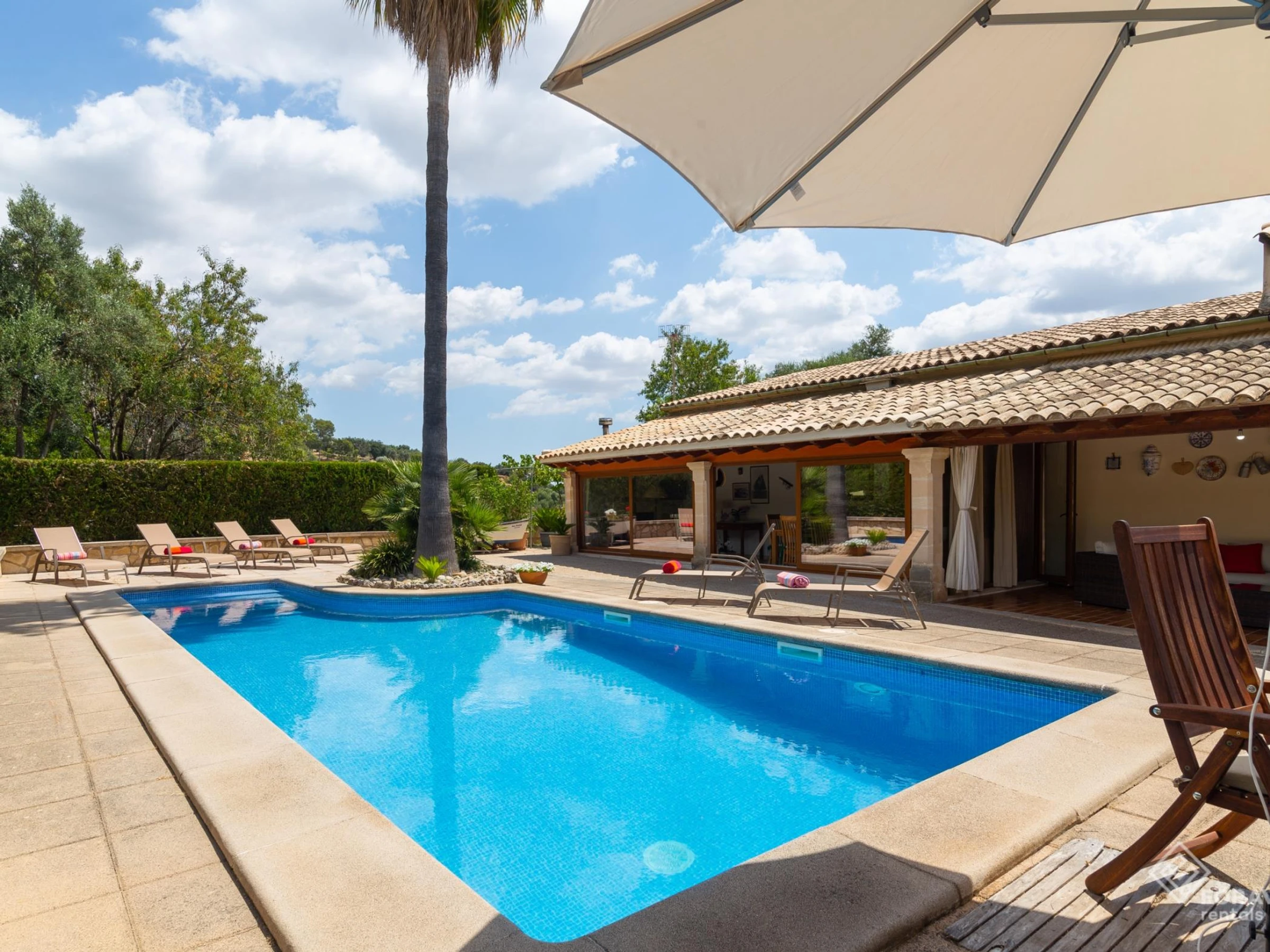 Diese wunderschöne Villa, in der Regel für Kunden über 27, liegt in einer sehr ruhigen ländlichen Gegend am Stadtrand von Selva. Das Haus, komplett ausgestattet, hat einen klassischen Charakter, der perfekt mit dem typischen Stil mallorquinischer Villen kombiniert ist. Es ist sehr geräumig und hell und es kümmert sich um das kleinste Detail. Was das Äußere betrifft, hat es einen großen Swimmingpool, mehrere möblierte Terrassen und einen wunderschönen Garten mit Naturrasen. Ohne Zweifel ist es ein idyllischer Ort, um Zeit im Freien zu verbringen und die Sonne Mallorcas zu genießen.