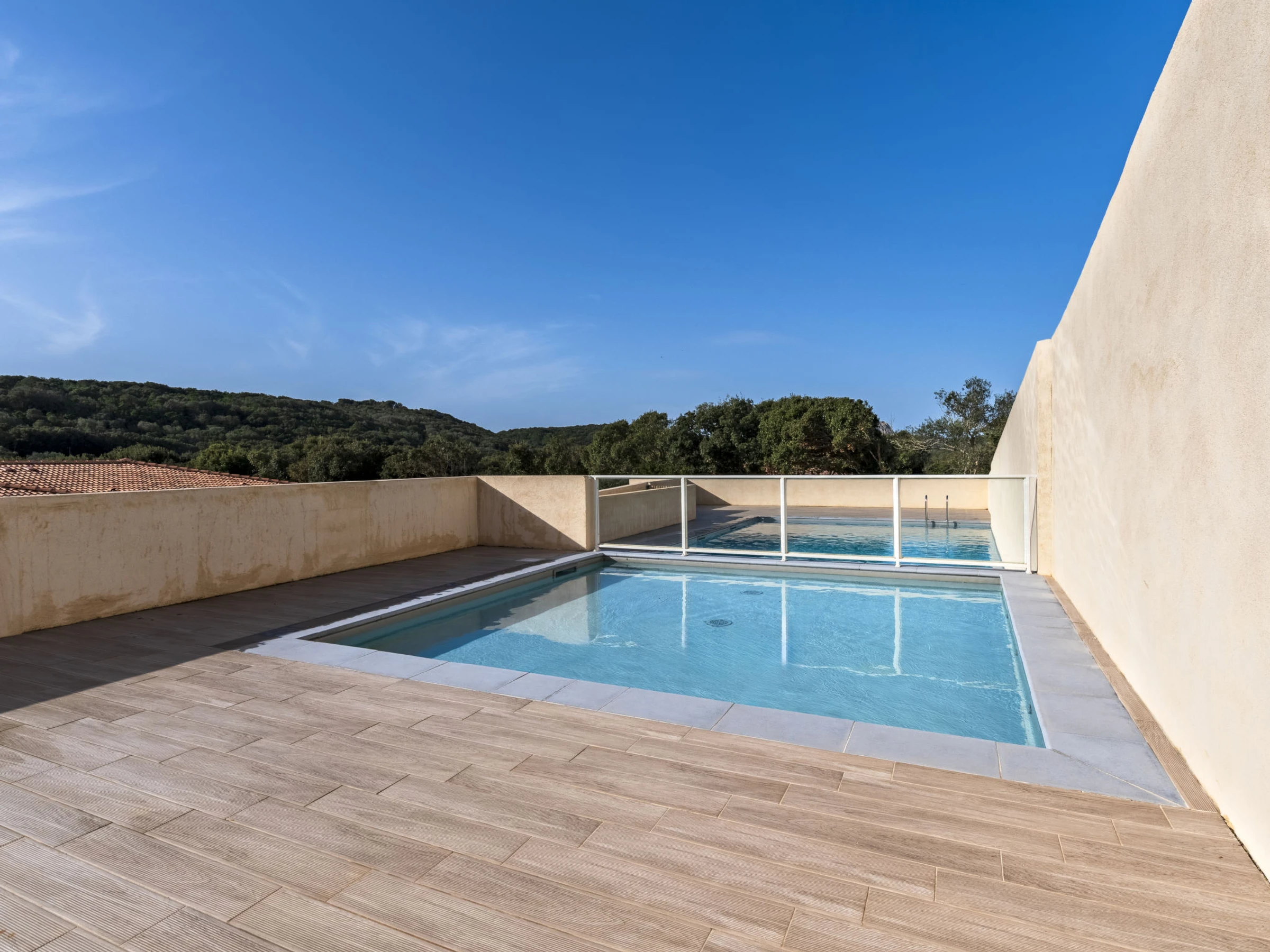 Bonifacio: Modernes Appartementhaus "Foce Dell Edera", Baujahr 2023. Ruhige Lage, 2.2 km vom Meer, 2.2 km vom Strand. Zur Mitbenutzung: Schwimmbad eingezäunt (6 x 12 m, 140 - 140 cm tief, saisonale Verfügbarkeit: [hidden] - [hidden] Kinderbecken, Parkplatz. Supermarkt 3 km, Restaurant 100 m, Bushaltestelle "Port Bonifacio (petit train)" 2.6 km, Sandstrand "Plage de Paraguan" 2.2 km. Sporthafen 3.5 km, Golfplatz (18 Loch) 8 km. Nahe gelegene Sehenswürdigkeiten: Ville de Porto-Vecchio 26 km, Plage du petit Sperone 9 km, Plage de Sant'Amanza 7 km. Bekannte Seen in der Umgebung sind gut erreichbar: Etang de Balistra 10 km. Wandergebiete: Bruzzi 20 km. Bitte beachten: Fahrzeug empfohlen. Die Residenz wird durch elektrische Tore geschlossen.