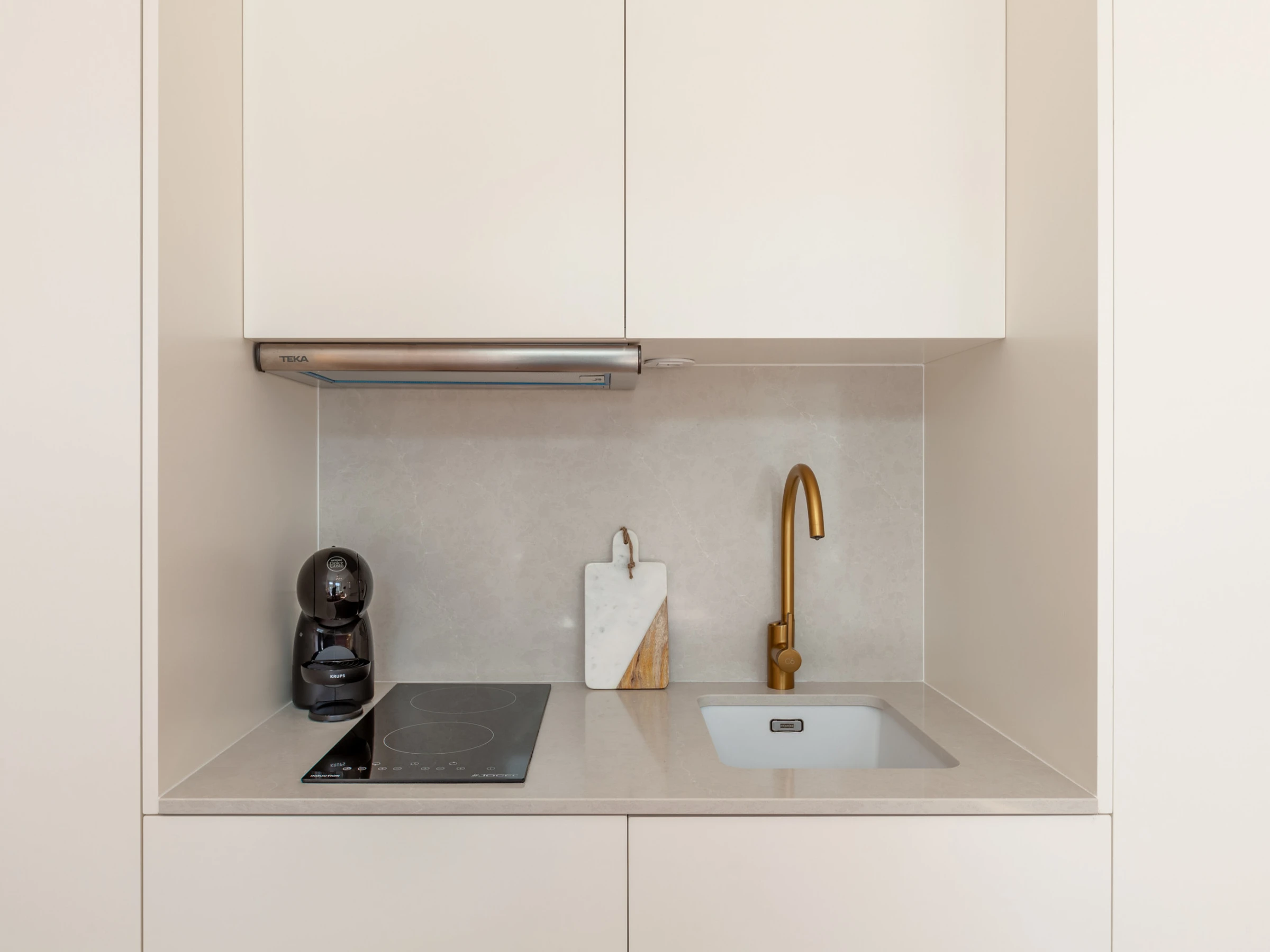 Dieses offene küche, mit ceranfeld, ist ausgestattet in kühlschrank, mikrowelle, backofen, geschirr/besteck, kochutensilien, kaffeemaschine, toaster und wasserkocher.