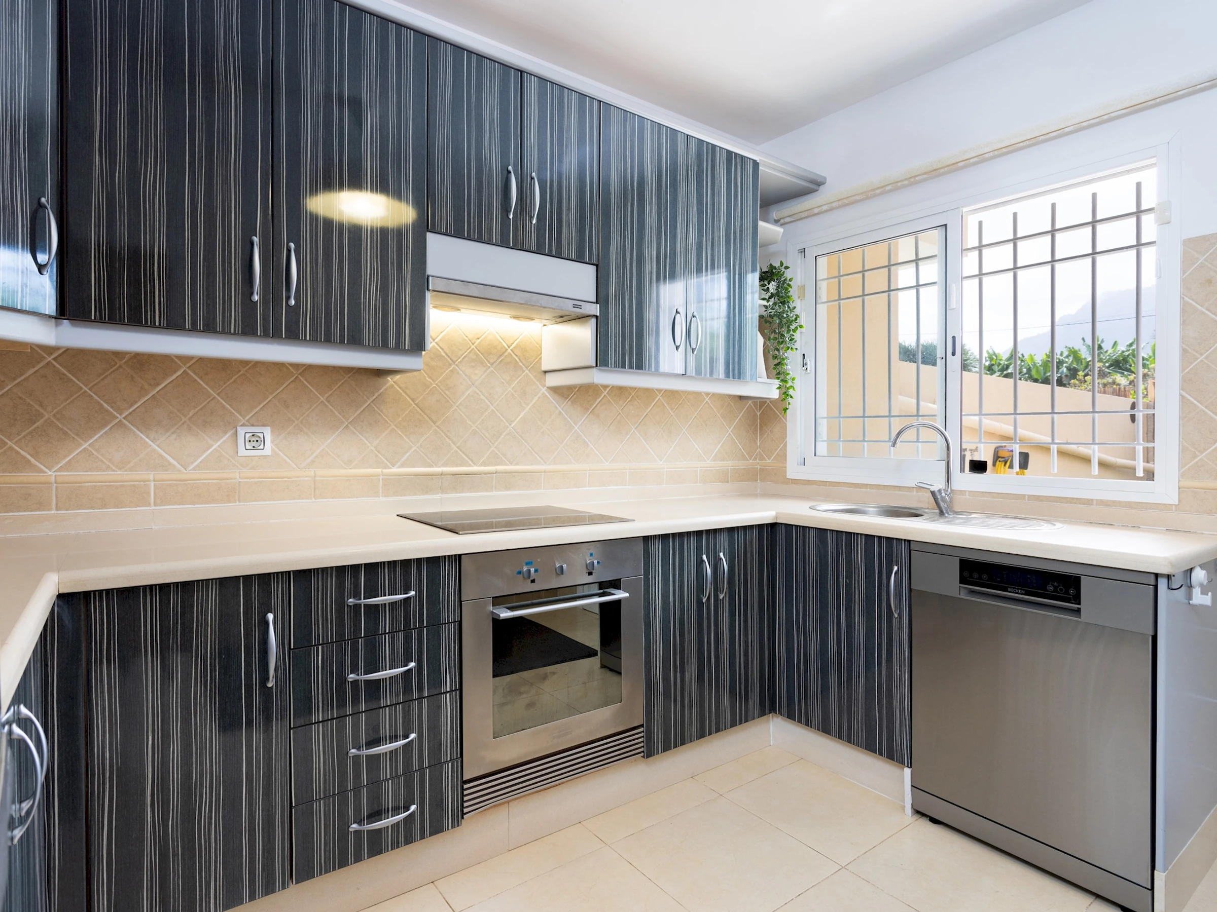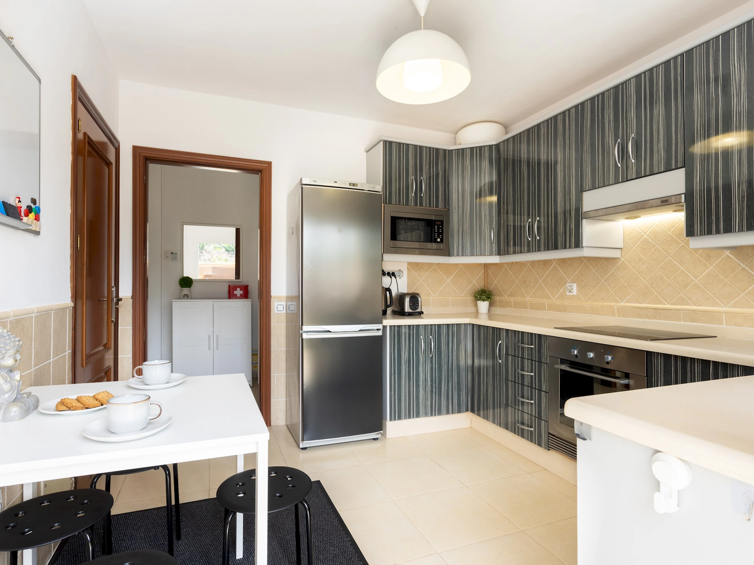 Dieses küche, ist ausgestattet in mikrowelle, backofen, spülmaschine, kochutensilien, kaffeemaschine und toaster.