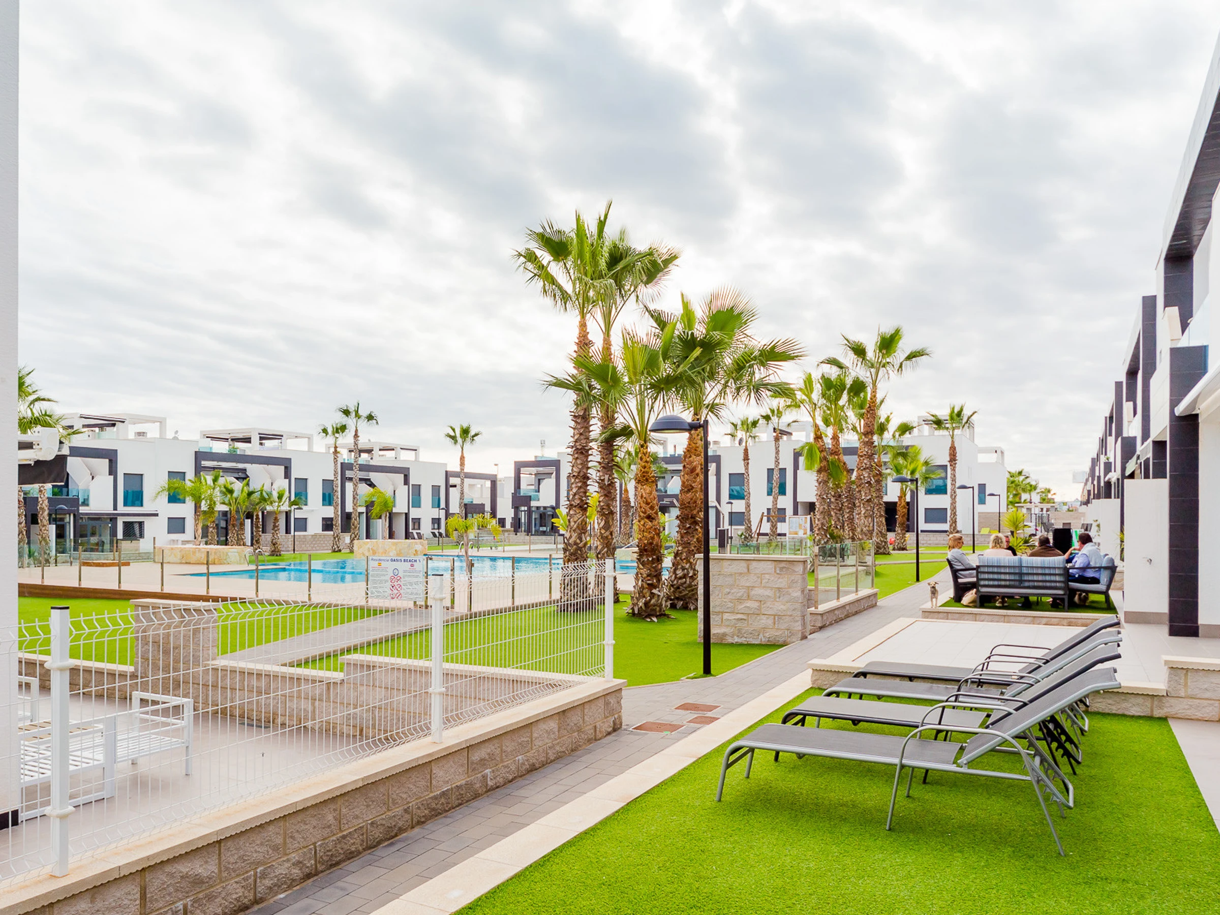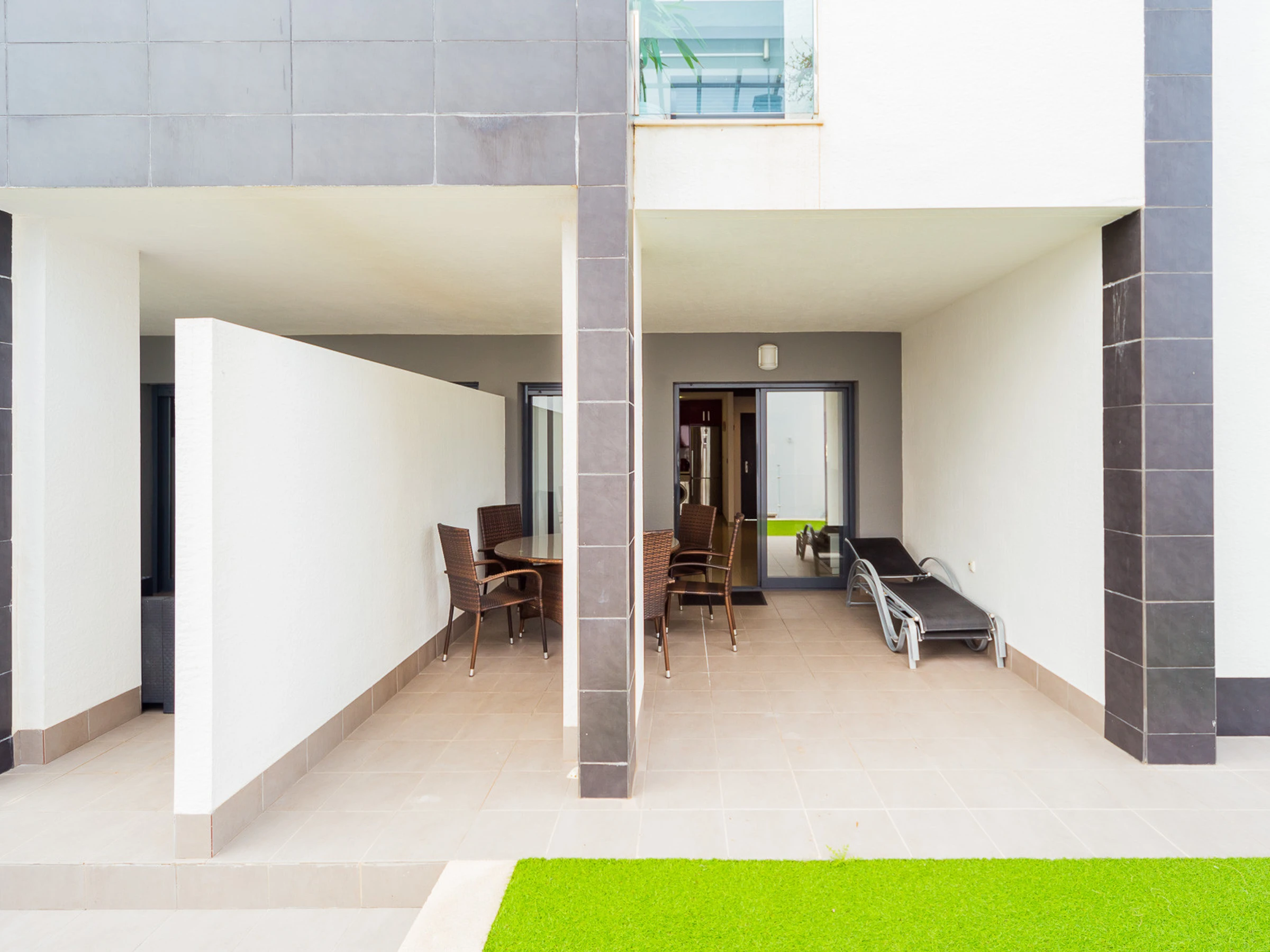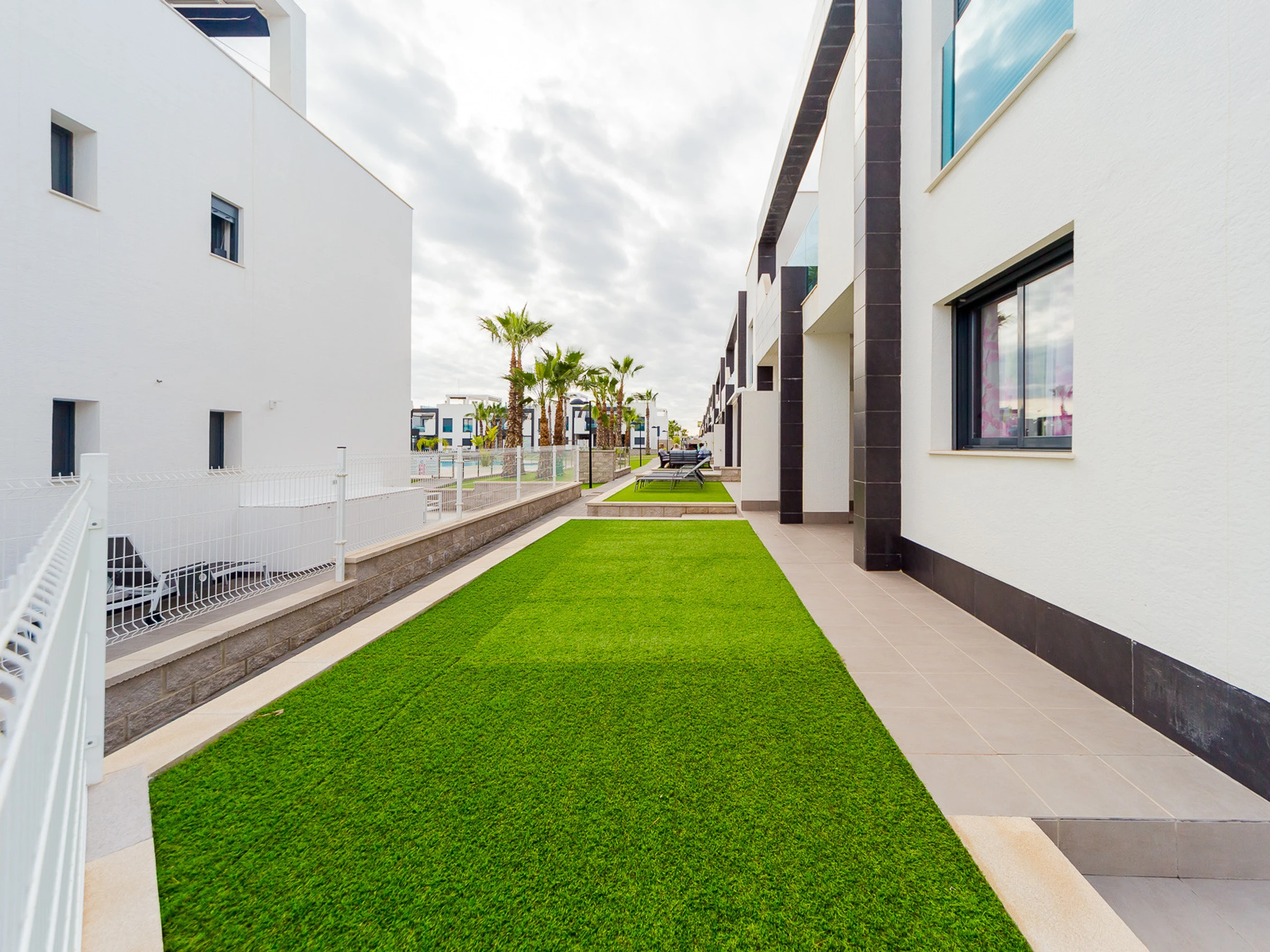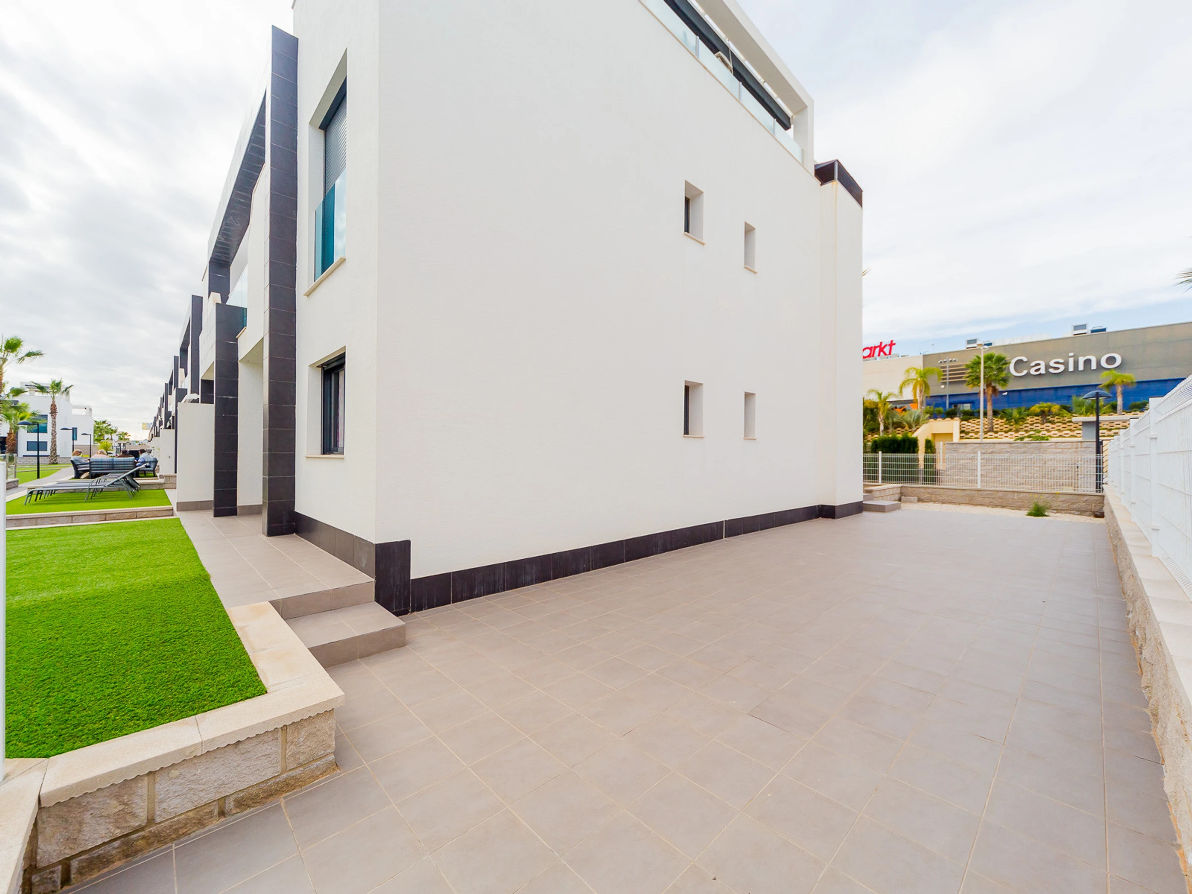 Zu vermieten steht ein modernes Bungalow im Gebiet La Zenia. Der Bungalow befindet sich in einer Anlage mit Schwimmbad und großem Gelände. Die Gesamtfläche beträgt 73 m2. Der Bungalow besteht aus einem Salon, zwei Schlafzimmern, einer amerikanischen Küche, zwei Badezimmern und einer Terrasse. Es gibt einen eigenen großen Hof und einen Parkplatz für das Auto.