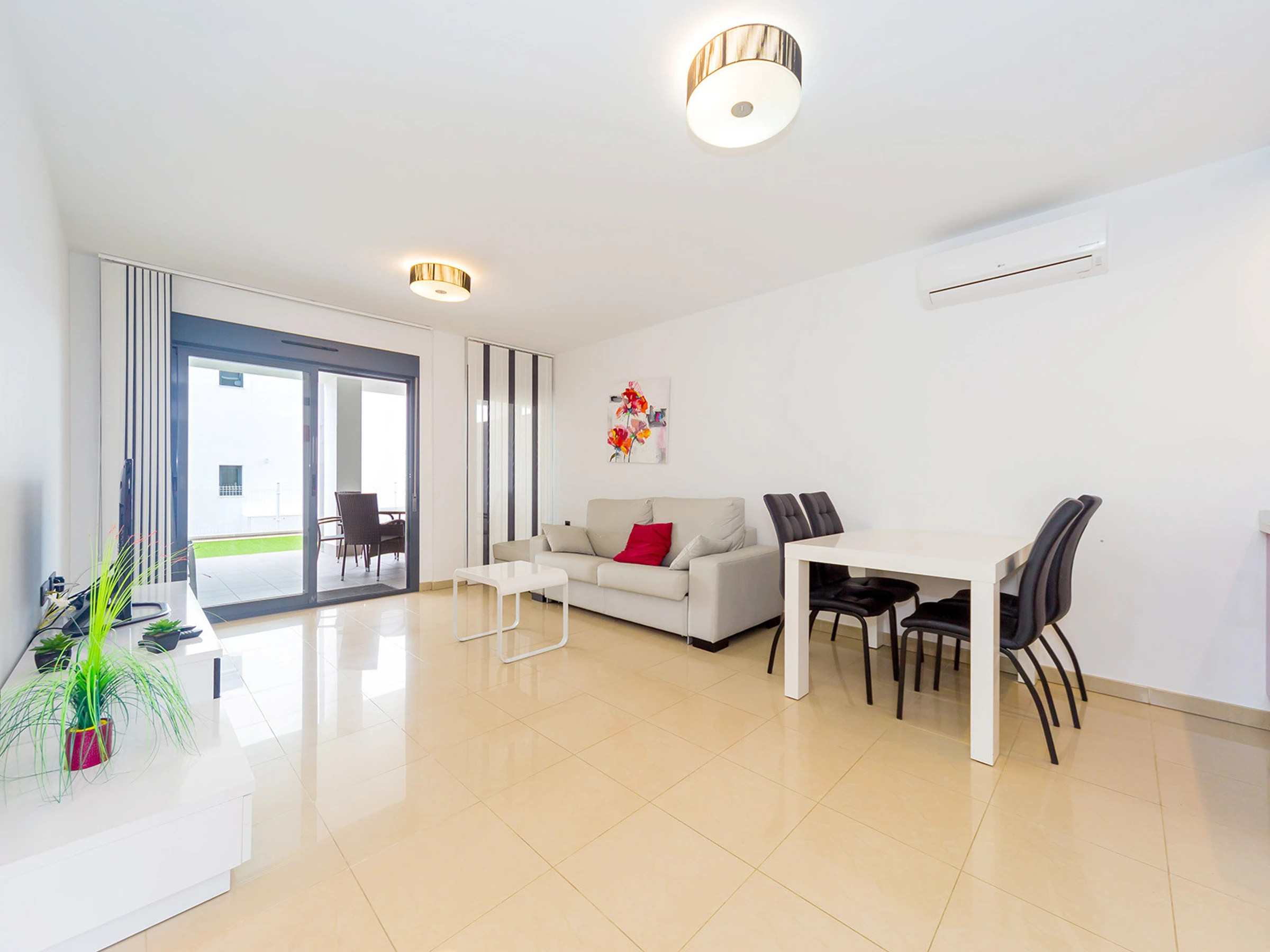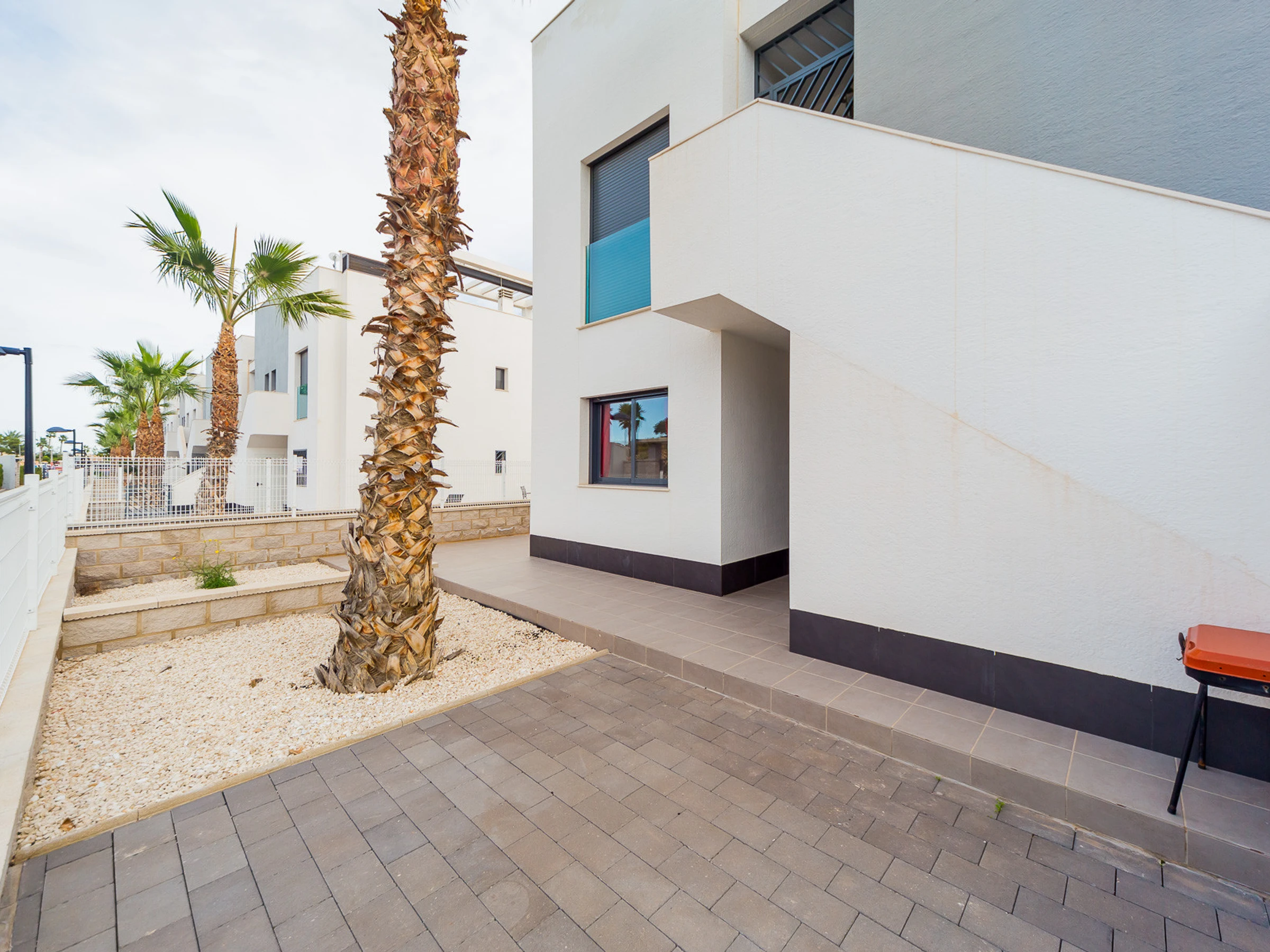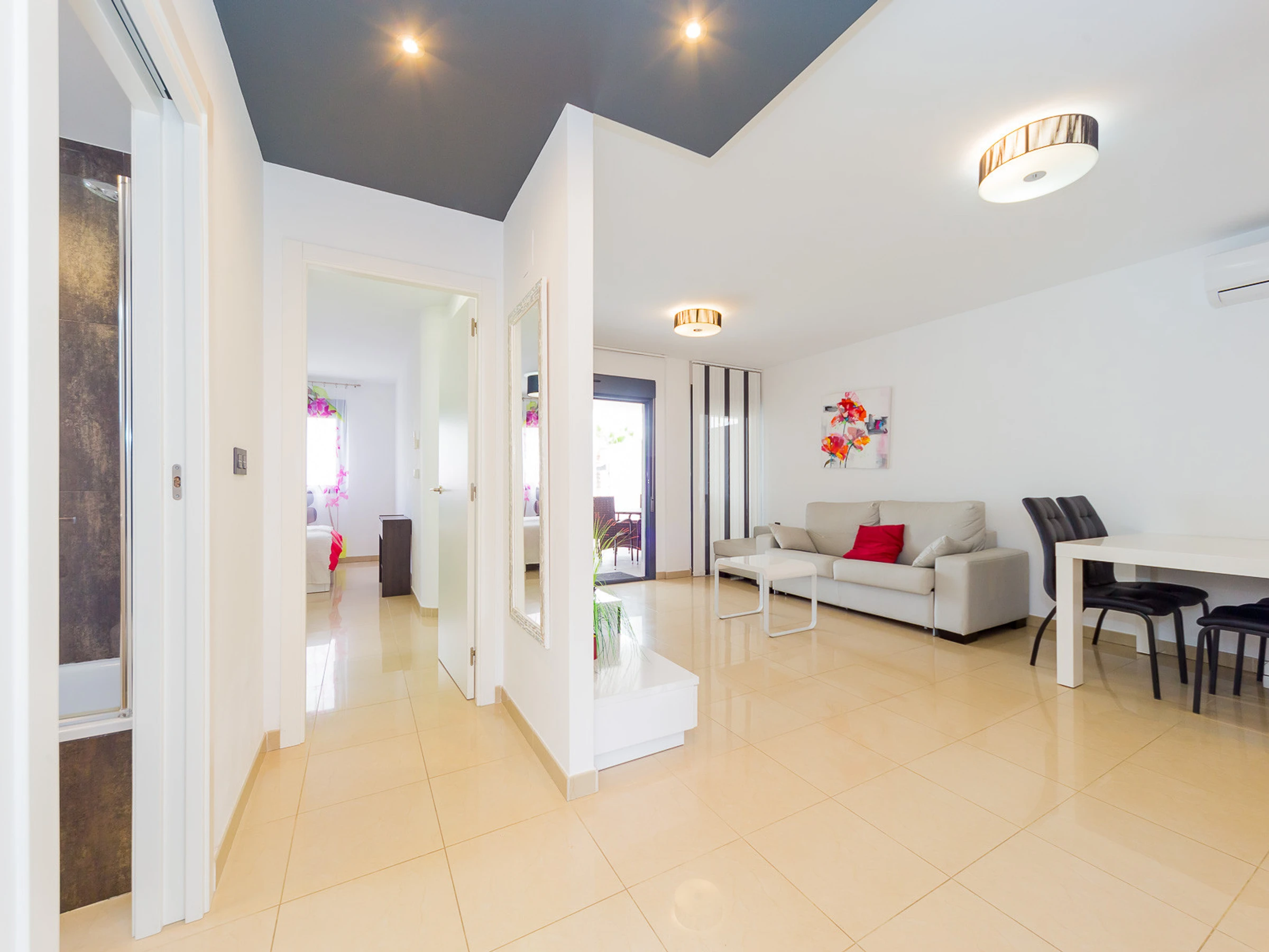 Zu vermieten steht ein modernes Bungalow im Gebiet La Zenia. Der Bungalow befindet sich in einer Anlage mit Schwimmbad und großem Gelände. Die Gesamtfläche beträgt 73 m2. Der Bungalow besteht aus einem Salon, zwei Schlafzimmern, einer amerikanischen Küche, zwei Badezimmern und einer Terrasse. Es gibt einen eigenen großen Hof und einen Parkplatz für das Auto.