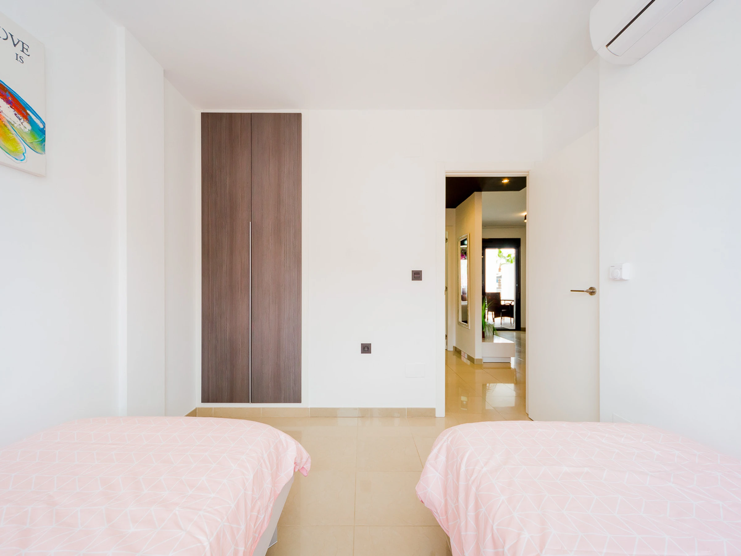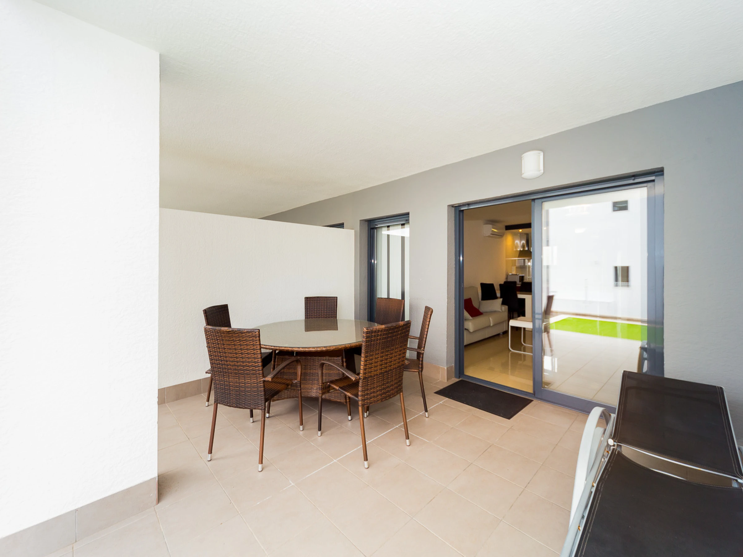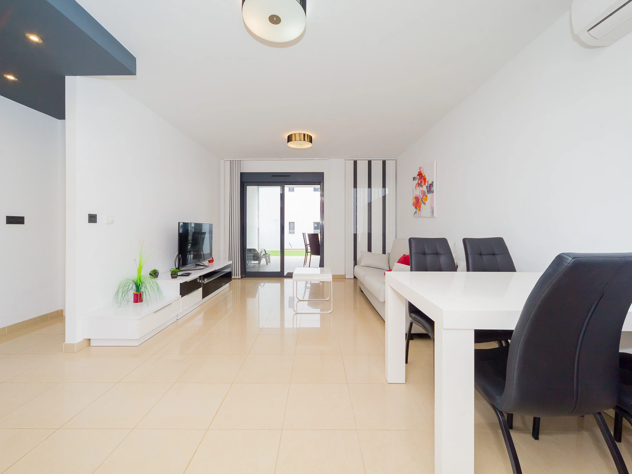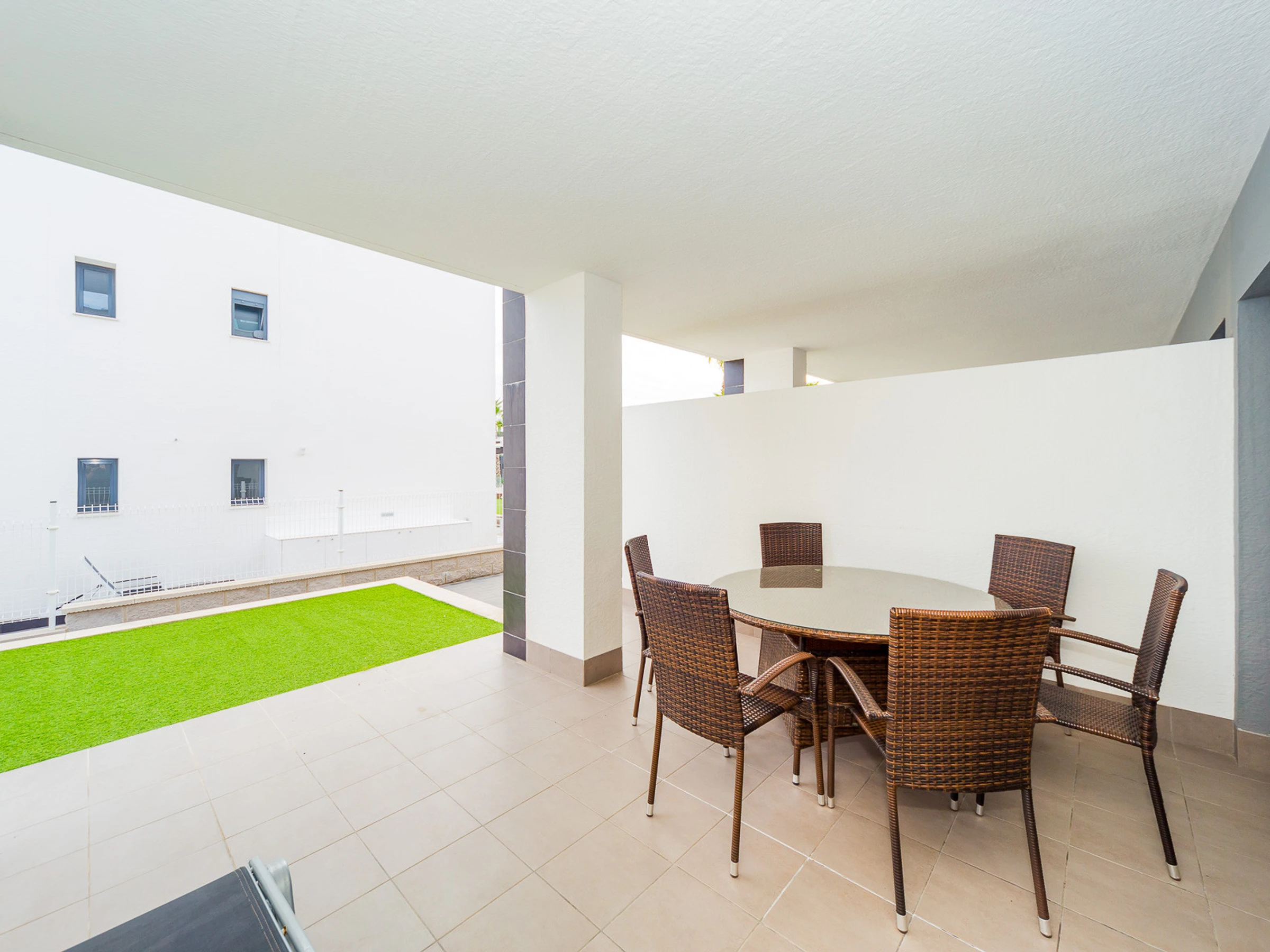 Zu vermieten steht ein modernes Bungalow im Gebiet La Zenia. Der Bungalow befindet sich in einer Anlage mit Schwimmbad und großem Gelände. Die Gesamtfläche beträgt 73 m2. Der Bungalow besteht aus einem Salon, zwei Schlafzimmern, einer amerikanischen Küche, zwei Badezimmern und einer Terrasse. Es gibt einen eigenen großen Hof und einen Parkplatz für das Auto.