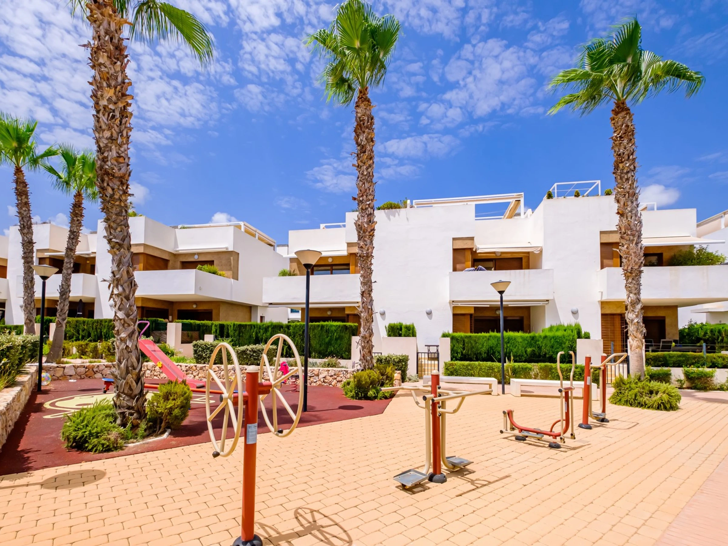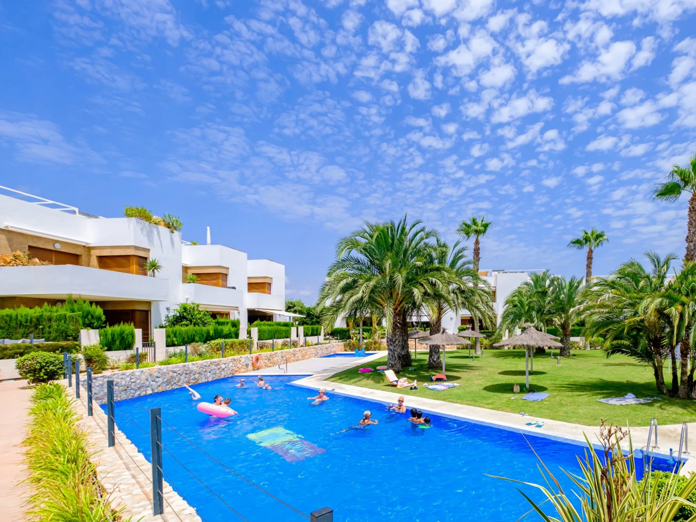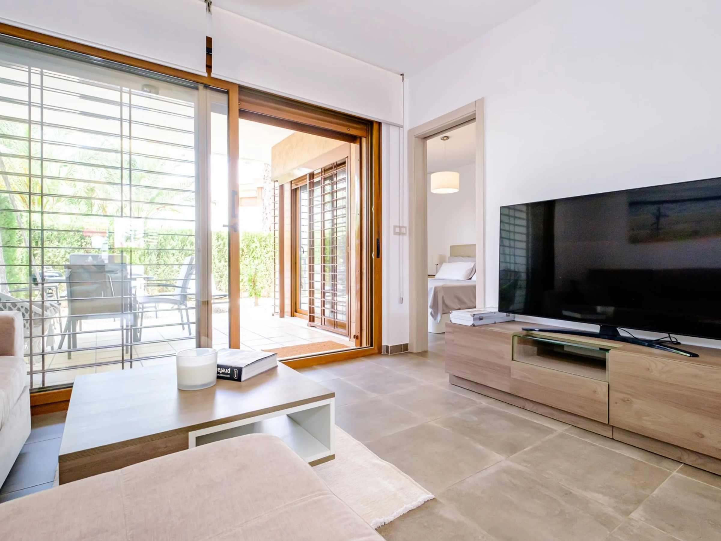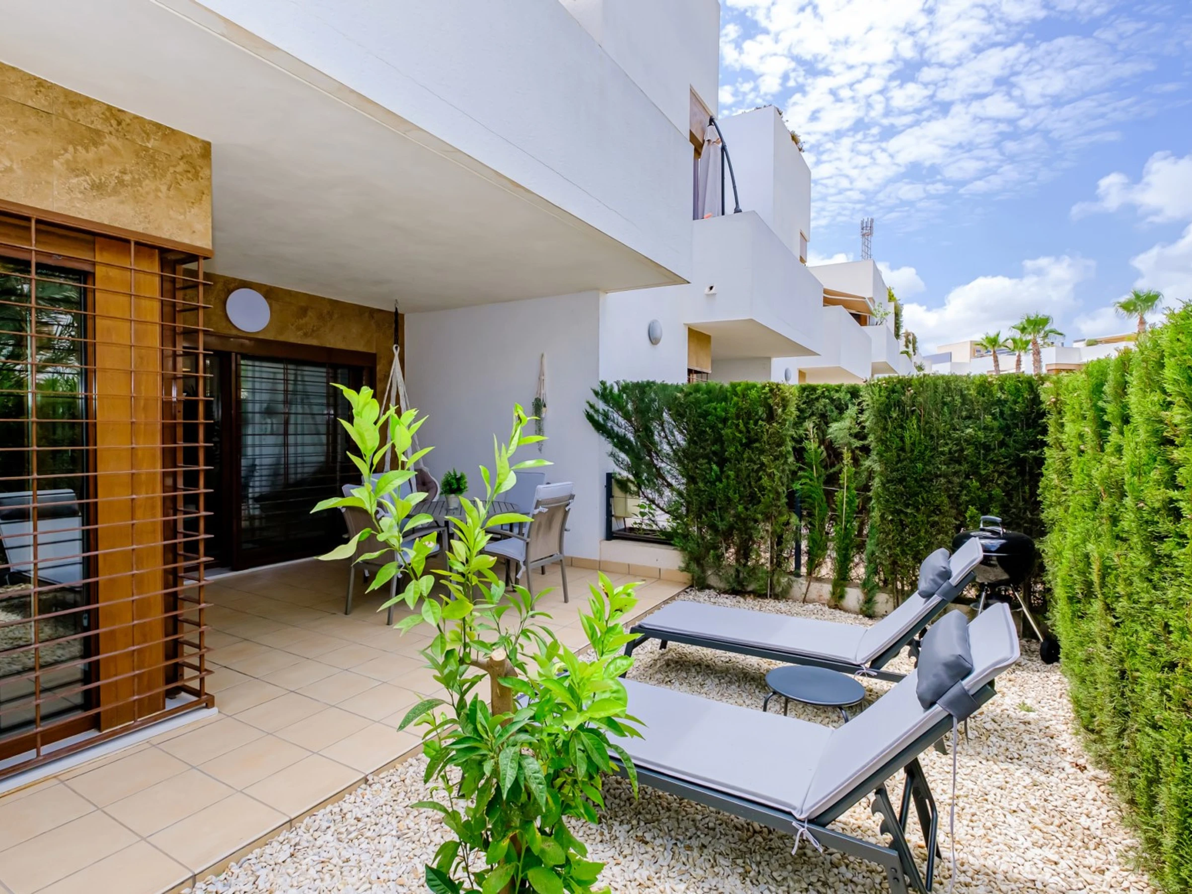 Wir bieten zur touristischen Vermietung einen modernen, gemütlichen Bungalow im Erdgeschoss in einer geschlossenen Anlage mit Grünfläche in der Gegend von La Zenia an! Die Wohnfläche beträgt 83 m2, besteht aus zwei Schlafzimmern, einem Wohnzimmer, einer Küche im amerikanischen Stil, zwei Badezimmern, einem Technikraum, einer Terrasse und einem privaten Innenhof mit Ruhebereich. Es gibt alles, was Sie für einen komfortablen Aufenthalt benötigen: moderne Möbel (einschließlich Gartenmöbel für die Terrasse und Sonnenliegen), elektrische Haushaltsgeräte (mit Geschirrspüler und Kaffeemaschine), Bettwäsche und Handtücher, Geschirr. Zentrale Klimaanlage, Grill, WLAN. Der Komplex verfügt über einen großen Innenbereich mit einem Kinderspielplatz und 3 Swimmingpools, aufgeteilt in einen Erwachsenen- und einen Kinderbereich. Es gibt einen Parkplatz. In fußläufiger Entfernung befindet sich der riesige Einkaufskomplex La Zenia, der Geschäfte aller Art, darunter auch Lebensmittel-Supermärkte, bietet. In fußläufiger Entfernung befinden sich Bars und Restaurants für jeden Geschmack. Das Meer und der Strand sind etwa einen Kilometer entfernt. Unterkunftsmöglichkeit – bis zu sechs Personen (keine Tiere!). Rauchen ist nur auf der Terrasse und im Hof gestattet!