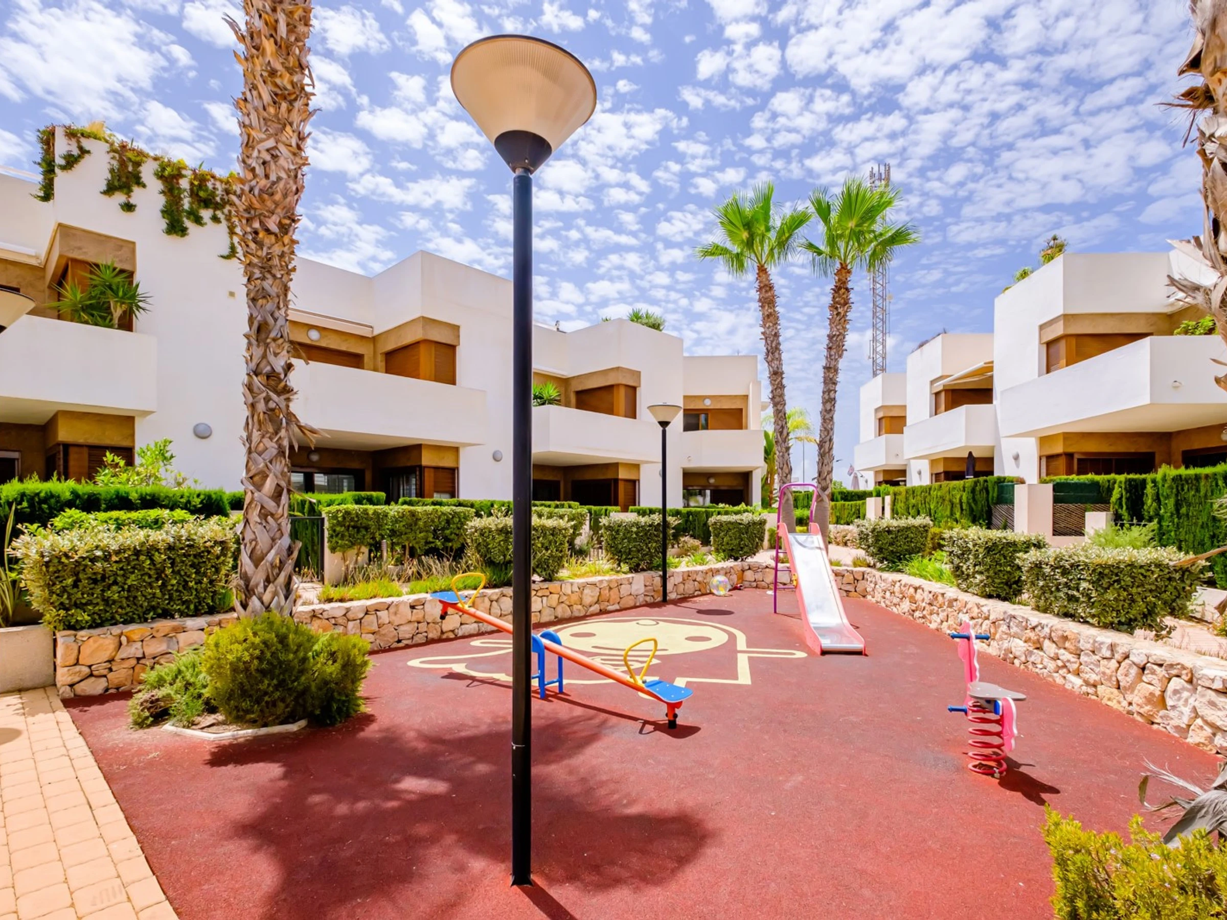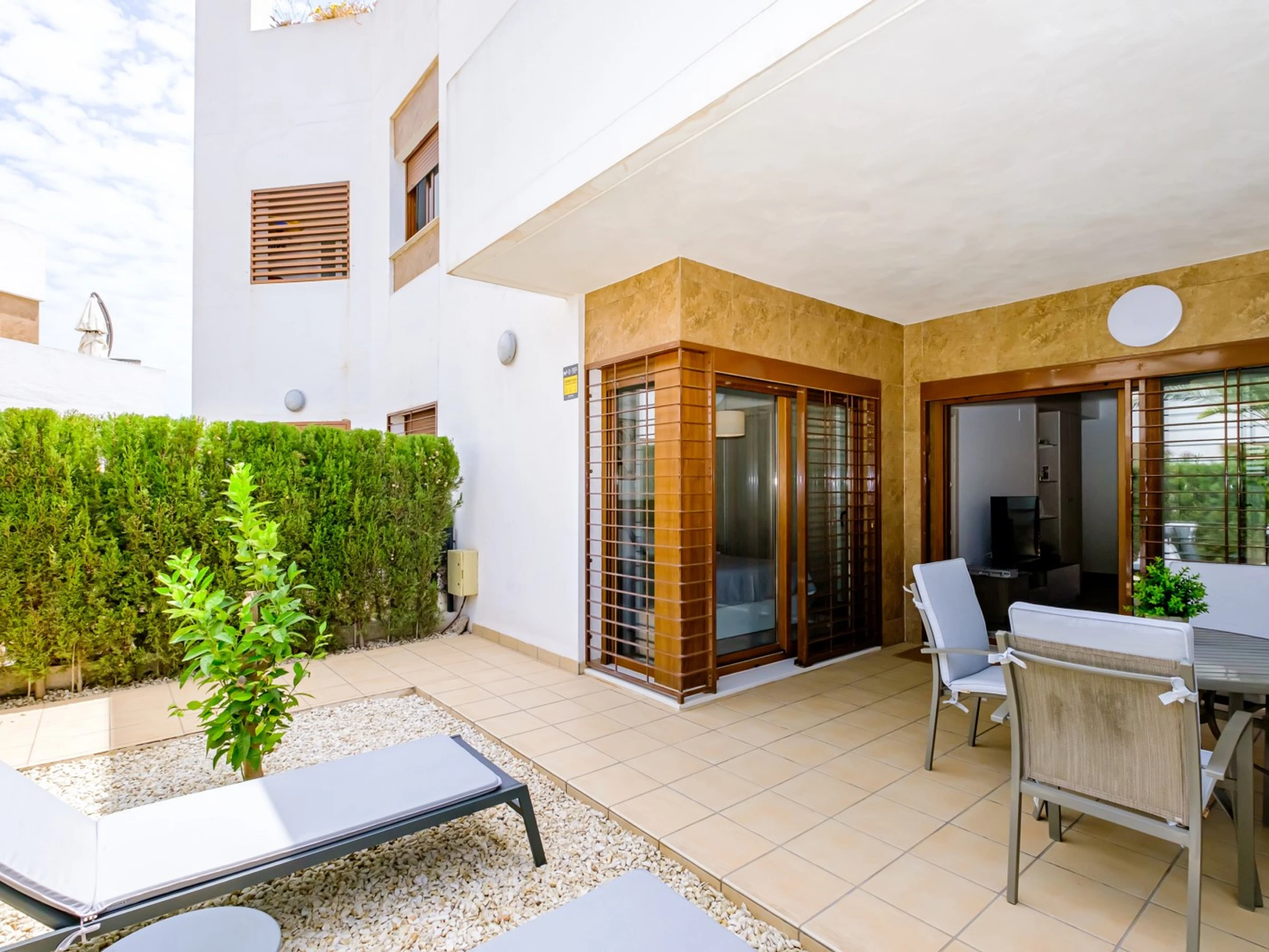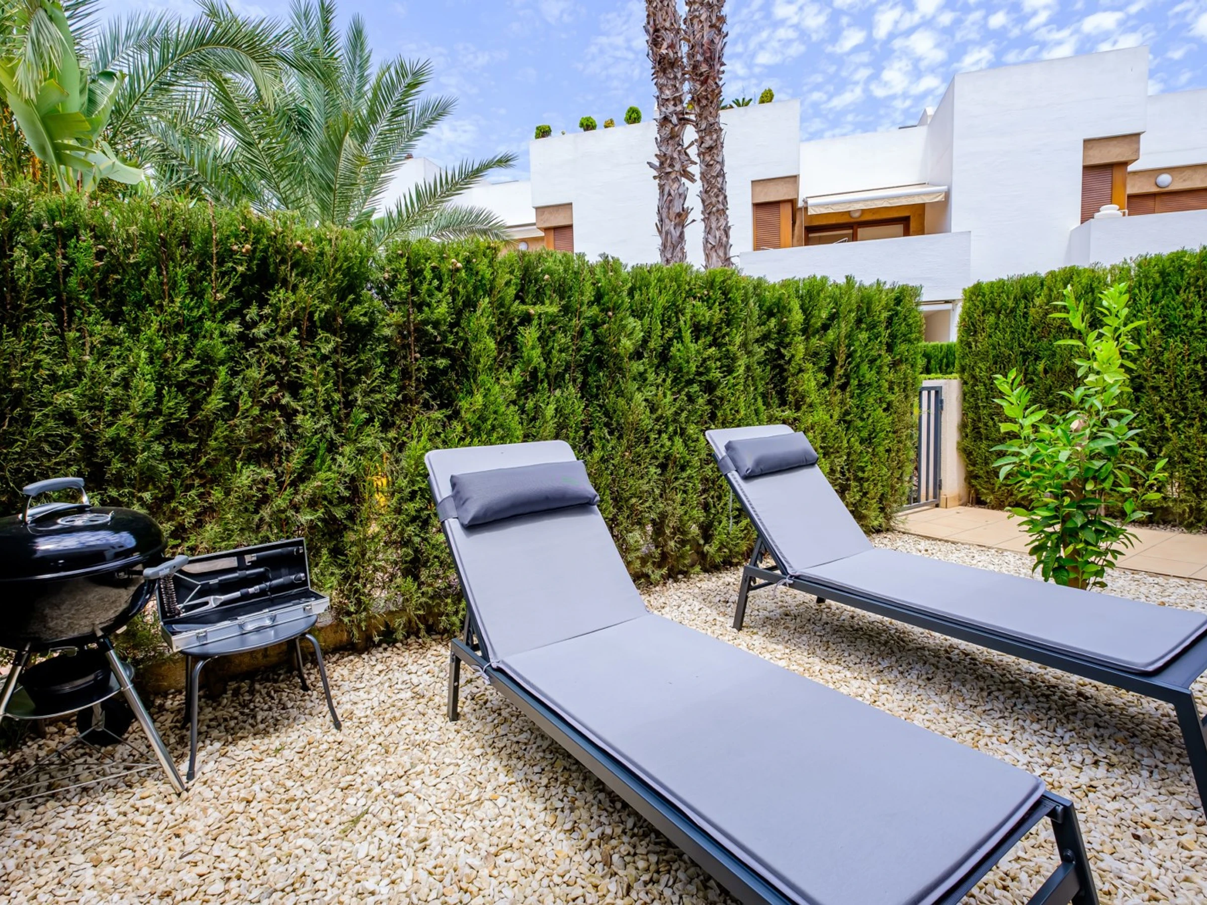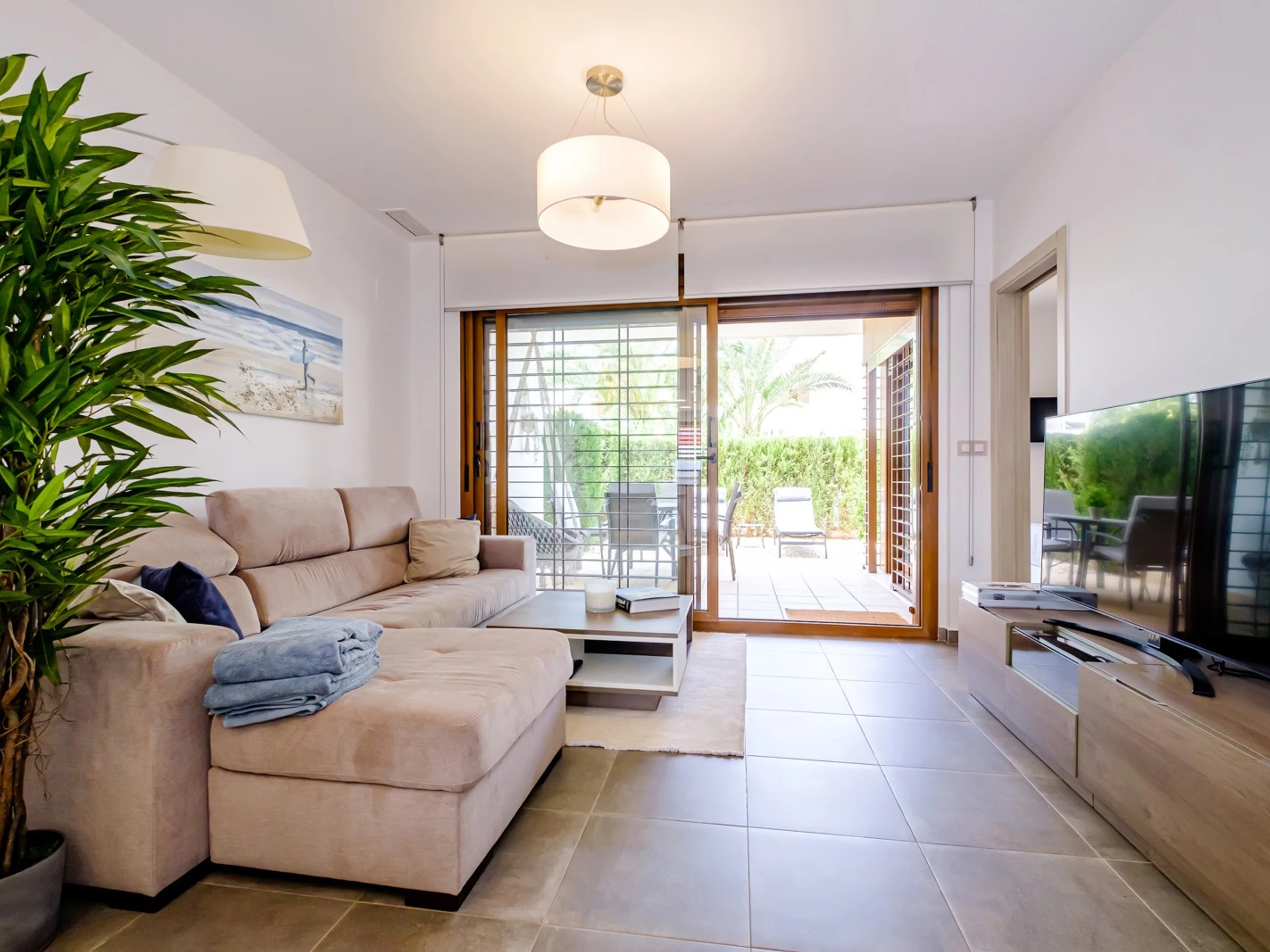 Wir bieten zur touristischen Vermietung einen modernen, gemütlichen Bungalow im Erdgeschoss in einer geschlossenen Anlage mit Grünfläche in der Gegend von La Zenia an! Die Wohnfläche beträgt 83 m2, besteht aus zwei Schlafzimmern, einem Wohnzimmer, einer Küche im amerikanischen Stil, zwei Badezimmern, einem Technikraum, einer Terrasse und einem privaten Innenhof mit Ruhebereich. Es gibt alles, was Sie für einen komfortablen Aufenthalt benötigen: moderne Möbel (einschließlich Gartenmöbel für die Terrasse und Sonnenliegen), elektrische Haushaltsgeräte (mit Geschirrspüler und Kaffeemaschine), Bettwäsche und Handtücher, Geschirr. Zentrale Klimaanlage, Grill, WLAN. Der Komplex verfügt über einen großen Innenbereich mit einem Kinderspielplatz und 3 Swimmingpools, aufgeteilt in einen Erwachsenen- und einen Kinderbereich. Es gibt einen Parkplatz. In fußläufiger Entfernung befindet sich der riesige Einkaufskomplex La Zenia, der Geschäfte aller Art, darunter auch Lebensmittel-Supermärkte, bietet. In fußläufiger Entfernung befinden sich Bars und Restaurants für jeden Geschmack. Das Meer und der Strand sind etwa einen Kilometer entfernt. Unterkunftsmöglichkeit – bis zu sechs Personen (keine Tiere!). Rauchen ist nur auf der Terrasse und im Hof gestattet!