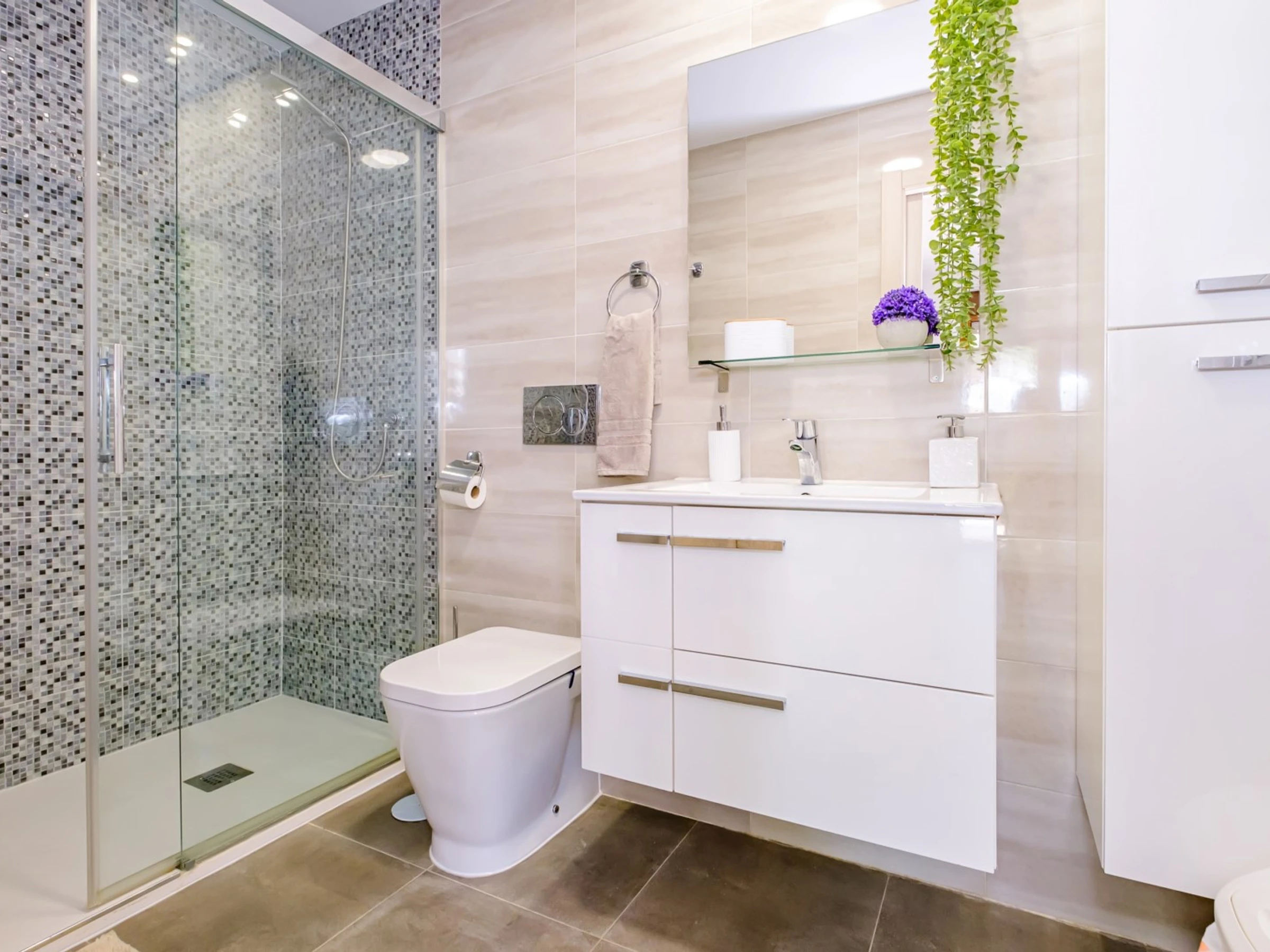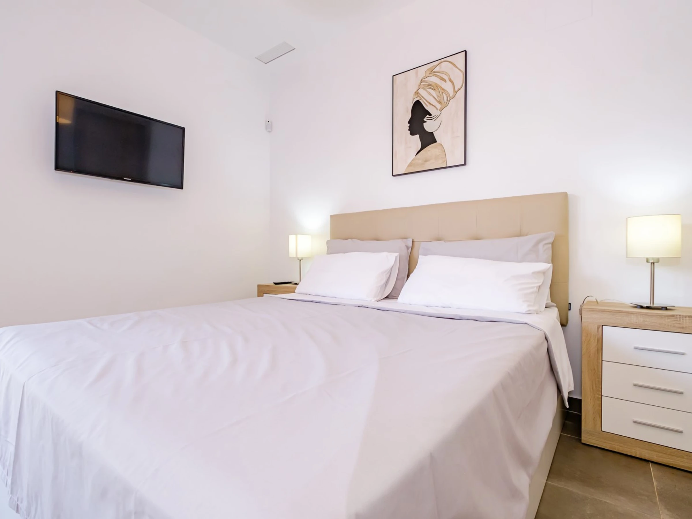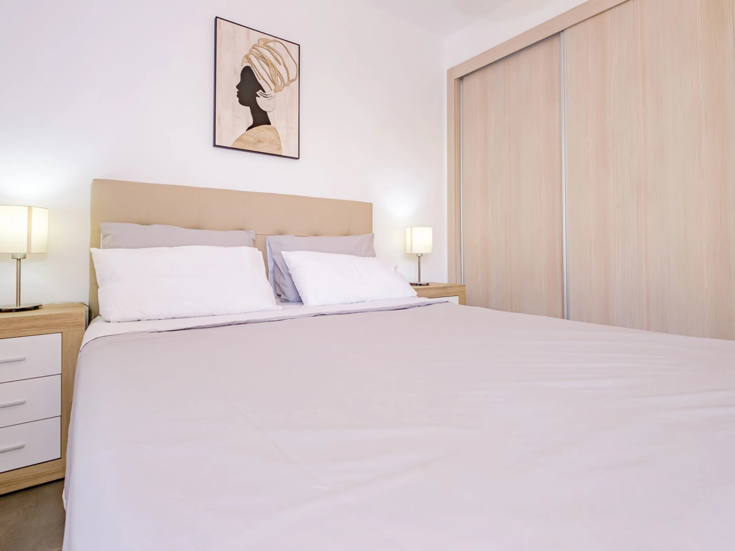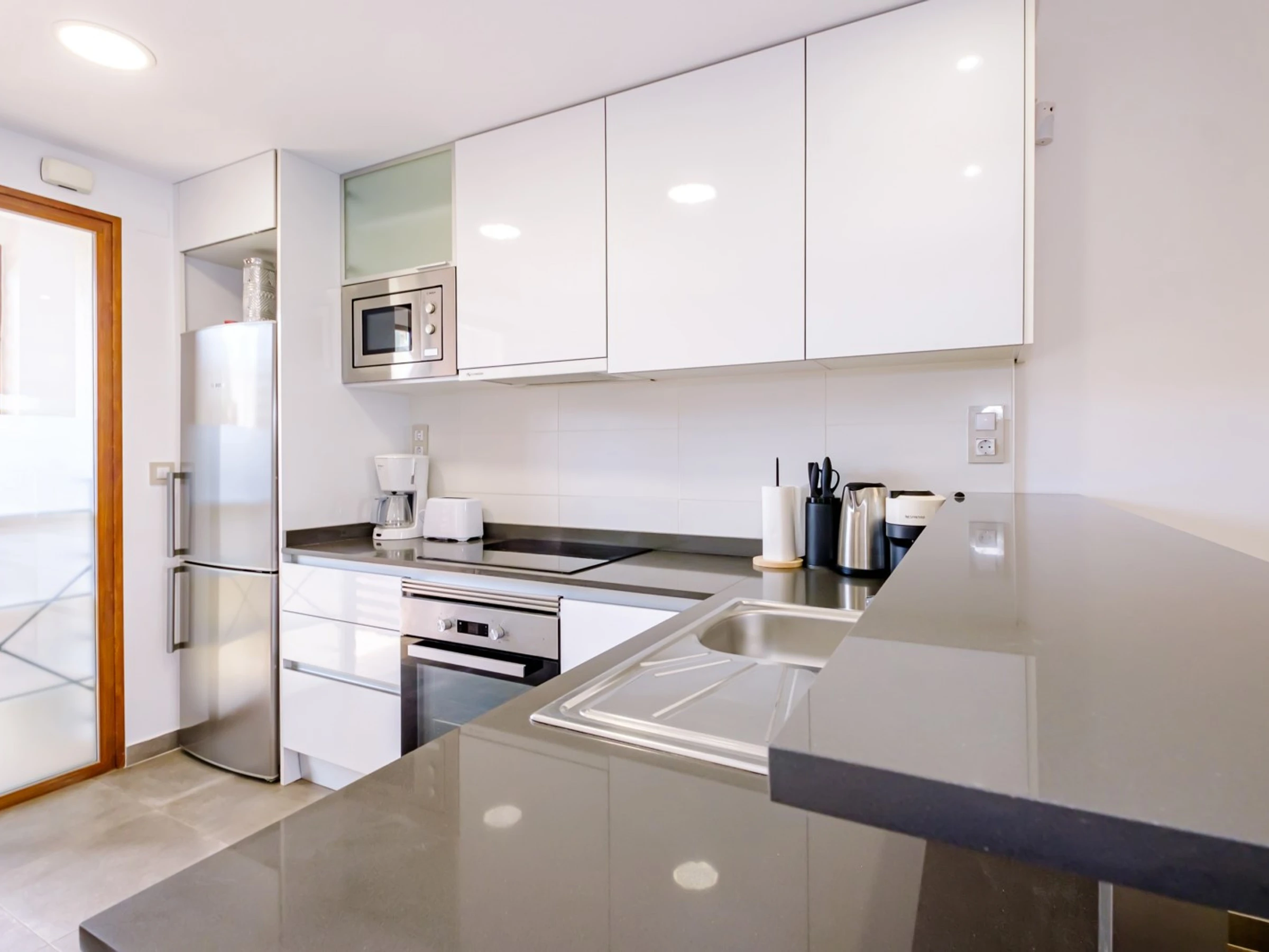Wir bieten zur touristischen Vermietung einen modernen, gemütlichen Bungalow im Erdgeschoss in einer geschlossenen Anlage mit Grünfläche in der Gegend von La Zenia an! Die Wohnfläche beträgt 83 m2, besteht aus zwei Schlafzimmern, einem Wohnzimmer, einer Küche im amerikanischen Stil, zwei Badezimmern, einem Technikraum, einer Terrasse und einem privaten Innenhof mit Ruhebereich. Es gibt alles, was Sie für einen komfortablen Aufenthalt benötigen: moderne Möbel (einschließlich Gartenmöbel für die Terrasse und Sonnenliegen), elektrische Haushaltsgeräte (mit Geschirrspüler und Kaffeemaschine), Bettwäsche und Handtücher, Geschirr. Zentrale Klimaanlage, Grill, WLAN. Der Komplex verfügt über einen großen Innenbereich mit einem Kinderspielplatz und 3 Swimmingpools, aufgeteilt in einen Erwachsenen- und einen Kinderbereich. Es gibt einen Parkplatz. In fußläufiger Entfernung befindet sich der riesige Einkaufskomplex La Zenia, der Geschäfte aller Art, darunter auch Lebensmittel-Supermärkte, bietet. In fußläufiger Entfernung befinden sich Bars und Restaurants für jeden Geschmack. Das Meer und der Strand sind etwa einen Kilometer entfernt. Unterkunftsmöglichkeit – bis zu sechs Personen (keine Tiere!). Rauchen ist nur auf der Terrasse und im Hof gestattet!