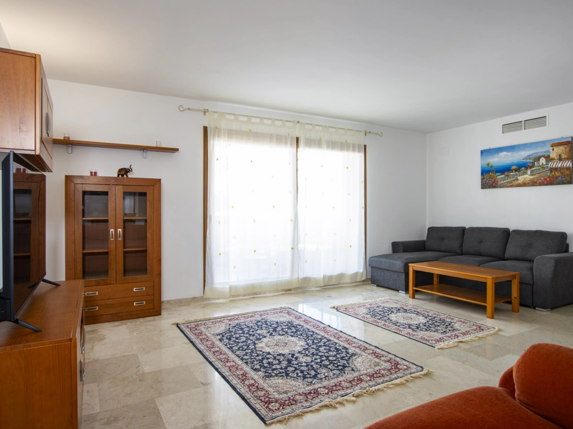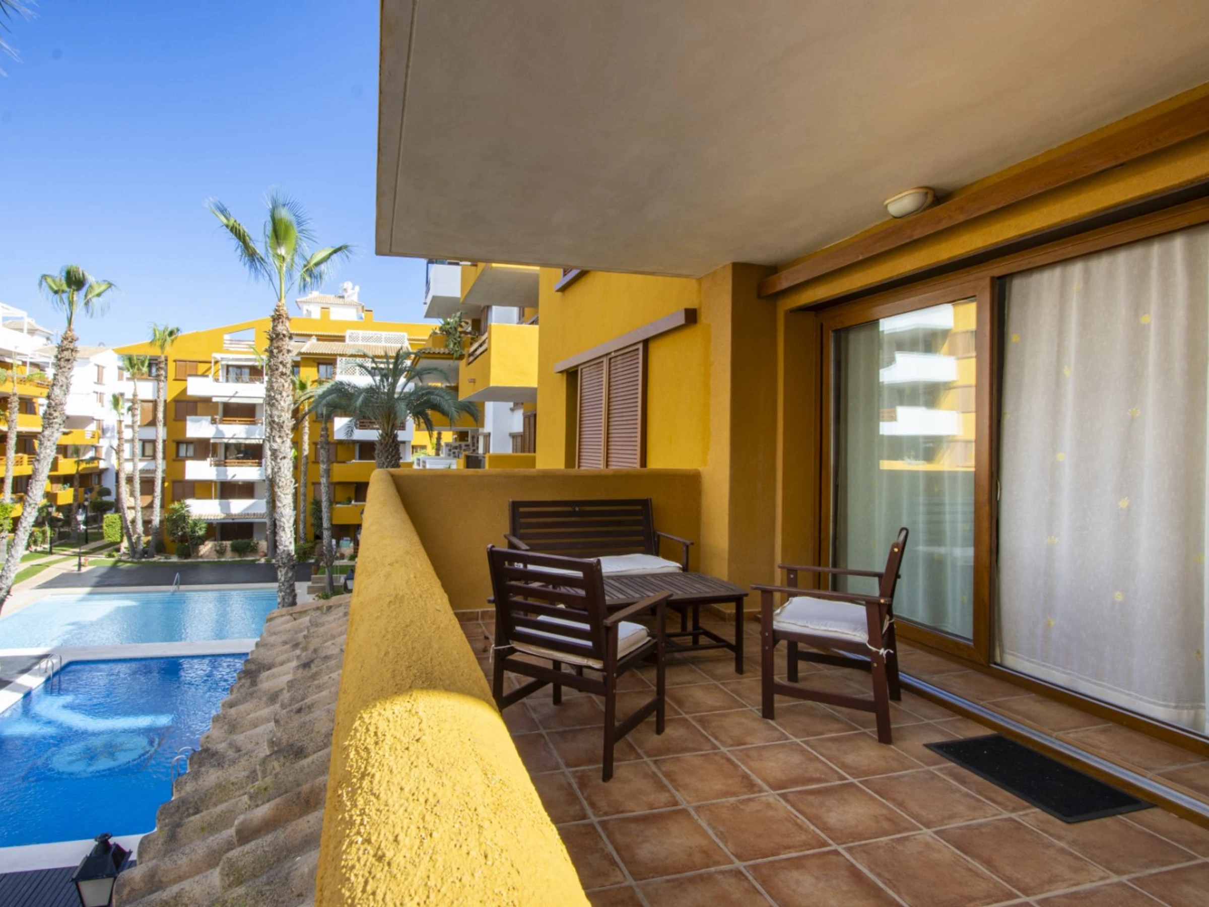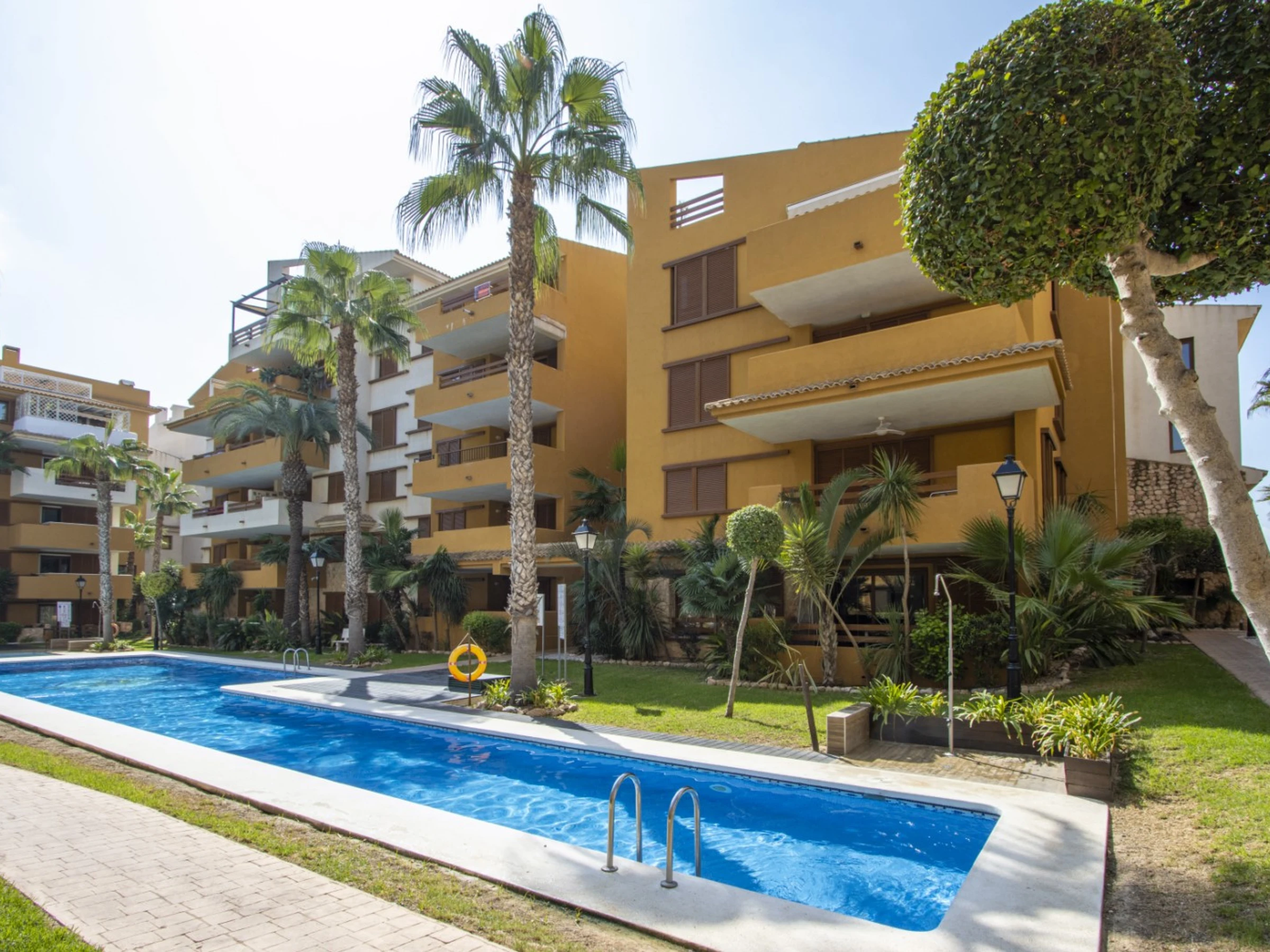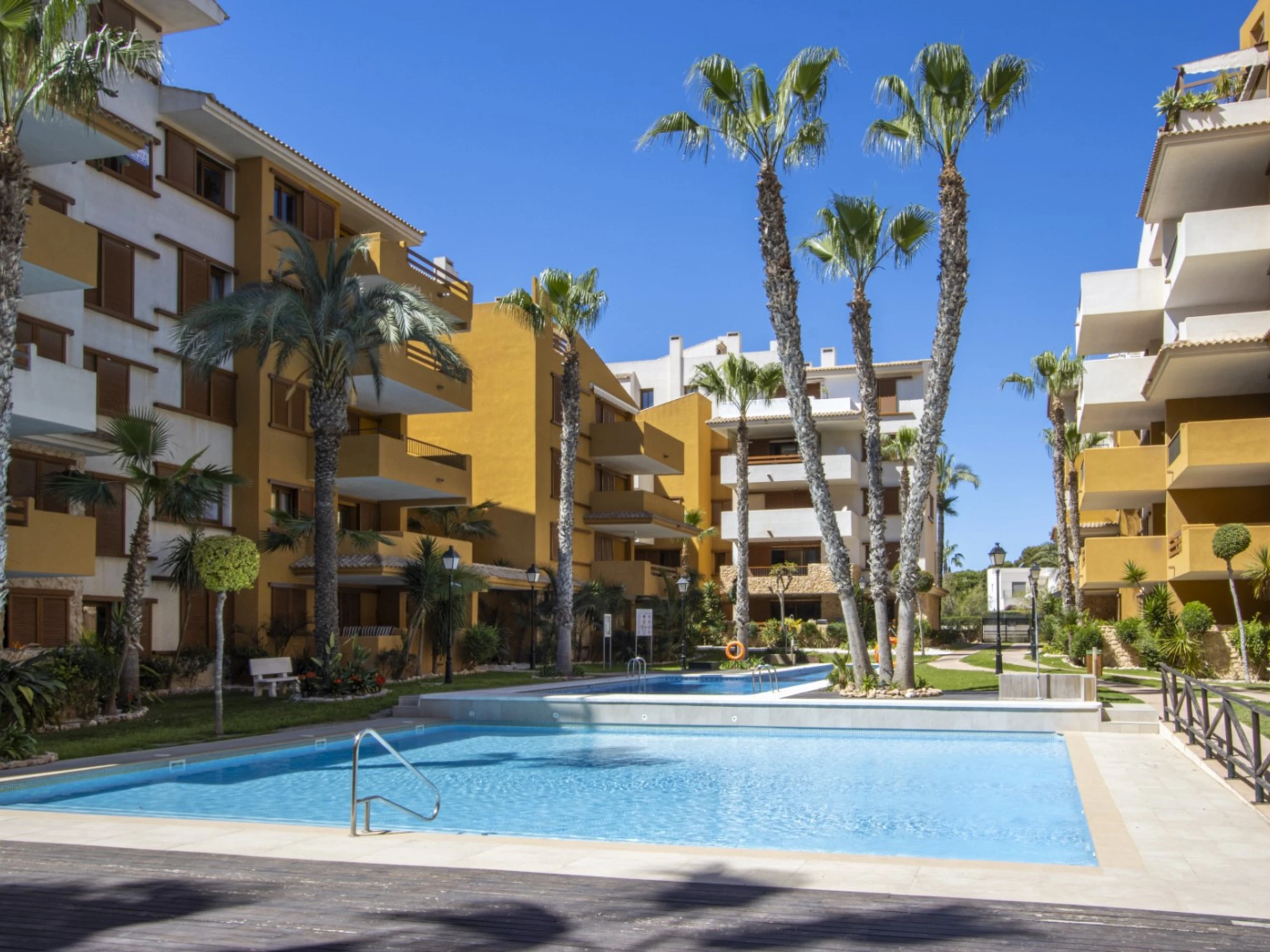 Wir bieten zur touristischen Miete ein Apartment mit zwei Schlafzimmern im beliebten Komplex „La Recoleta“ in Punta Prima an. Die Wohnung hat eine Fläche von 95 m2 und besteht aus einem Wohnzimmer, zwei Schlafzimmern, einer Küche im amerikanischen Stil, zwei Badezimmern (mit Badewanne und Dusche) und einer Terrasse. Es ist alles vorhanden, was zum komfortablen Wohnen und Entspannen notwendig ist: Möbel, Haushaltsgeräte (einschließlich Geschirrspüler und Kaffeemaschine), Geschirr, Bettwäsche und Handtücher. Auf der Terrasse befinden sich Sommermöbel. Zentrale Klimaanlage. Spanisches Fernsehen, WLAN. Das Gelände verfügt über mehrere Schwimmbäder und eine große Grünfläche mit Spazierwegen. Die Gegend verfügt über eine gut ausgebaute Infrastruktur. Das nächste Restaurant ist 150 Meter entfernt. Im Umkreis von 900 Metern befinden sich zwei Supermärkte. Das Meer und der Strand sind etwa 400 Meter entfernt. Beherbergungsmöglichkeit: bis zu 4 Personen (keine Haustiere!). Rauchen ist nur auf der Terrasse gestattet! Bei Verstoß – 200 Euro Bußgeld!