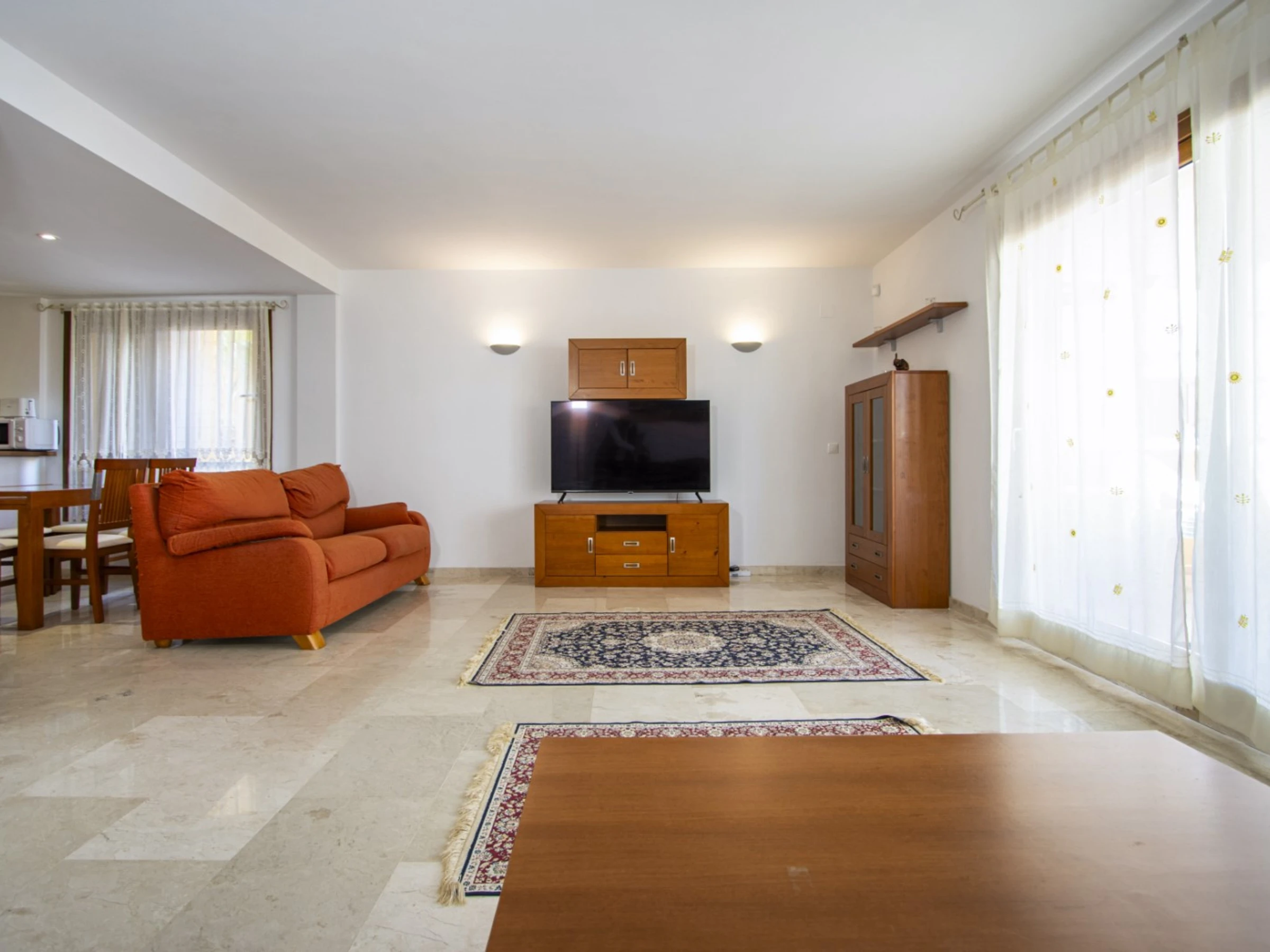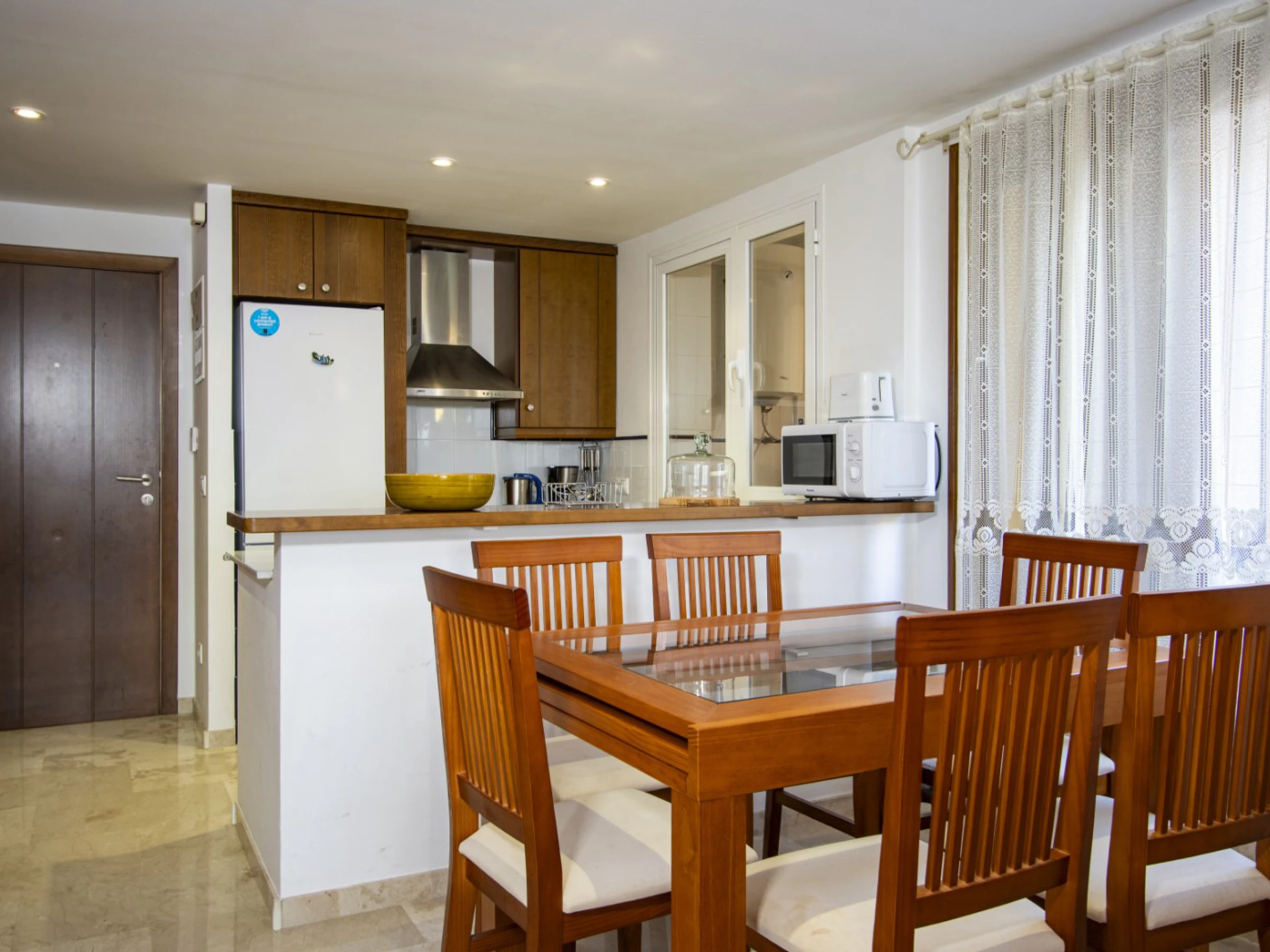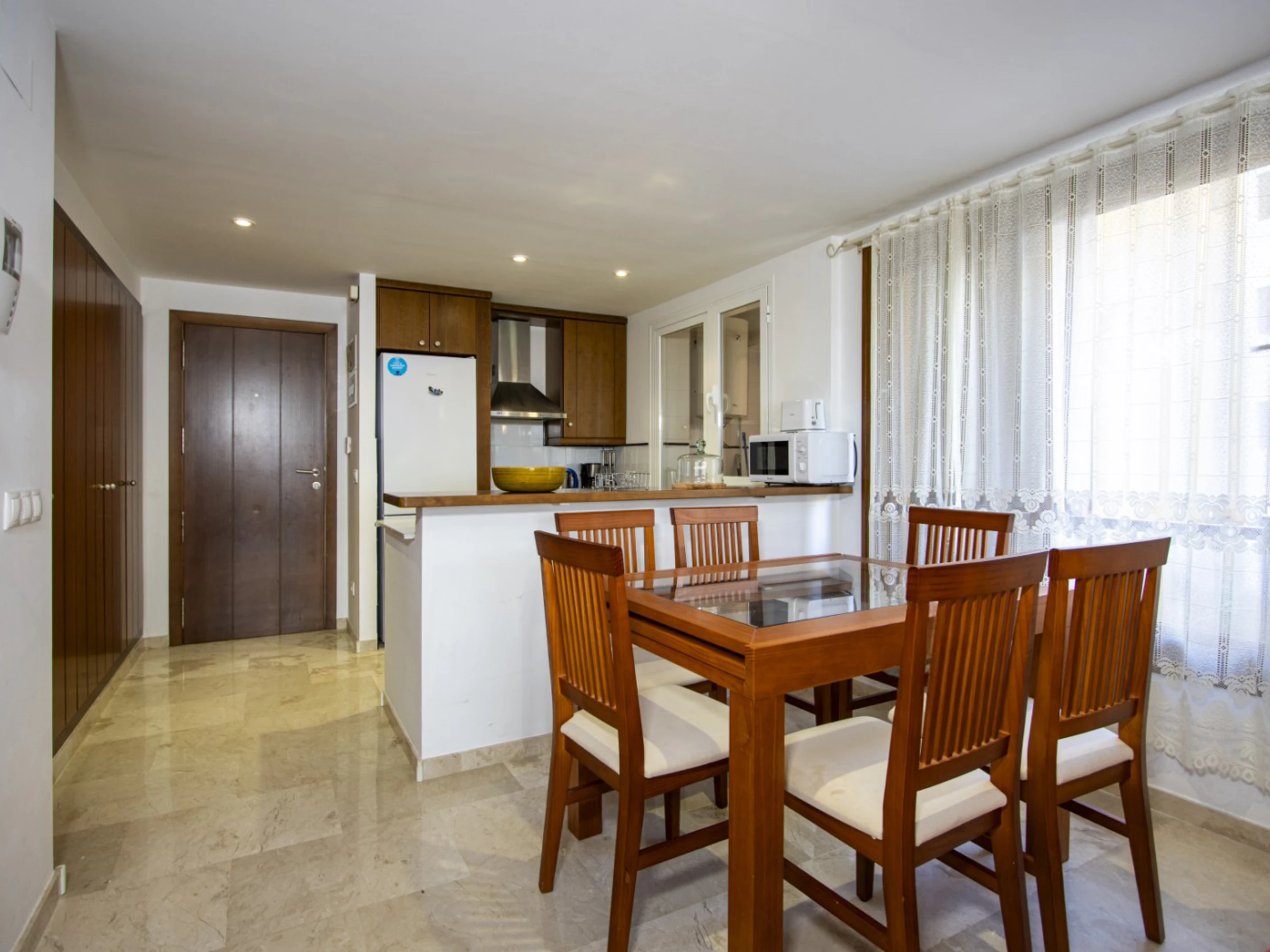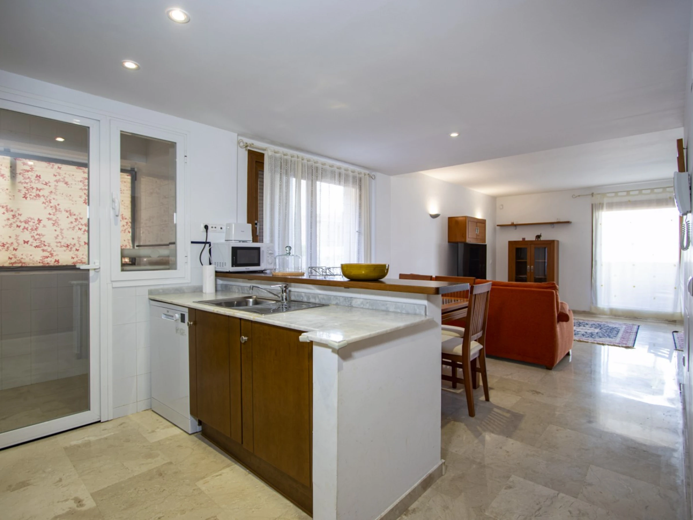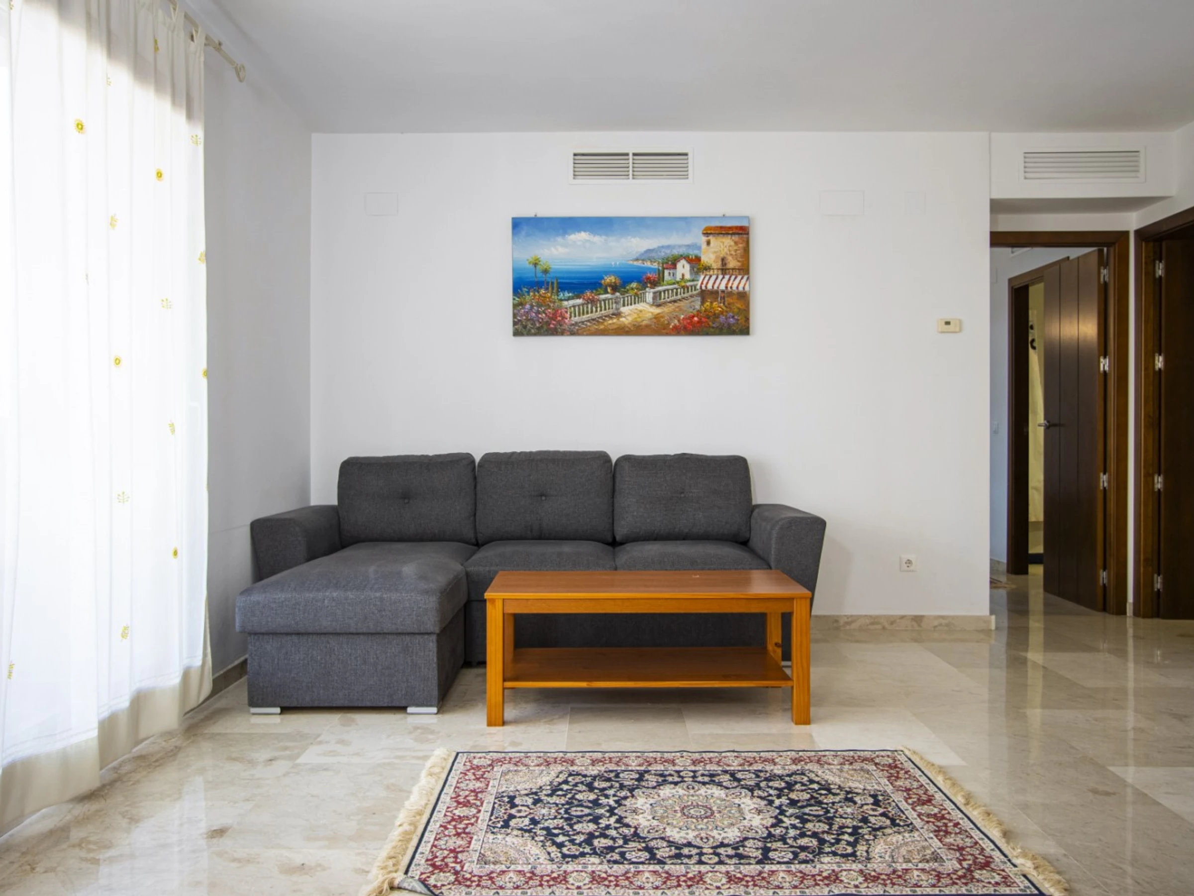 Wir bieten zur touristischen Miete ein Apartment mit zwei Schlafzimmern im beliebten Komplex „La Recoleta“ in Punta Prima an. Die Wohnung hat eine Fläche von 95 m2 und besteht aus einem Wohnzimmer, zwei Schlafzimmern, einer Küche im amerikanischen Stil, zwei Badezimmern (mit Badewanne und Dusche) und einer Terrasse. Es ist alles vorhanden, was zum komfortablen Wohnen und Entspannen notwendig ist: Möbel, Haushaltsgeräte (einschließlich Geschirrspüler und Kaffeemaschine), Geschirr, Bettwäsche und Handtücher. Auf der Terrasse befinden sich Sommermöbel. Zentrale Klimaanlage. Spanisches Fernsehen, WLAN. Das Gelände verfügt über mehrere Schwimmbäder und eine große Grünfläche mit Spazierwegen. Die Gegend verfügt über eine gut ausgebaute Infrastruktur. Das nächste Restaurant ist 150 Meter entfernt. Im Umkreis von 900 Metern befinden sich zwei Supermärkte. Das Meer und der Strand sind etwa 400 Meter entfernt. Beherbergungsmöglichkeit: bis zu 4 Personen (keine Haustiere!). Rauchen ist nur auf der Terrasse gestattet! Bei Verstoß – 200 Euro Bußgeld!