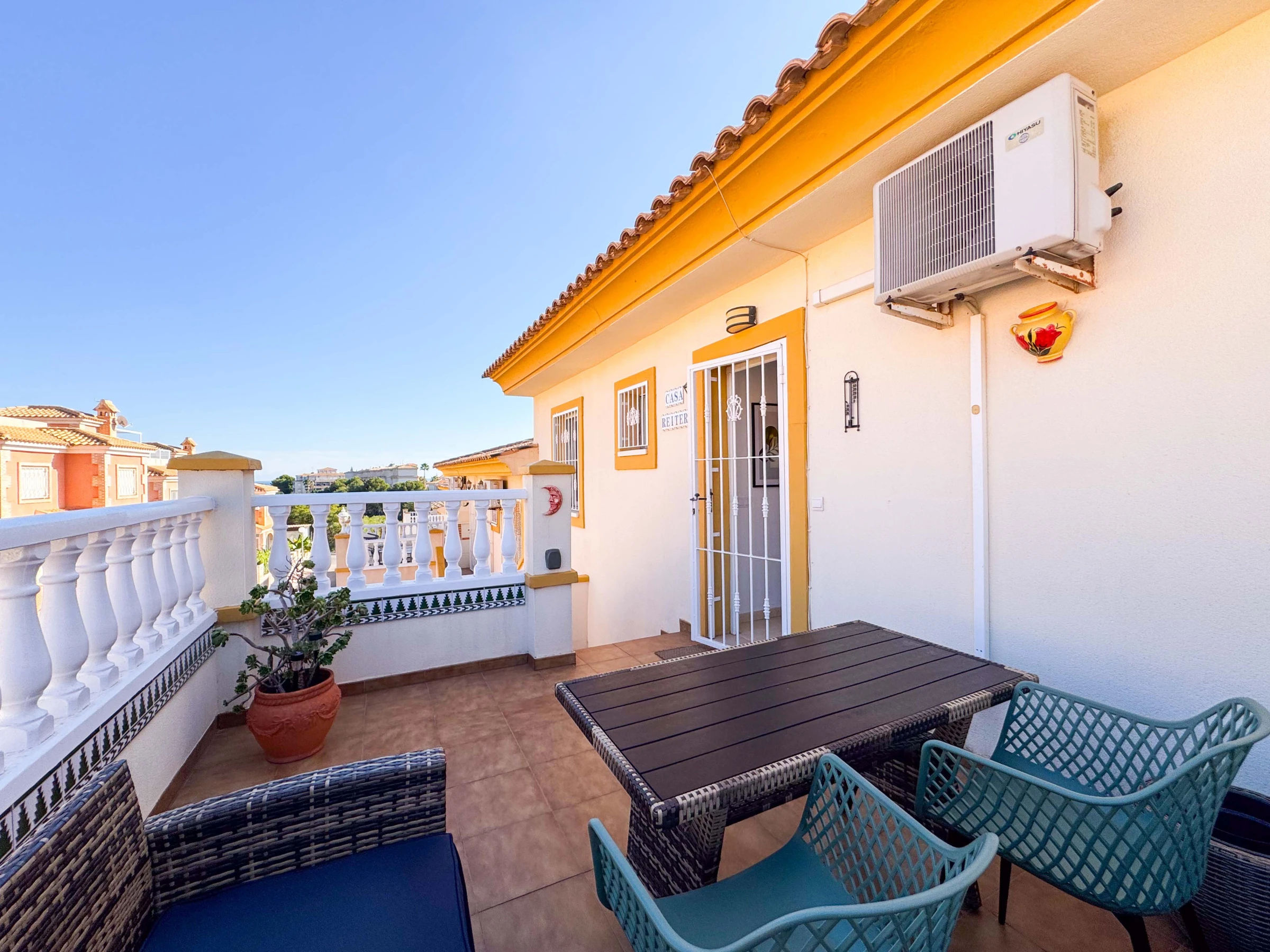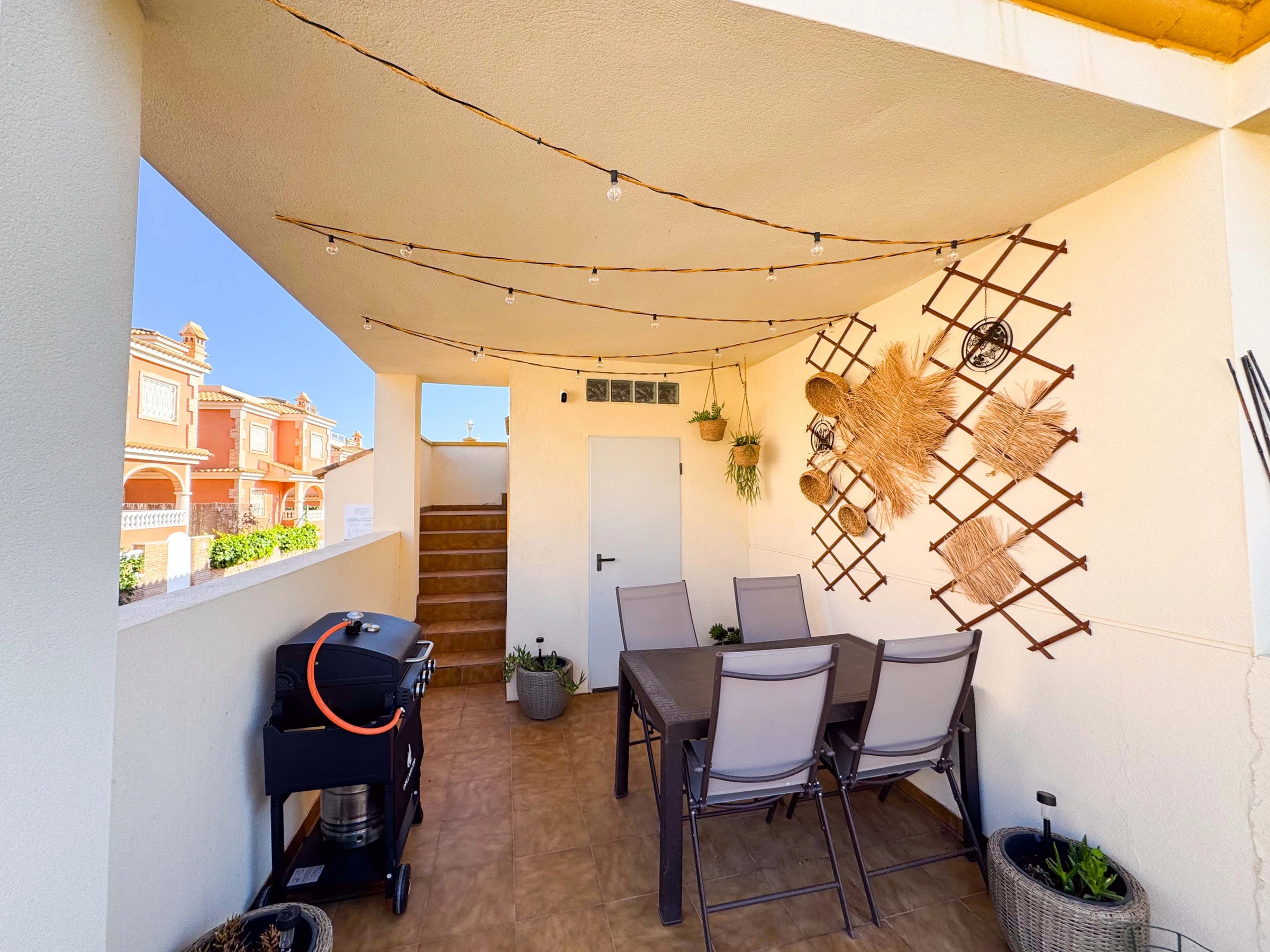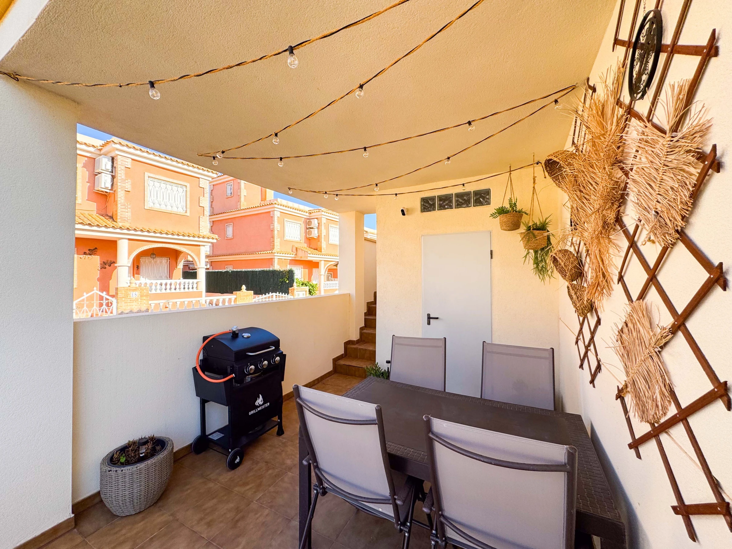 Auf der Terrasse gibt es einen Tisch mit Sofa und Stühlen, im Hof gibt es einen Grill, auf dem man kochen, essen und die Außenluft genießen kann. Es gibt auch Sonnenliegen, auf denen man sich privat sonnen kann.