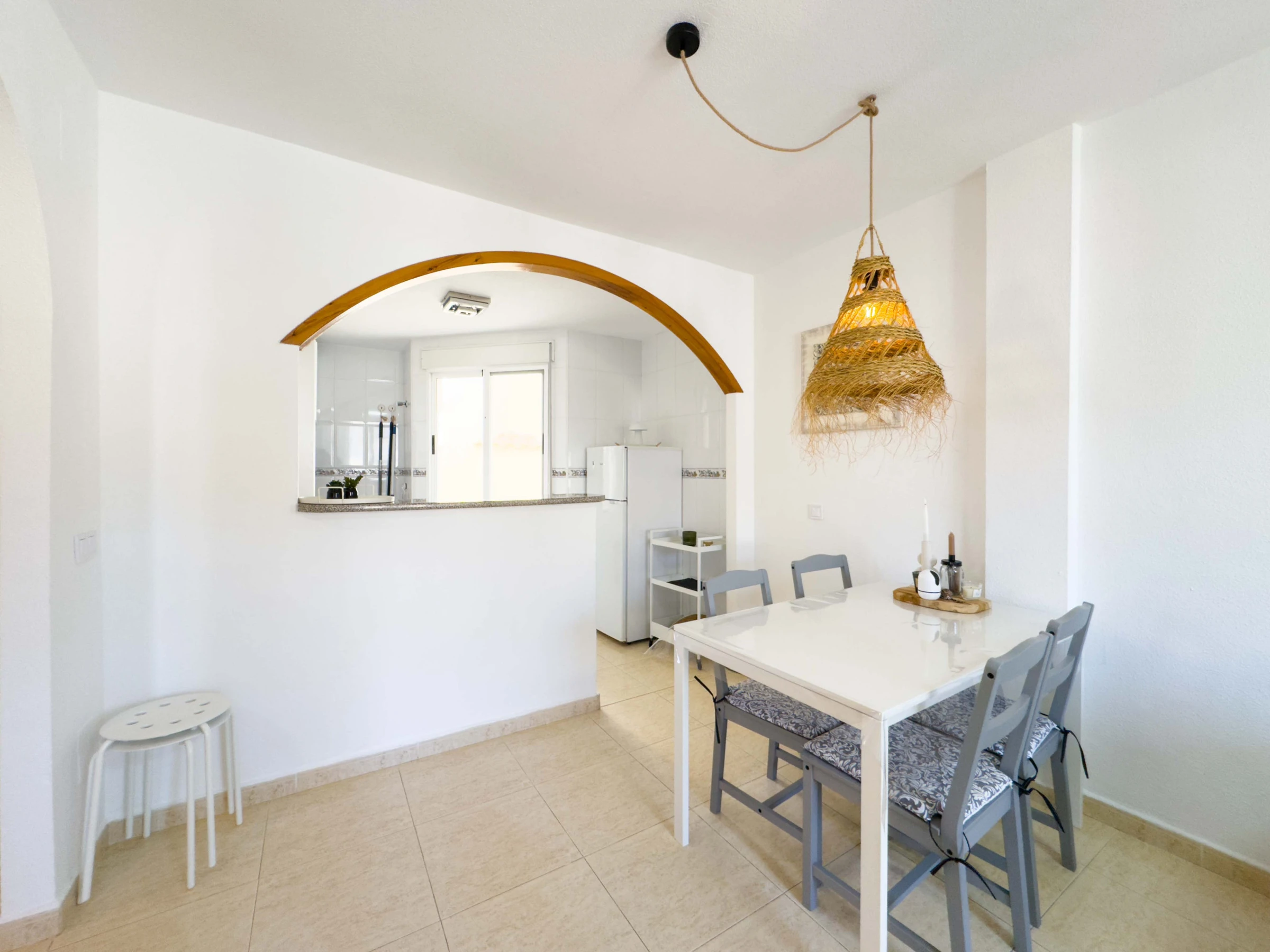 Dieser wunderschöne Bungalow besteht aus zwei Schlafzimmern mit einem Doppelbett, zwei Einzelbetten, einem Badezimmer mit Badewanne, einer Küche, einer Dachterrasse zum Genießen der Aussicht und einem Innenhof, um die gute Zeit mit der Familie zu verbringen.