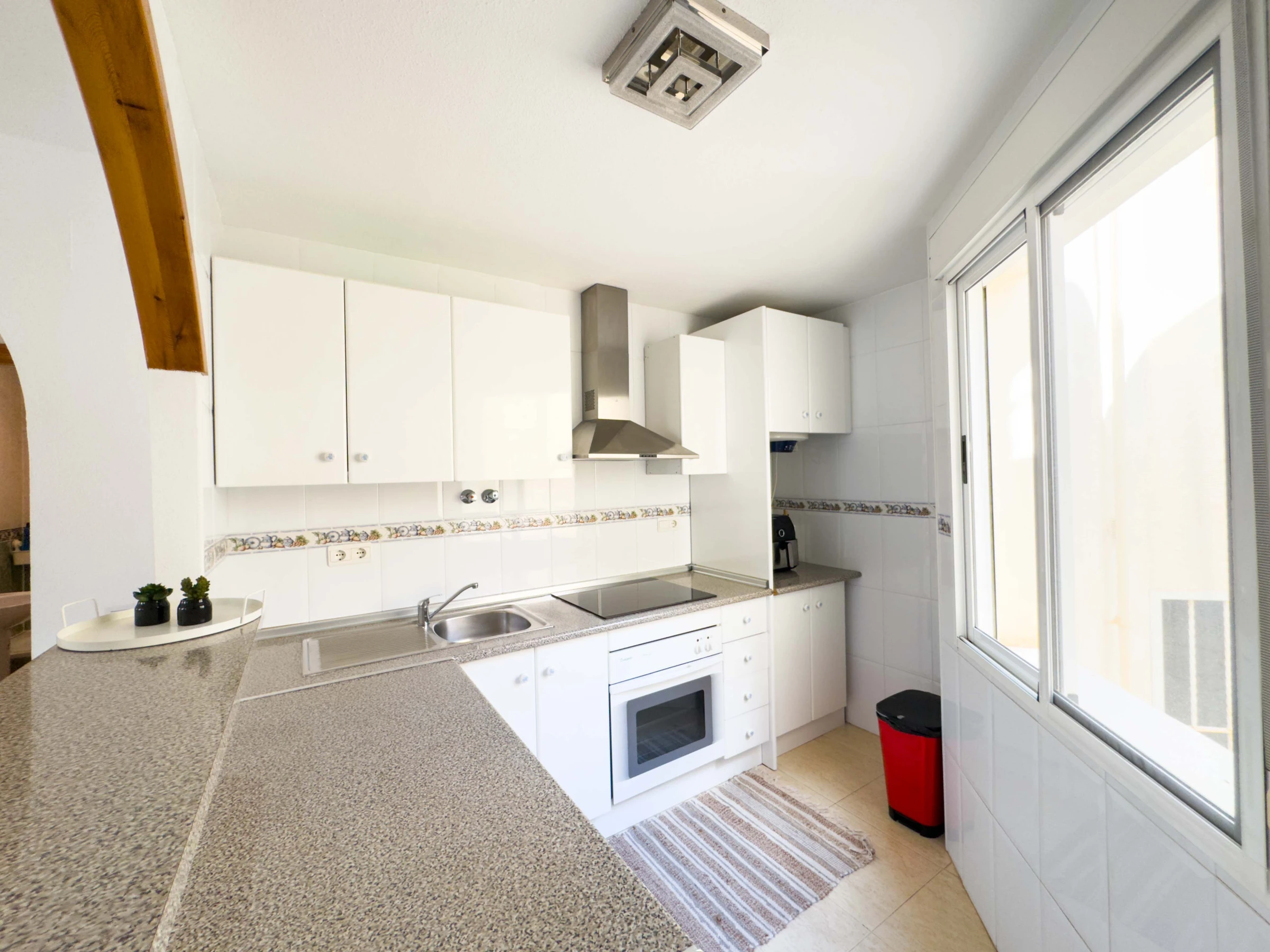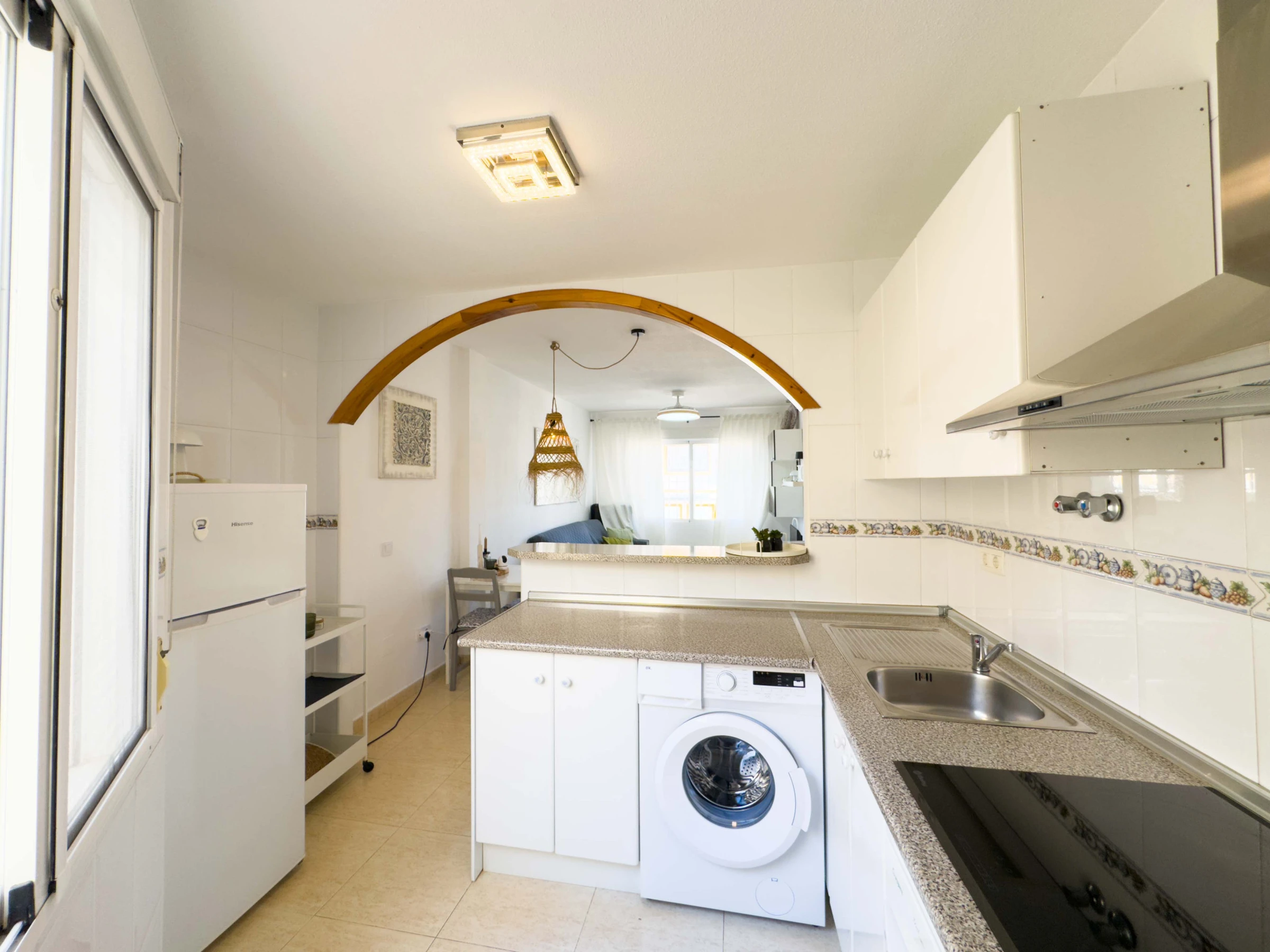 Was die Ausstattung betrifft, verfügt die Küche über eine vollständige Ausstattung, neue Möbel, eine Waschmaschine, ein Bügeleisen und einen Satelliten-TV.
