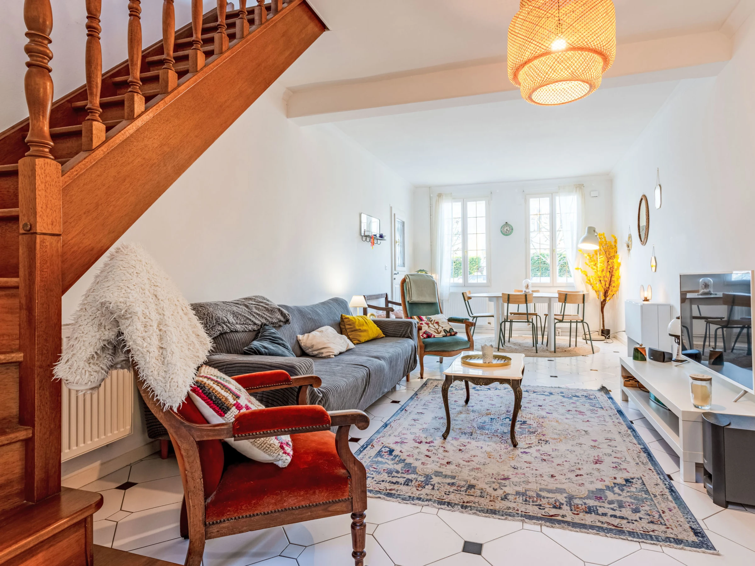 4-Zimmer-Reihenhaus 80 m2, Nordostlage. Wohn-/Esszimmer mit TV (Flachbildschirm). 1 Zimmer mit 1 franz. Bett (140 cm, Länge 190 cm). Küche (4 Kochplatten, Backofen, Geschirrspüler, Toaster, Wasserkocher, Mikrowelle, Tiefkühler, elektrische Kaffeemaschine). Bad/WC. E-Heizung. Obergeschoss: 1 Zimmer mit 2 Betten (90 cm, Länge 200 cm). 1 Zimmer mit 1 franz. Bett (140 cm, Länge 190 cm), Dusche/WC. Zur Verfügung: Waschmaschine, Wäschetrockner. Internet (WLAN, gratis). Bitte beachten: Maximal 1 kleines Haustier/Hund erlaubt. Rauchmelder. Inserat einer Privatperson nach Artikel 155, IV, CGI. [hidden]