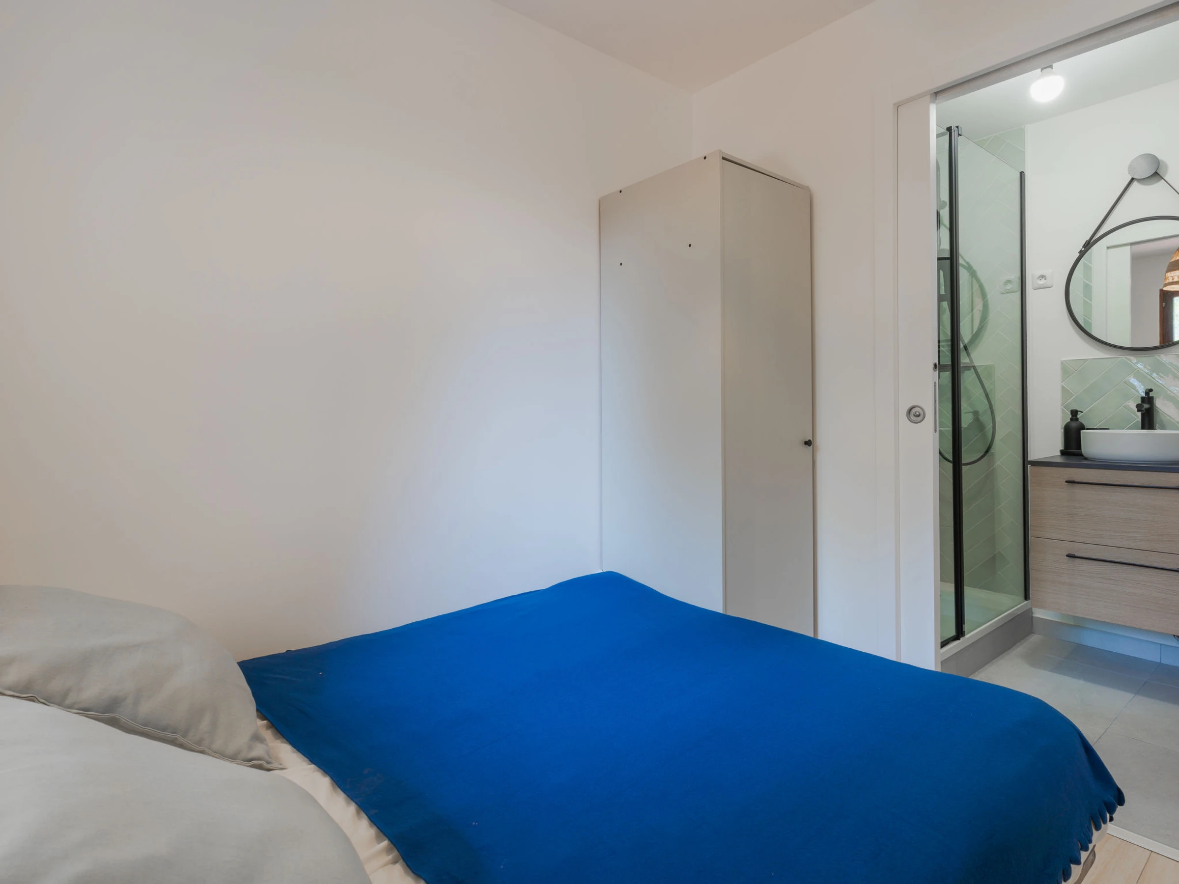 2-Zimmer-Wohnung 22 m2, im Erdgeschoss, Südlage. Wohn-/Esszimmer mit TV (Flachbildschirm). Ausgang zum Garten, zur Terrasse. 1 Zimmer mit 1 franz. Bett (1 x 140 cm, Länge 200 cm). Kochnische (4 Glaskeramikplatten, Toaster, Wasserkocher, Mikrowelle, elektrische Kaffeemaschine, Kapseln für die Kaffeemaschine (Phillips Or) extra). Bad/WC. E-Heizung. Grosser Garten 25 m2, Südlage. Terrassenmöbel, Liegestühle (2). Zur Verfügung: Internet (Wireless LAN, extra). Inserat einer Privatperson nach Artikel 155, IV, CGI.
