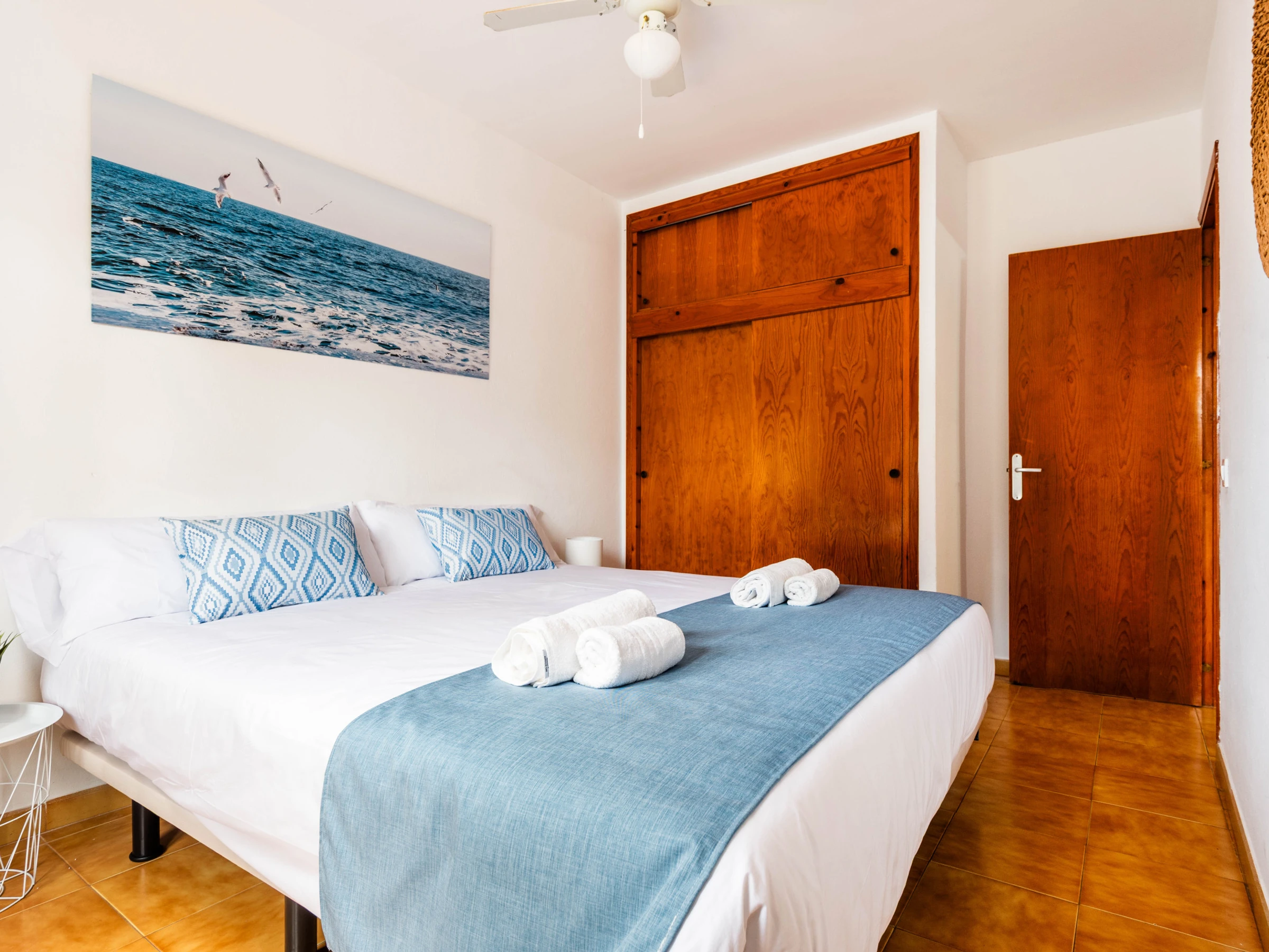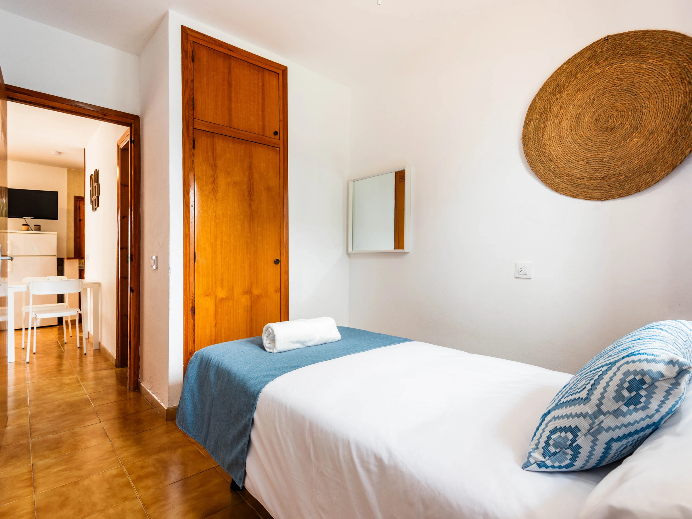 Die Wohnung verfügt über zwei Schlafzimmer - eines mit zwei Betten von 90x200, die auf Wunsch des Gastes zu einem Kingsize-Bett zusammengeführt werden können, und ein Einzelzimmer - sowie ein Schlafsofa von 140 cm, ideal für zwei Kinder (0-16 Jahre).