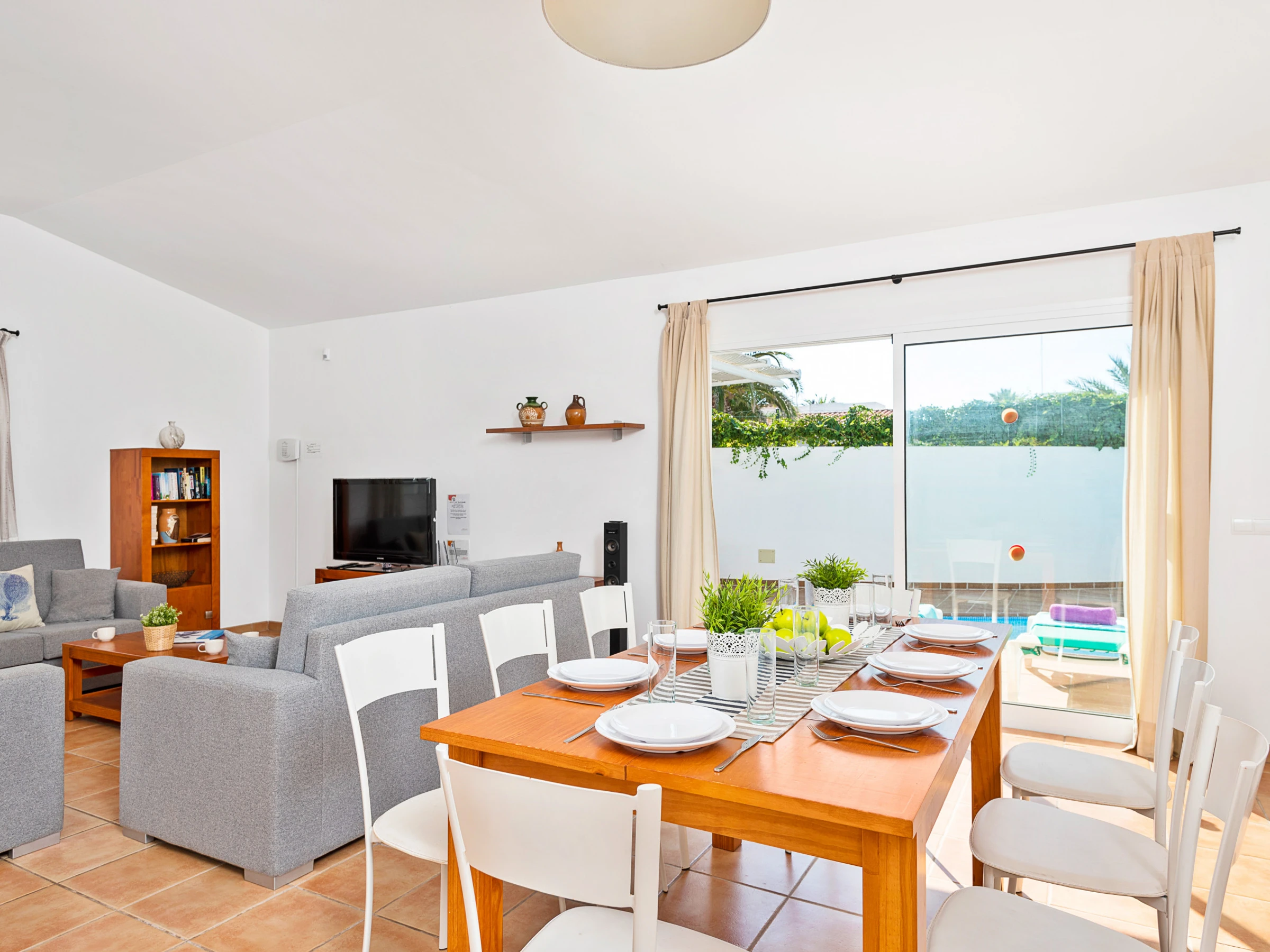 Genießen Sie einen Familienurlaub in dieser modernen und gemütlichen Unterkunft in Cala'n Bosch. Nur 600 Meter vom Sandstrand entfernt, verfügt diese Unterkunft über einen privaten 8x4 Meter großen Pool mit Balinenbett und einen großen Garten mit Außenmöbeln und Grillplatz.