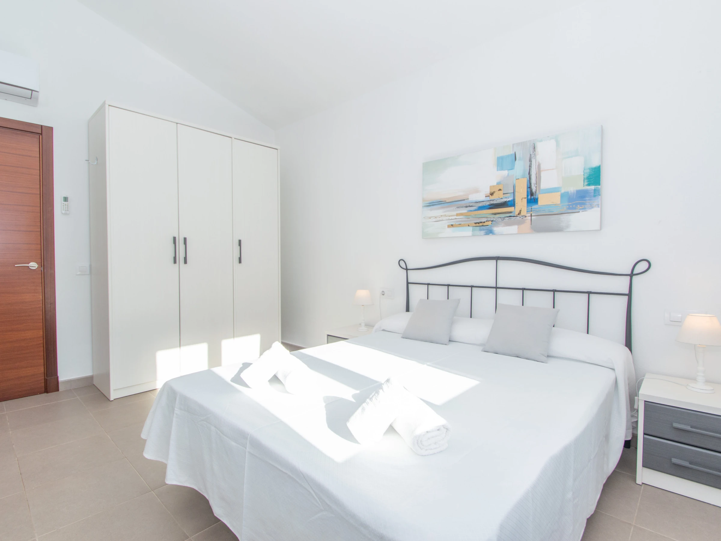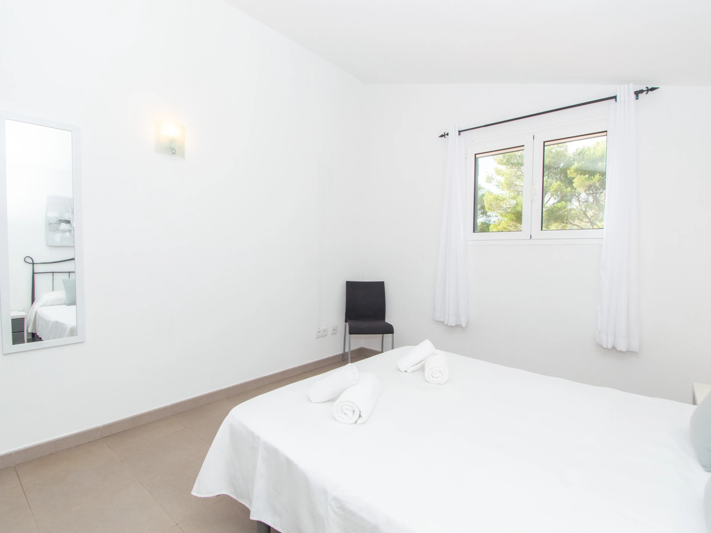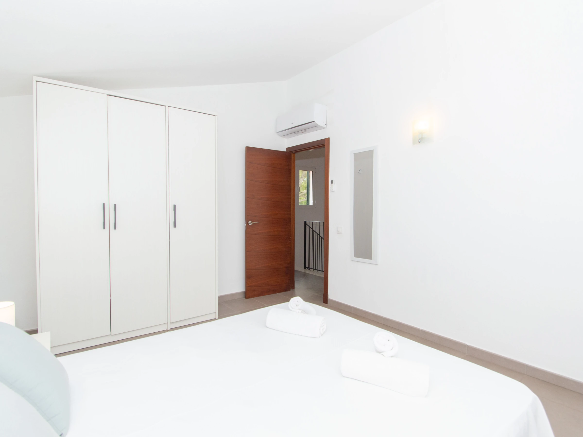 Im Obergeschoss befinden sich die weiteren drei Doppelzimmer. Das Hauptschlafzimmer ist mit einem Doppelbett, einem guten Kleiderschrank zur Aufbewahrung aller Kleidungsstücke und einer Klimaanlage ausgestattet. Das Badezimmer verfügt über eine große Duschwanne und einen Haartrockner. Das nächste Doppelzimmer ist mit zwei Einzelbetten, einem Kleiderschrank und einer Klimaanlage ausgestattet. Schließlich verfügt das dritte Schlafzimmer auch über zwei Einzelbetten, einen Schrank mit ausreichend Platz zum Aufbewahren von Kleidung und eine Klimaanlage. Das andere Badezimmer ist ebenfalls komplett mit einer Duschwanne ausgestattet.
