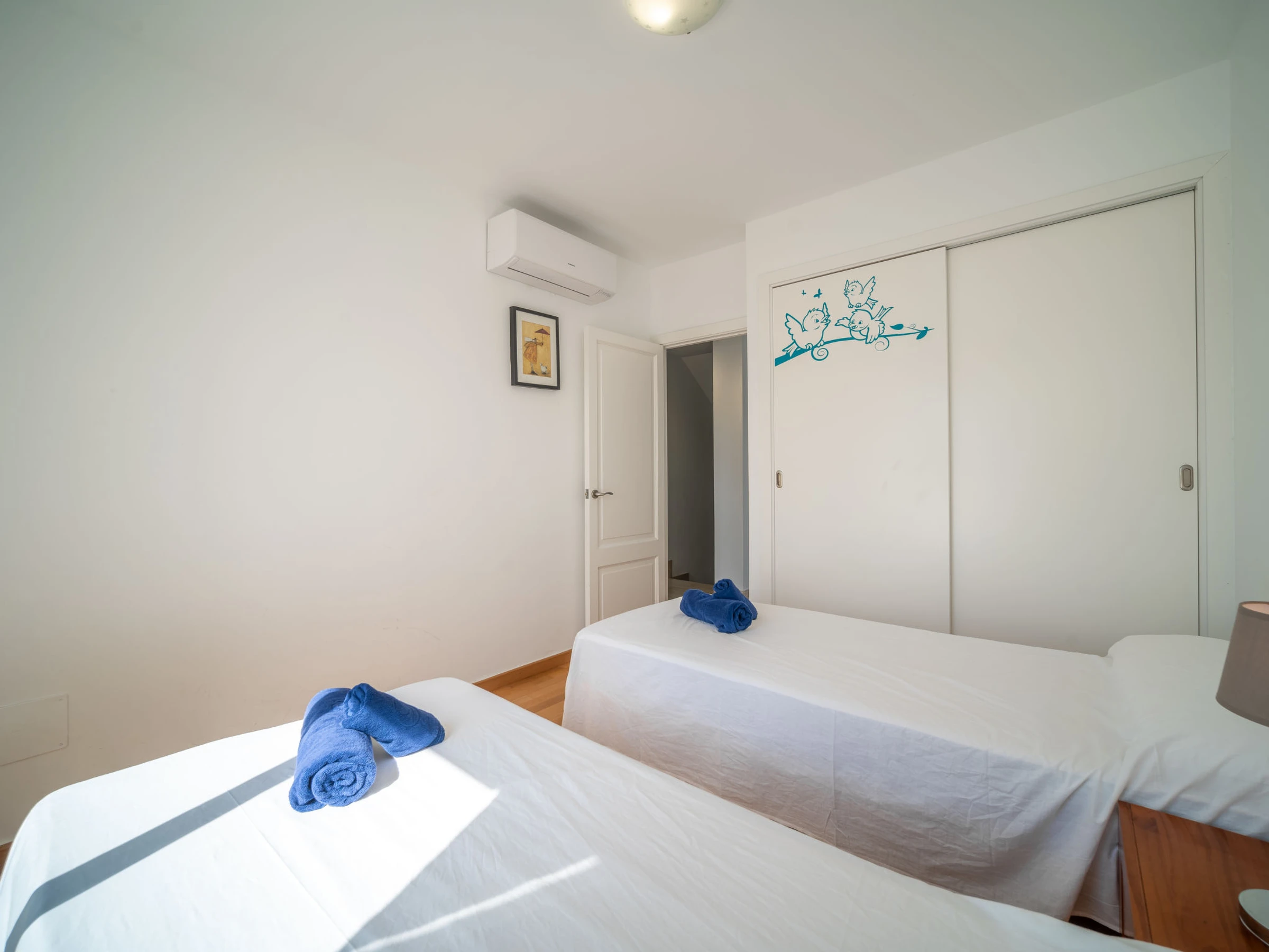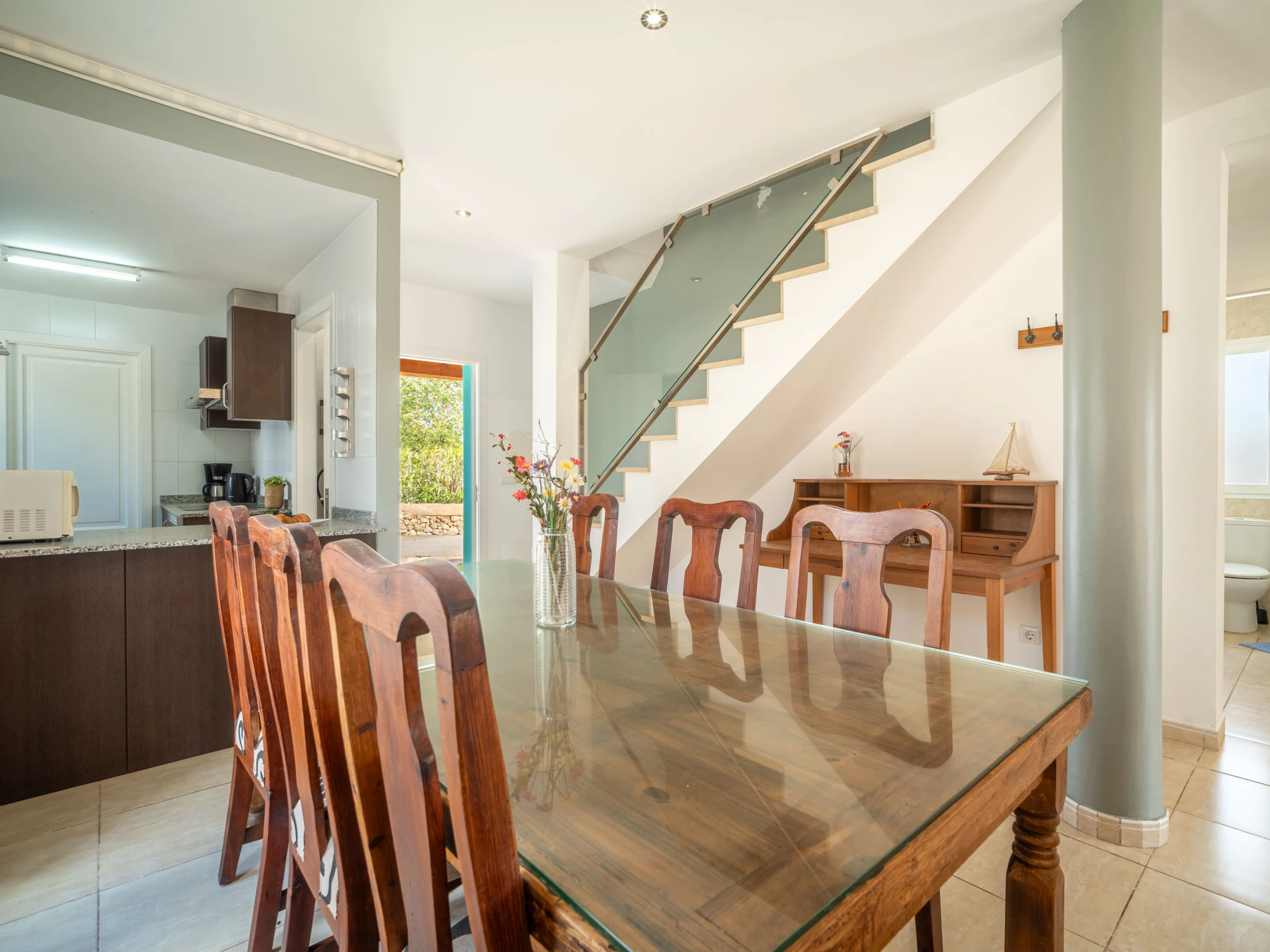 "Son Ganxo II", 4-Zimmer-Reihenhaus 166 m2. Objekt geeignet für 6 Erwachsene. Zweckmässig und gemütlich eingerichtet: Wohn-/Esszimmer mit Klimaanlage und Warmluftheizung. Ausgang zum Gartensitzplatz, zum Schwimmbad. 1 Zimmer mit 2 Betten (90 cm, Länge 190 cm), Klimaanlage und Warmluftheizung. Ausgang zum Gartensitzplatz. Offene Küche (Backofen, Geschirrspüler, 4 Glaskeramikplatten, Toaster, Wasserkocher, Mikrowelle, elektrische Kaffeemaschine). Dusche/WC. Obergeschoss: 1 Doppelzimmer mit 1 franz. Bett (1 x 180 cm, Länge 190 cm), Klimaanlage und Warmluftheizung. Ausgang zum Balkon. 1 Doppelzimmer mit 1 franz. Bett (1 x 180 cm, Länge 190 cm), Klimaanlage und Warmluftheizung. Ausgang zum Balkon. 2 Bäder/WC. Klimaanlage, Warmluftheizung. Heizung nicht in allen Räumen. Natursteinboden. Gartensitzplatz, Garten, Rasen, Laube. Terrassenmöbel, Gartengrill, Liegestühle, Loggia. Sicht auf die Landschaft. Zur Verfügung: Waschmaschine, Bügeleisen, Kinderhochstuhl, Babybett bis 2 Jahre, Haartrockner. Internet (WLAN, gratis). Parkplatz beim Haus. Bitte beachten: geeignet für Familien. Nichtraucher-Haus. Der ausgeschriebene Pool ist zur alleinigen Nutzung. [hidden] // Reg. Nr.: ESFCTU00000702300130366900000000000000000000[hidden]5