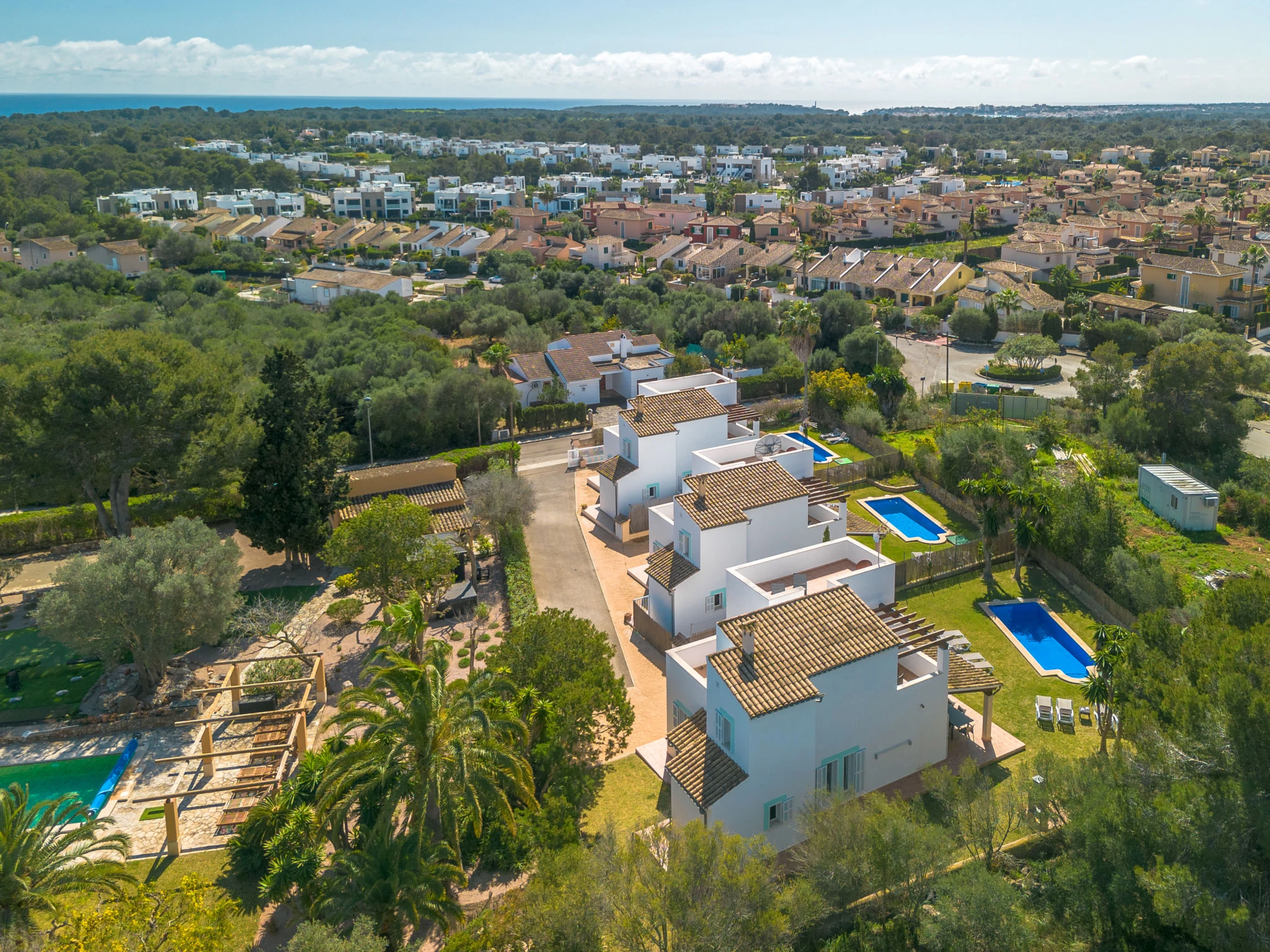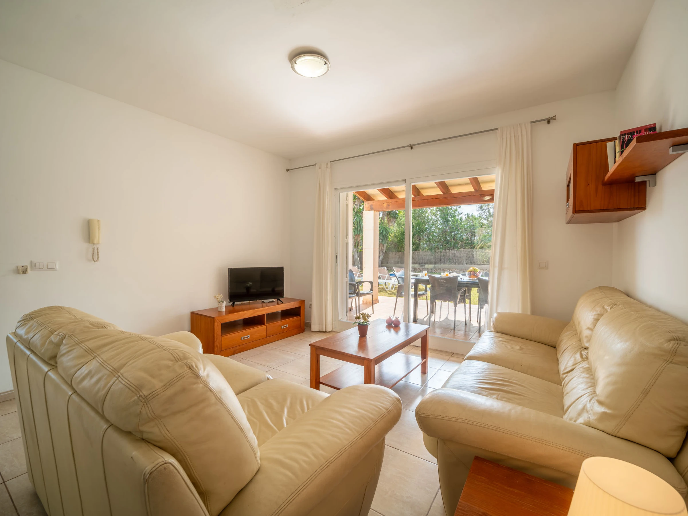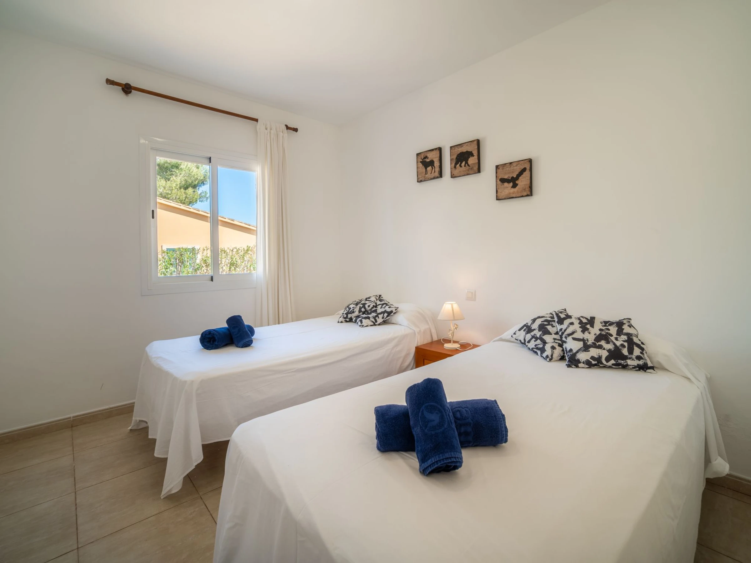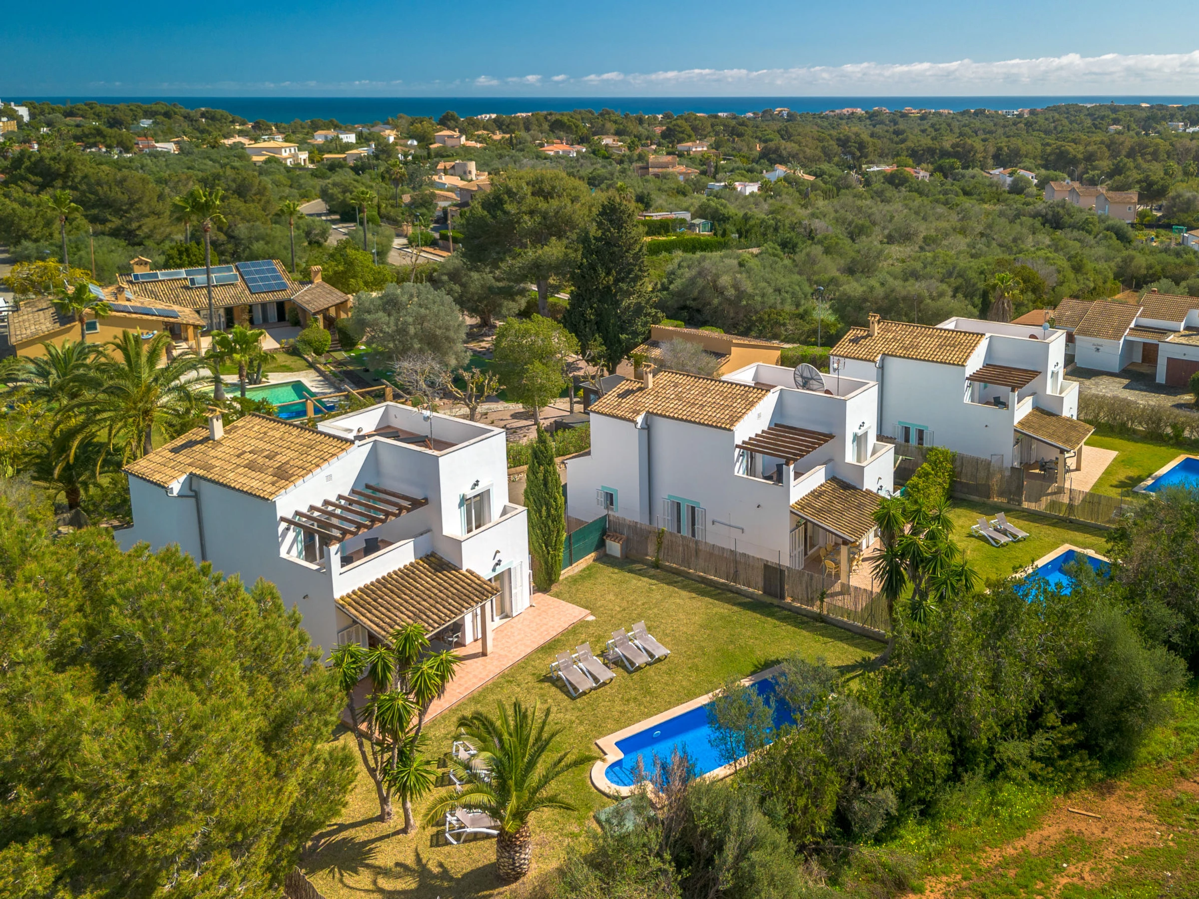 "Son Ganxo III", 4-Zimmer-Reihenhaus 166 m2. Objekt geeignet für 6 Erwachsene. Zweckmässig und gemütlich eingerichtet: Wohn-/Esszimmer mit Klimaanlage und Warmluftheizung. Ausgang zum Gartensitzplatz, zum Schwimmbad. 1 Zimmer mit 2 Betten (90 cm, Länge 190 cm), Klimaanlage und Warmluftheizung. Ausgang zum Gartensitzplatz. 1 Zimmer mit 1 Doppeldiwanbett (1 x 150 cm, Länge 190 cm). Offene Küche (Backofen, Geschirrspüler, 4 Glaskeramikplatten, Toaster, Wasserkocher, Mikrowelle, elektrische Kaffeemaschine). Dusche/WC. Obergeschoss: 1 Doppelzimmer mit 1 franz. Bett (1 x 180 cm, Länge 190 cm), Klimaanlage und Warmluftheizung. Ausgang zum Balkon. 1 Doppelzimmer mit 2 Betten (90 cm, Länge 190 cm), Klimaanlage und Warmluftheizung. Ausgang zum Balkon. 2 Bäder/WC. Klimaanlage, Warmluftheizung. Heizung nicht in allen Räumen. Natursteinboden. Gartensitzplatz, Garten, Rasen, Laube. Terrassenmöbel, Gartengrill, Liegestühle, Loggia. Sicht auf die Landschaft. Zur Verfügung: Waschmaschine, Bügeleisen, Kinderhochstuhl, Babybett bis 2 Jahre, Haartrockner. Internet (WLAN, gratis). Parkplatz beim Haus. Bitte beachten: geeignet für Familien. Nichtraucher-Haus. Der ausgeschriebene Pool ist zur alleinigen Nutzung. [hidden] // Reg. Nr.: ESFCTU00000702300130367600000000000000000000[hidden]9