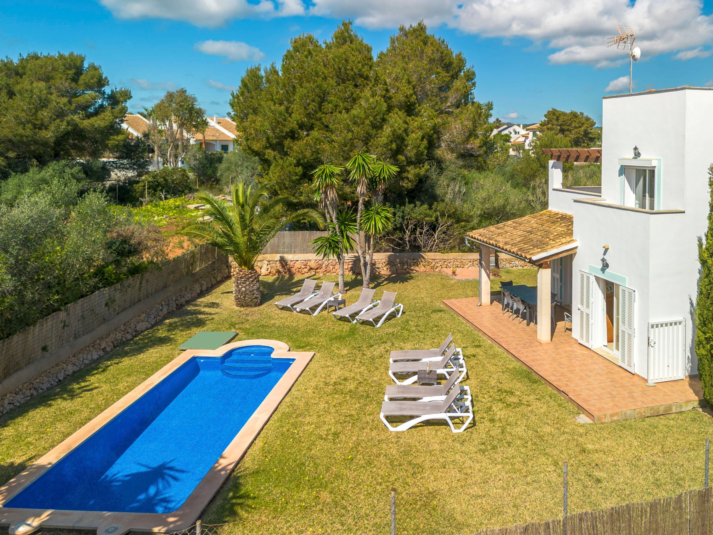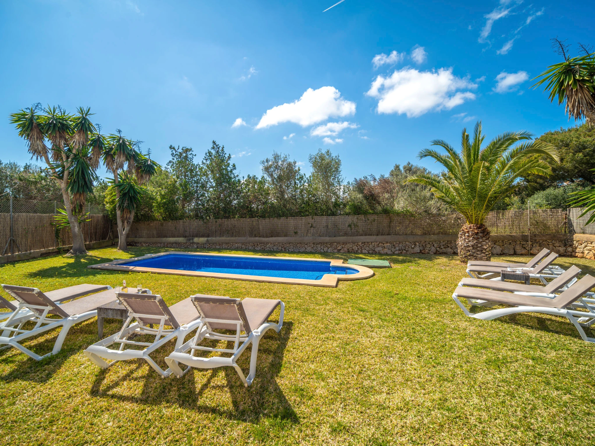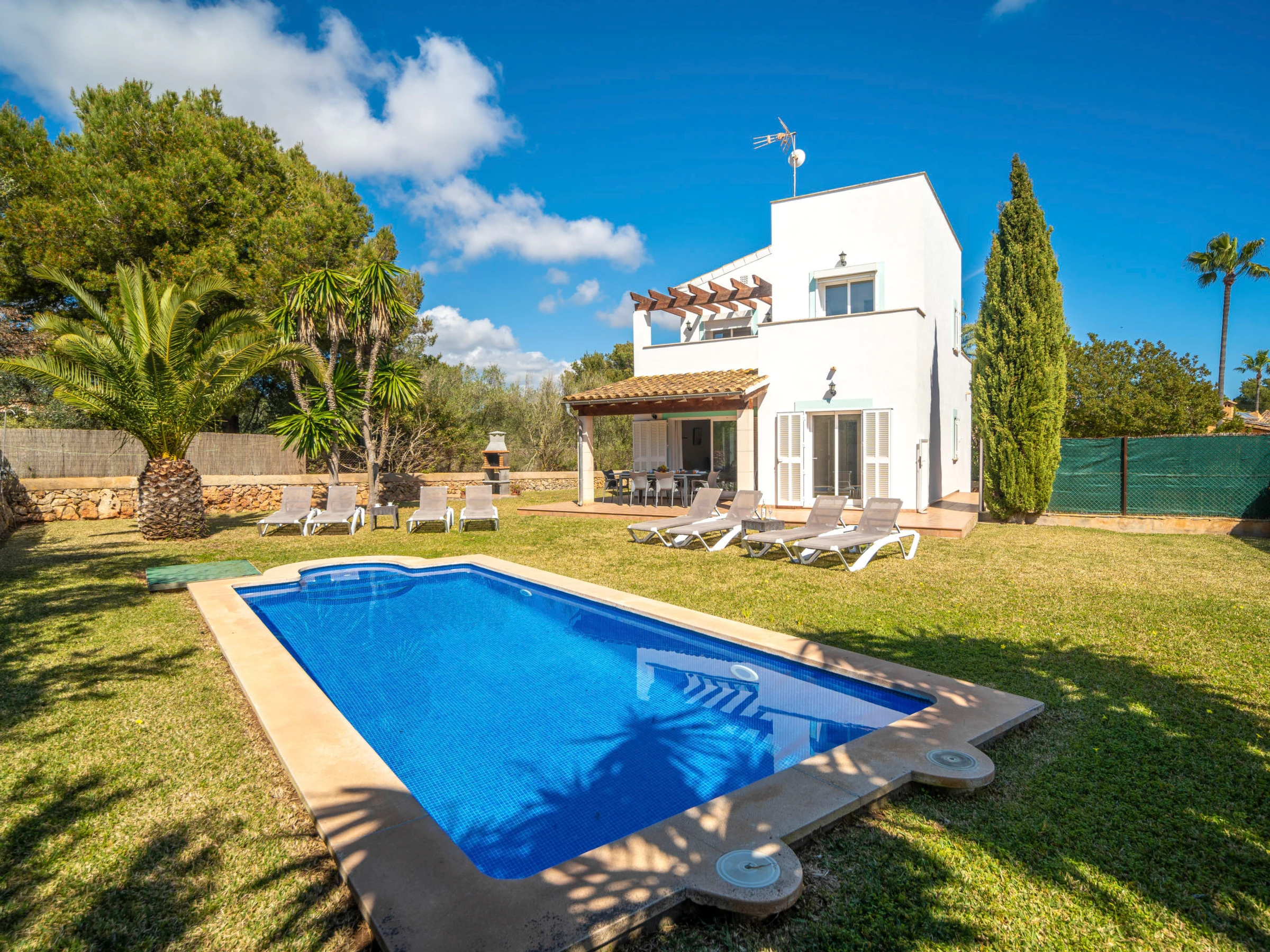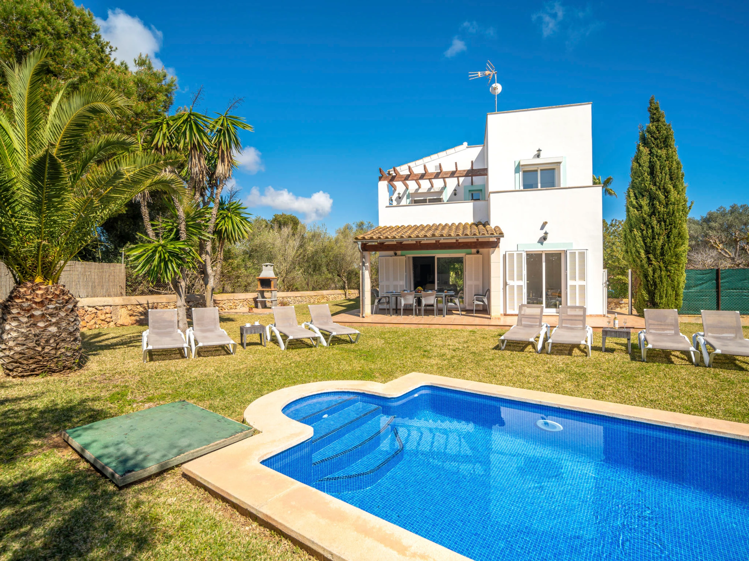 Cala Murada: Grosses, gemütliches Einfamilienhaus "Son Ganxo", auf 2 Stockwerken. 3 Häuser in der Residenz. Im Ort, ruhige, sonnige Lage im Villenviertel, 700 m vom Meer, 700 m vom Strand. Zur Alleinbenutzung: naturbelassenes Grundstück mit Rasen, Hof, Schwimmbad eckig (7 x 3 m, saisonale Verfügbarkeit: [hidden] - [hidden] Aussendusche, Sitzplatz, Laube, Pergola, Gartenmöbel, Grill, Poolpflege durch den Besitzer/Gärtner. Im Hause: Internetzugang, Wireless LAN, Klimaanlage, Waschmaschine. Parkplatz beim Haus auf dem Grundstück. Supermarkt 2.4 km, Restaurant 1.8 km, Bar 1.8 km, Zentrum zu Fuss in 25 Minuten erreichbar, Bushaltestelle "Platja Cala Murada" 1.7 km, Sandstrand "Platja Cala Murada" 700 m, Felsstrand "Cala Murada" 700 m. Sporthafen 11 km, Golfplatz (18 Loch) 11 km, Wanderwege ab Haus 200 m, Radweg 500 m. Nahe gelegene Sehenswürdigkeiten: Portocolom - Cala D'Or - Portopetro, Felanitx 17 km, Rafa Nadal Museum Manacor 21 km, Cala Domingos,Cala Antena, Cala Bota 7 km, Colonia St Jordi - Es Trenc 41 km, Palma de Mallorca City 68 km. Wandergebiete: Serra de Tramuntana 90 km, Ruta Cala Murada - S'Algar- Portocolom. Bitte beachten: Fahrzeug empfohlen. Objekt geeignet für 6 Erwachsene. Der Besitzer akzeptiert keine Jugendgruppen. Be- und Entladen am Ferienhaus möglich. Flugplatz 63 km vom Haus. Weitere Unterkünfte sind buchbar. Ferienwohnung Ref. ES8178.102.2 befindet sich auf dem gleichen Grundstück. Die Nachbarschaft ist sehr lärmempfindlich. Ruhe und gutes Benehmen wird erwartet. In dieser Anlage zusätzlich mietbar: 2 Häuser. Das Leitungswasser hat keine Trinkwasserqualität.