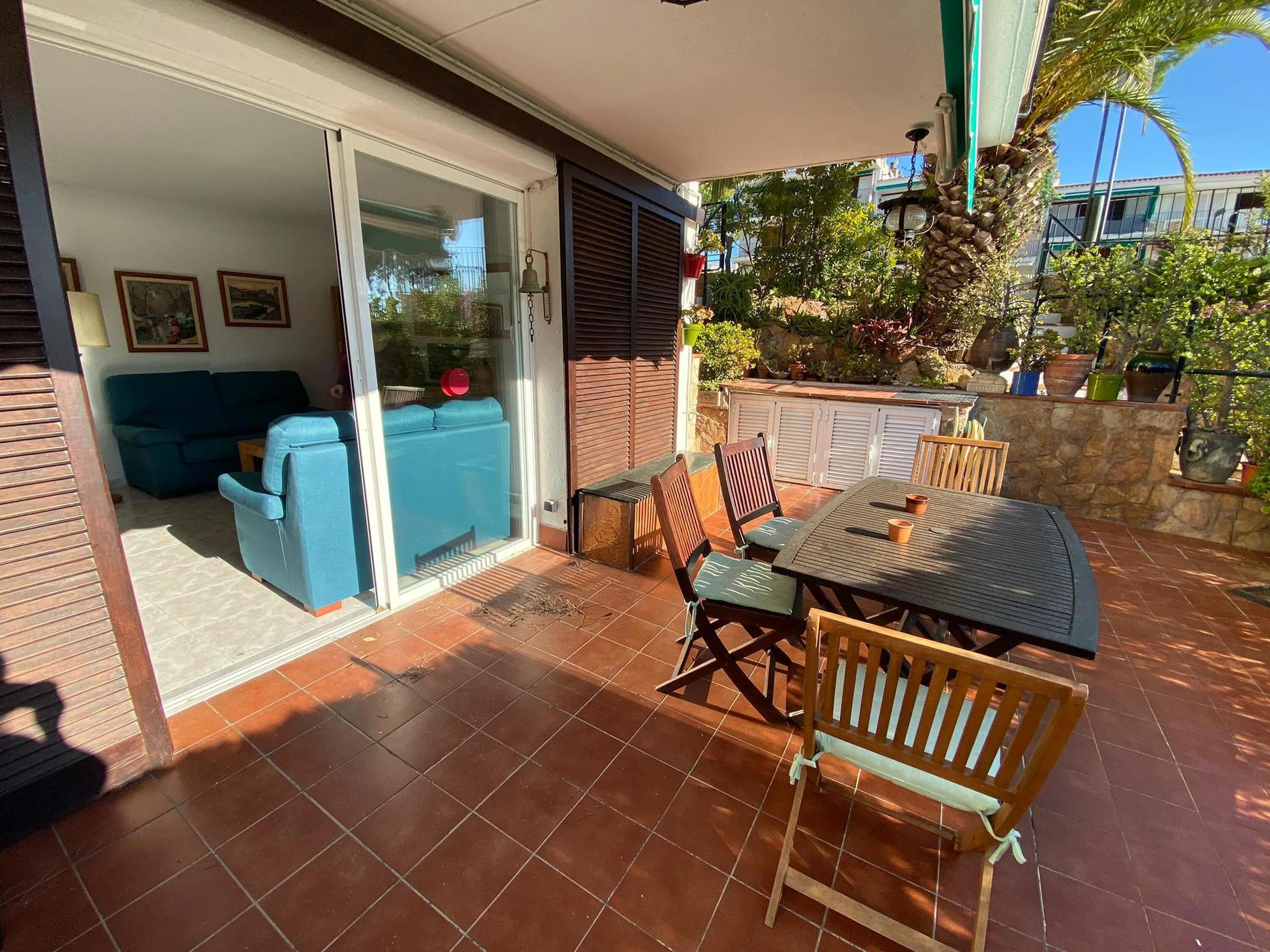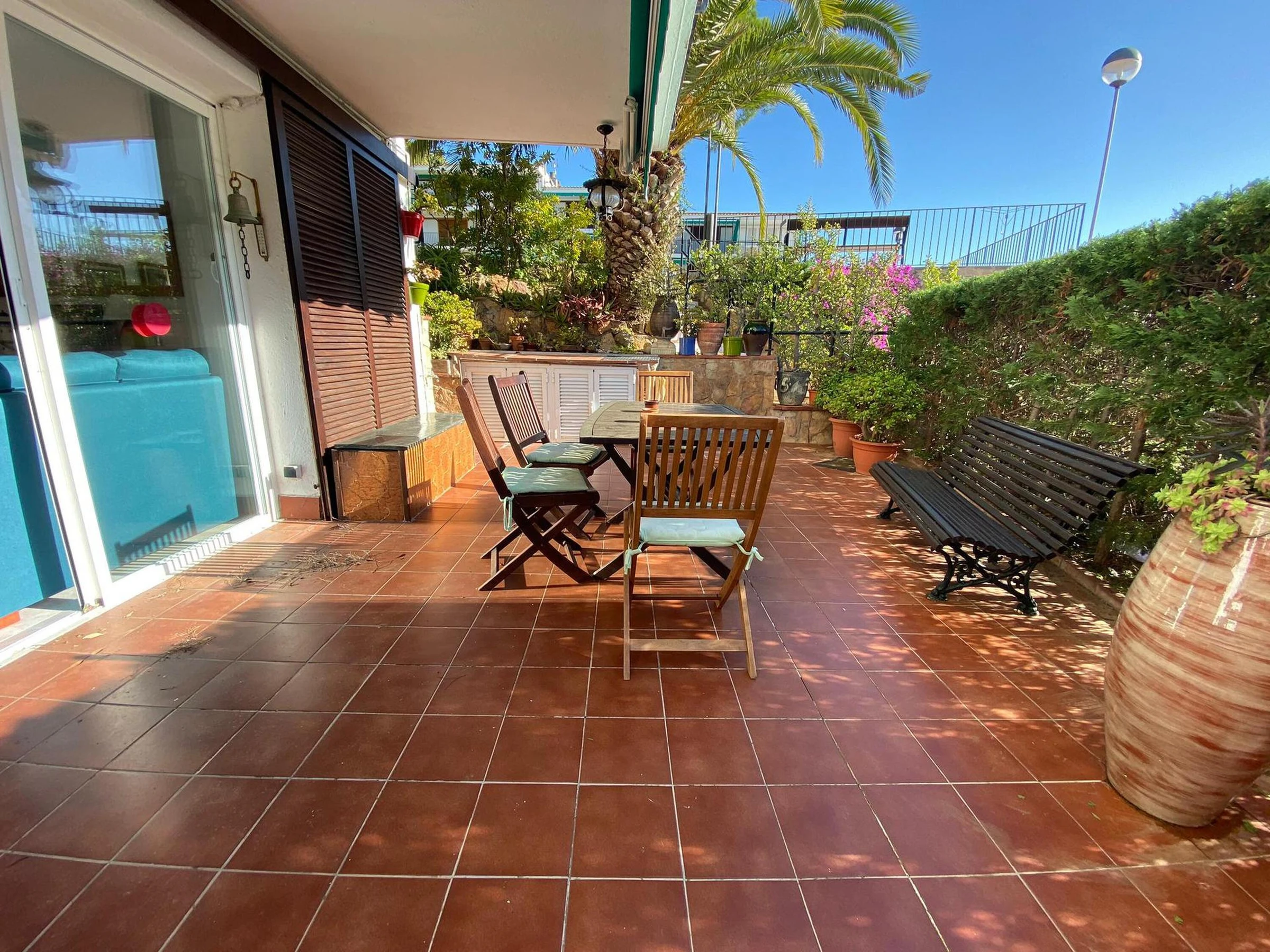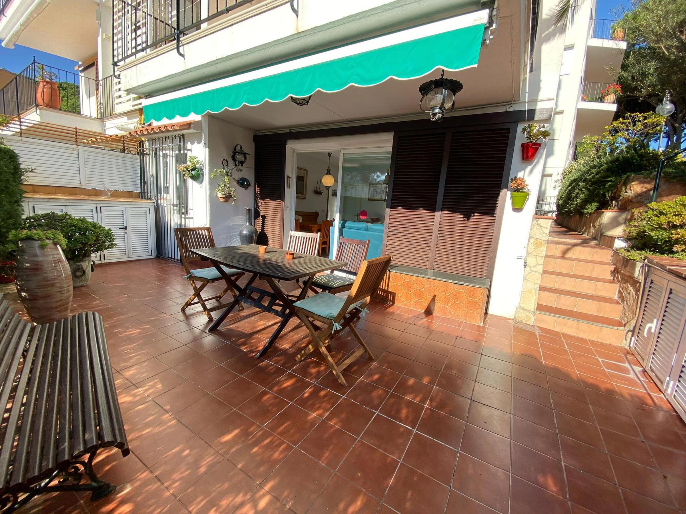 Erdgeschoss-Ferienwohnung nur wenige Meter entfernt vom Strand und vom Zentrum von Calella de Palafrugell, Costa Brava. Mit Kapazität bis zu 4 Personen befindet sich diese Ferienwohnung in einer tollen Anlage mit Swimming Pool und Garten, nur wenige Meter vom Strand Port Pelegrí von Calella de Palafrugell. Das Apartment besteht aus Wohn- und Esszimmer mit Kamin und Ausgang zur grossen Terrasse, 2 Schlafzimmern (1 mit Doppelbett und 1 mit zwei Einzelbetten), einer voll ausgestatteten Küche, einem Badezimmer und einem Gäste-WC. Von der Terrasse aus kann man direkt zum Swimming Pool und der Gartenanlage gehen. Bitte beachten Sie, dass Bettwäsche und Handtücher nicht im Preis inbegriffen sind. Diese können jedoch gegen eine Gebühr von 10€ pro Person für Bettwäsche und 10€ pro Person für Handtücher bei uns gebucht werden Bei näheren Fragen zum Feriendomizil können Sie uns gerne kontaktieren.