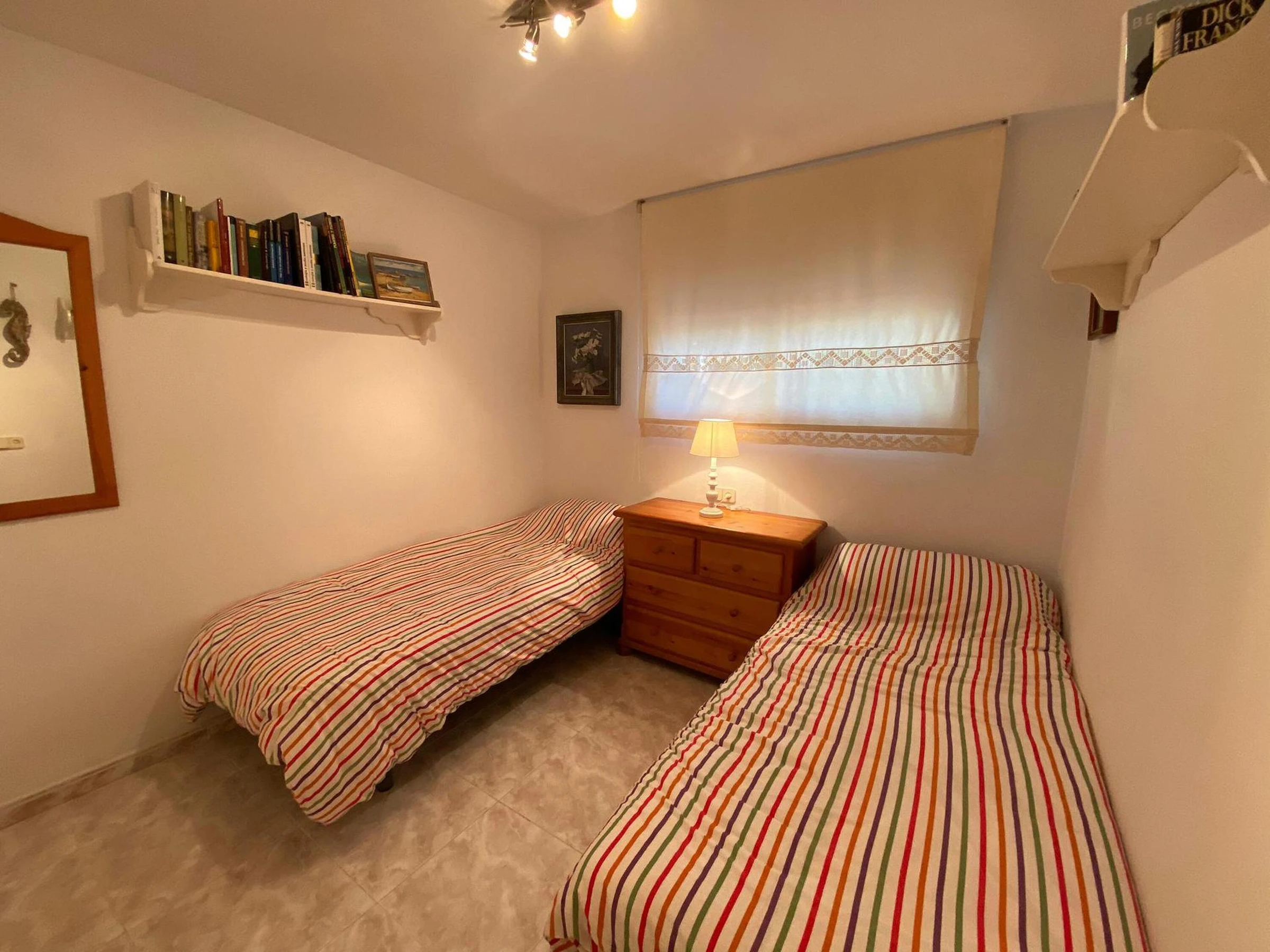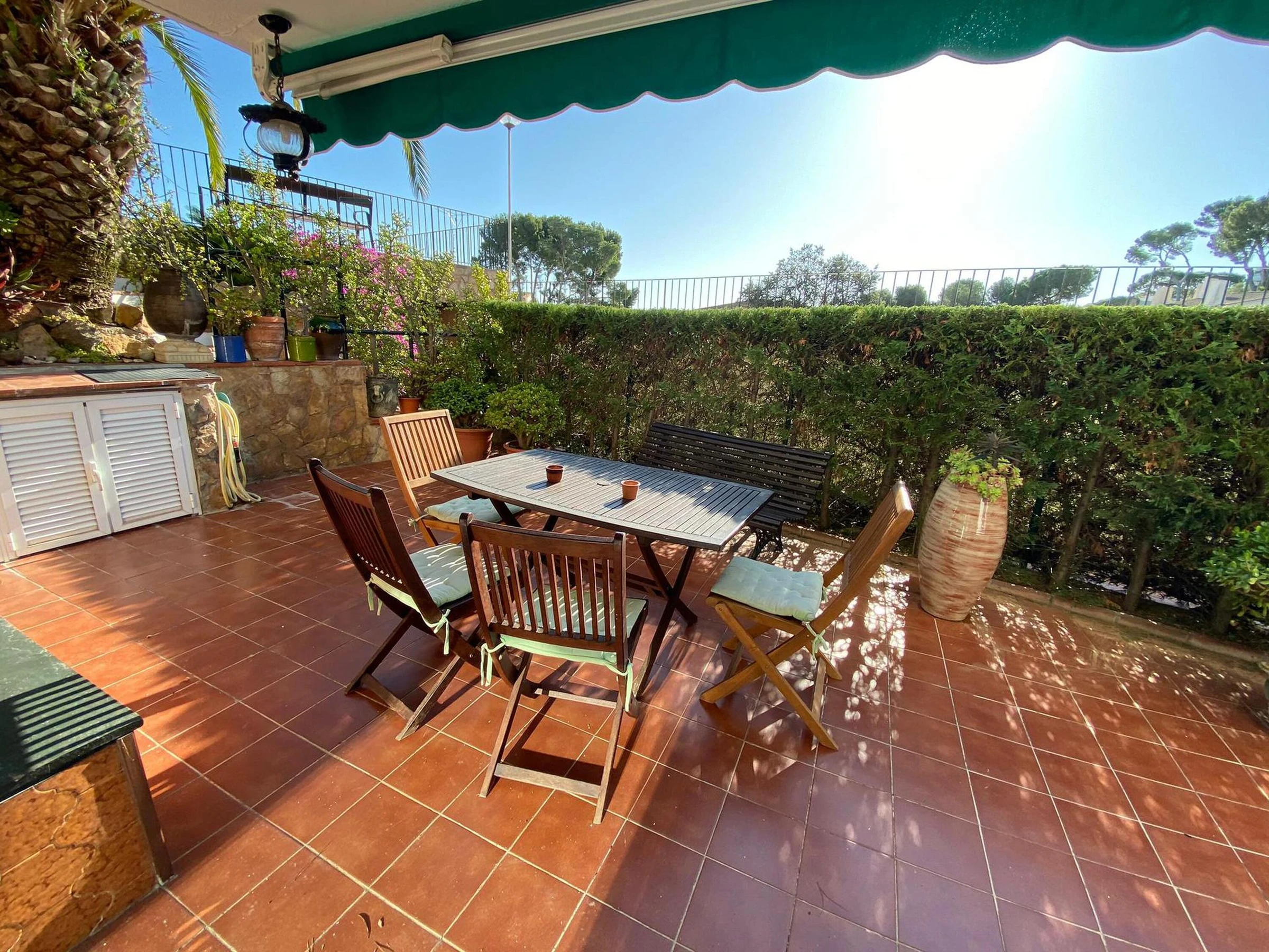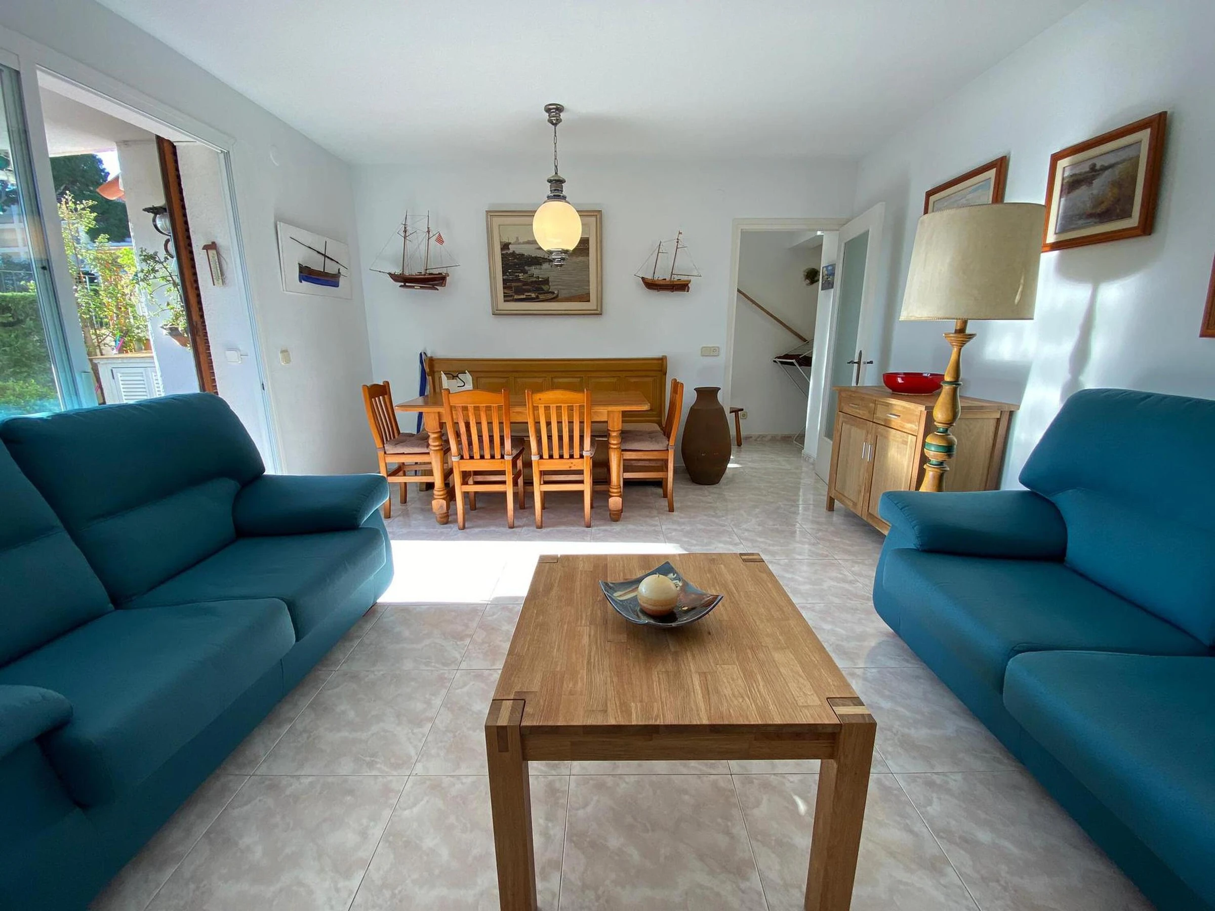 Erdgeschoss-Ferienwohnung nur wenige Meter entfernt vom Strand und vom Zentrum von Calella de Palafrugell, Costa Brava. Mit Kapazität bis zu 4 Personen befindet sich diese Ferienwohnung in einer tollen Anlage mit Swimming Pool und Garten, nur wenige Meter vom Strand Port Pelegrí von Calella de Palafrugell. Das Apartment besteht aus Wohn- und Esszimmer mit Kamin und Ausgang zur grossen Terrasse, 2 Schlafzimmern (1 mit Doppelbett und 1 mit zwei Einzelbetten), einer voll ausgestatteten Küche, einem Badezimmer und einem Gäste-WC. Von der Terrasse aus kann man direkt zum Swimming Pool und der Gartenanlage gehen. Bitte beachten Sie, dass Bettwäsche und Handtücher nicht im Preis inbegriffen sind. Diese können jedoch gegen eine Gebühr von 10€ pro Person für Bettwäsche und 10€ pro Person für Handtücher bei uns gebucht werden Bei näheren Fragen zum Feriendomizil können Sie uns gerne kontaktieren.