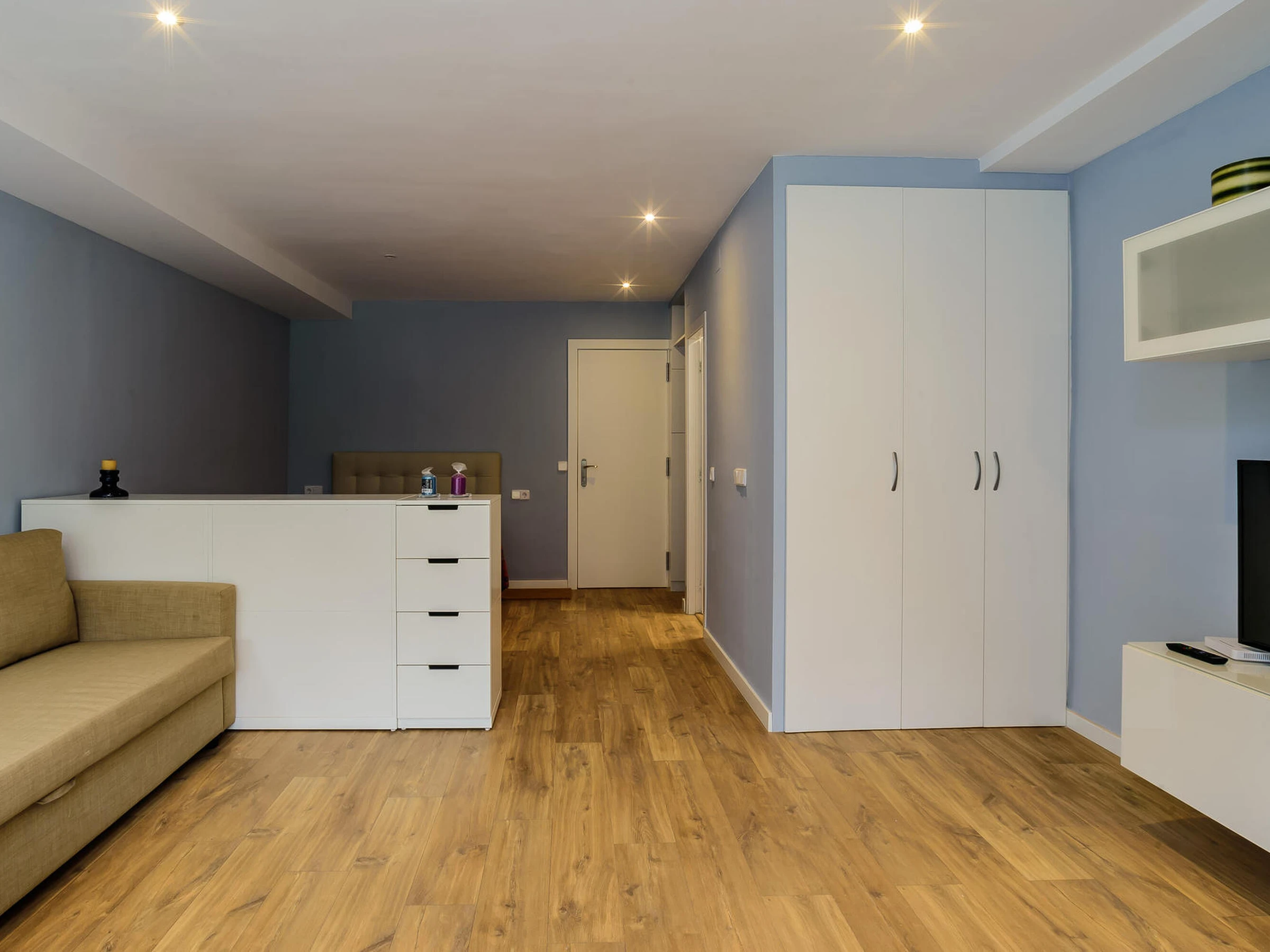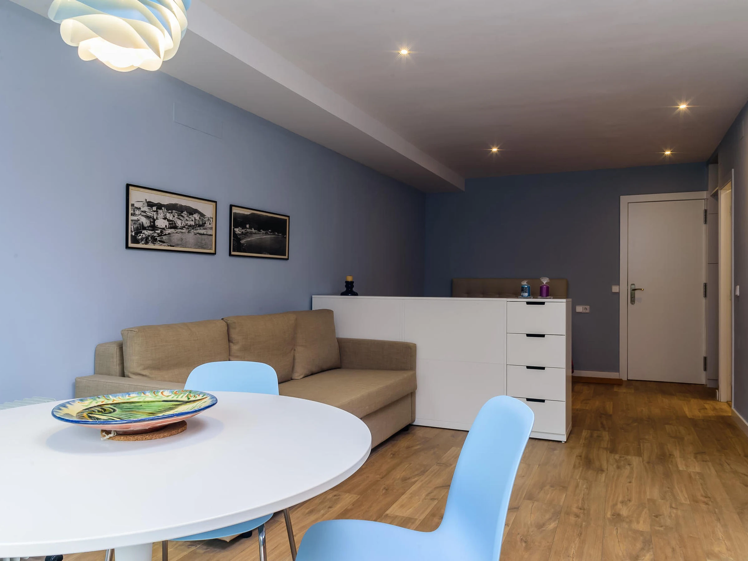 Renoviertes Loft-Apartment in einer Wohnanlage mit Pool, 700 Meter vom Zentrum und den Stränden von Calella de Palafrugell, Costa Brava, entfernt. Der nächste Strand ist der Strand von Port Pelegrí. Das Loft verfügt über 1 Doppelbett, ein Sofa, eine offene Küche und ein Bad mit Dusche. Ideal für Paare. Die maximale Kapazität beträgt 2 Personen. Es gibt keine private Terrasse, aber draußen gibt es einen großen Gemeinschaftstisch zum Grillen. Klimaanlage vorhanden. Auf dem Gemeinschaftsgelände gibt es kostenlose Parkplätze, die Plätze sind jedoch nicht vergeben. Bitte beachten Sie, dass Bettwäsche und Handtücher nicht im Preis inbegriffen sind. Diese können jedoch gegen eine Gebühr von 10 € pro Person für Bettwäsche und 10 € pro Person für Handtücher bei uns gebucht werden Bei Fragen zu dieser Immobilie zögern Sie nicht, uns zu kontaktieren.