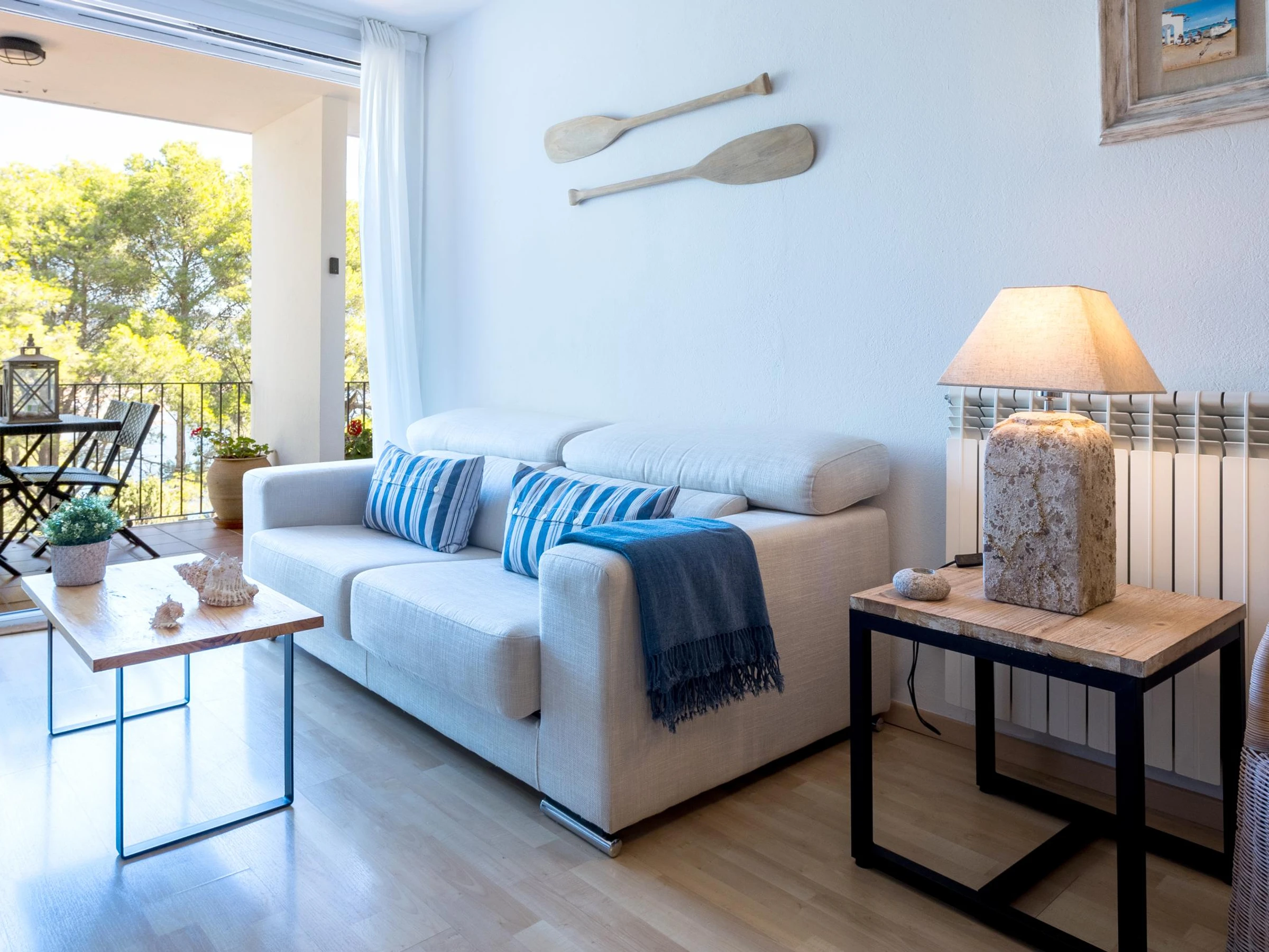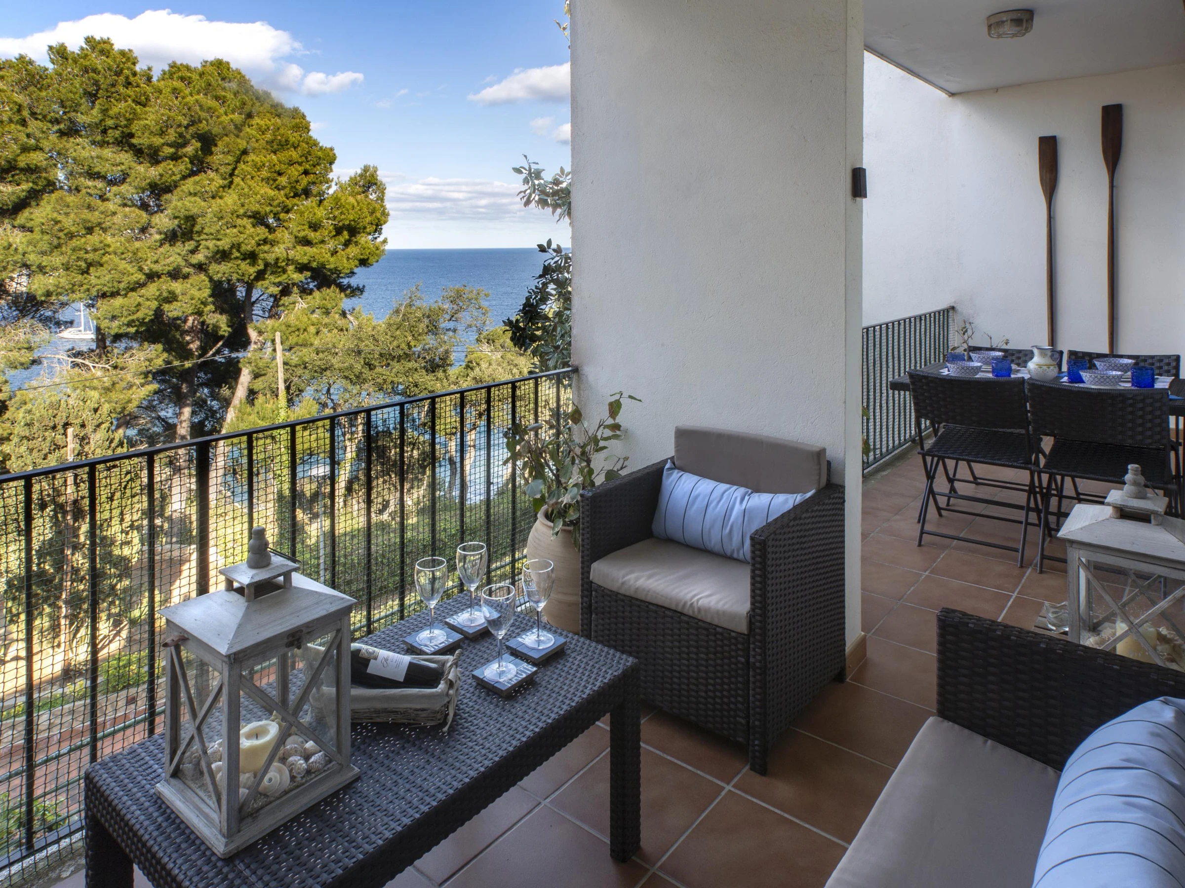Wonderful apartment in Calella de Palafrugell, set in a quiet area, just 100 meters from Sant Roc’s cove and 200 meters from the village’s center. Situated on the top of a cliff, offering amazing views over the Mediterranean Sea. This apartment, beautifully decorated, has a large living room with a direct access to the nice terrace, where you can enjoy splendid sea views. The kitchen is fully equipped with a dishwasher. There are two bedrooms with a double bed and one bathroom. The main bedroom has access to the terrace. Communal garden area Sofa-bed for 1 person Parking Wifi Capacity: 4/5 people 80€ SUPPLEMENT FOR CLEANING FOR STAYS LESS THAN 1 WEEK. MINIMUM STAY OF 3 NIGHTS. THIS SUPPLEMENT IS NOT INCLUDED IN THE RENTAL PRICE.