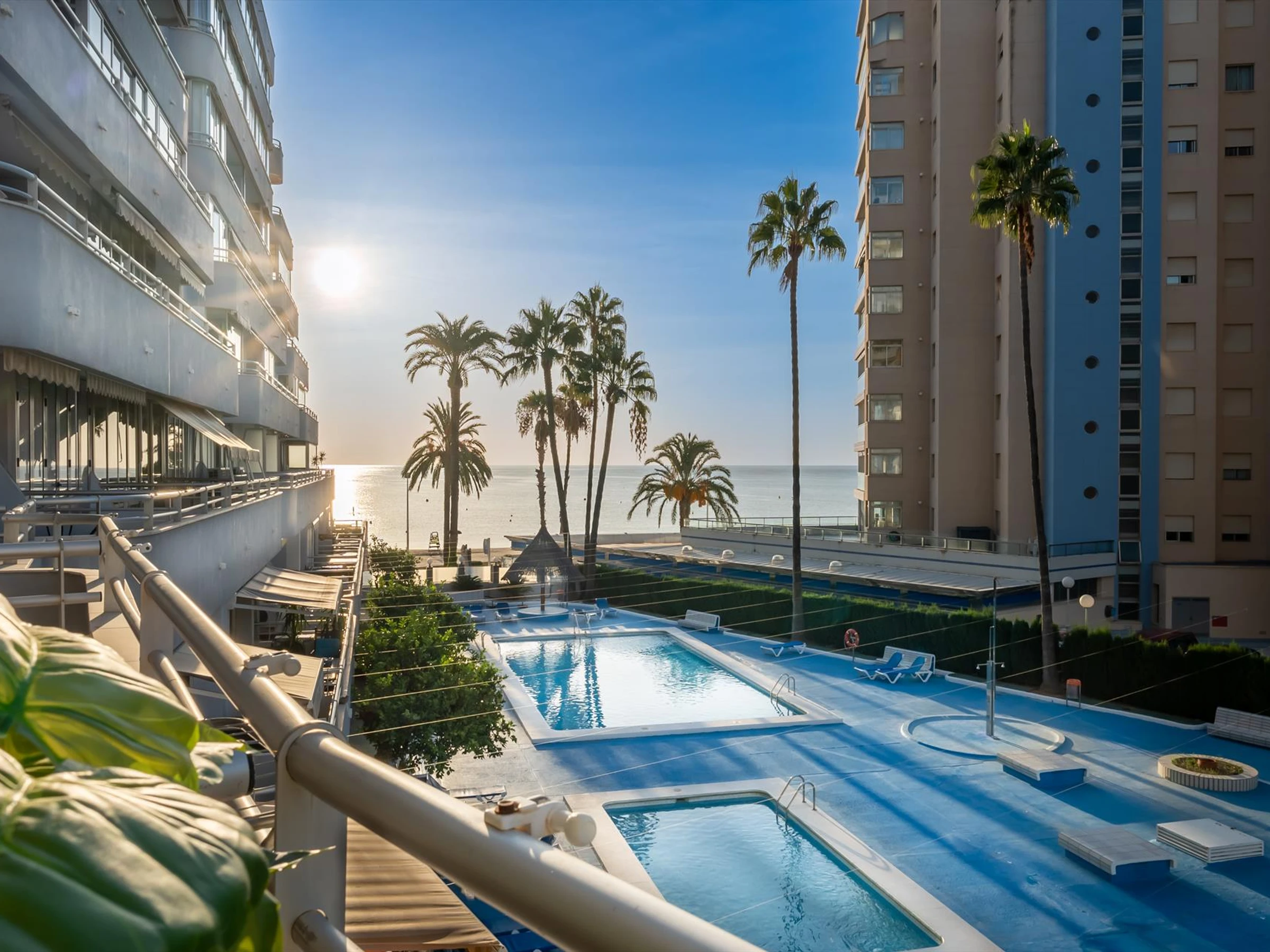 Blick auf das Meer und den Pool. Die Nähe vom Strand, Einkaufsmöglichkeiten,