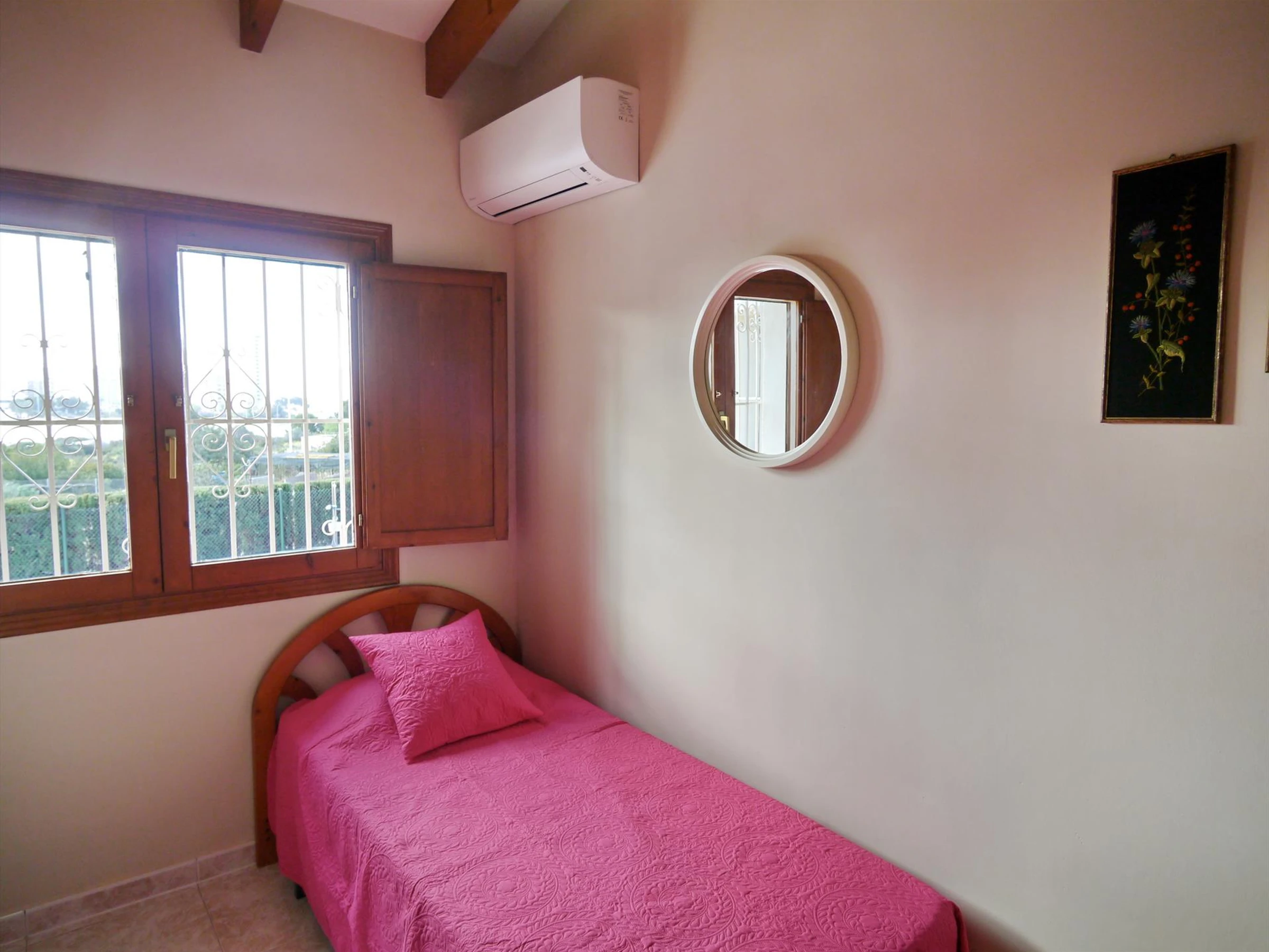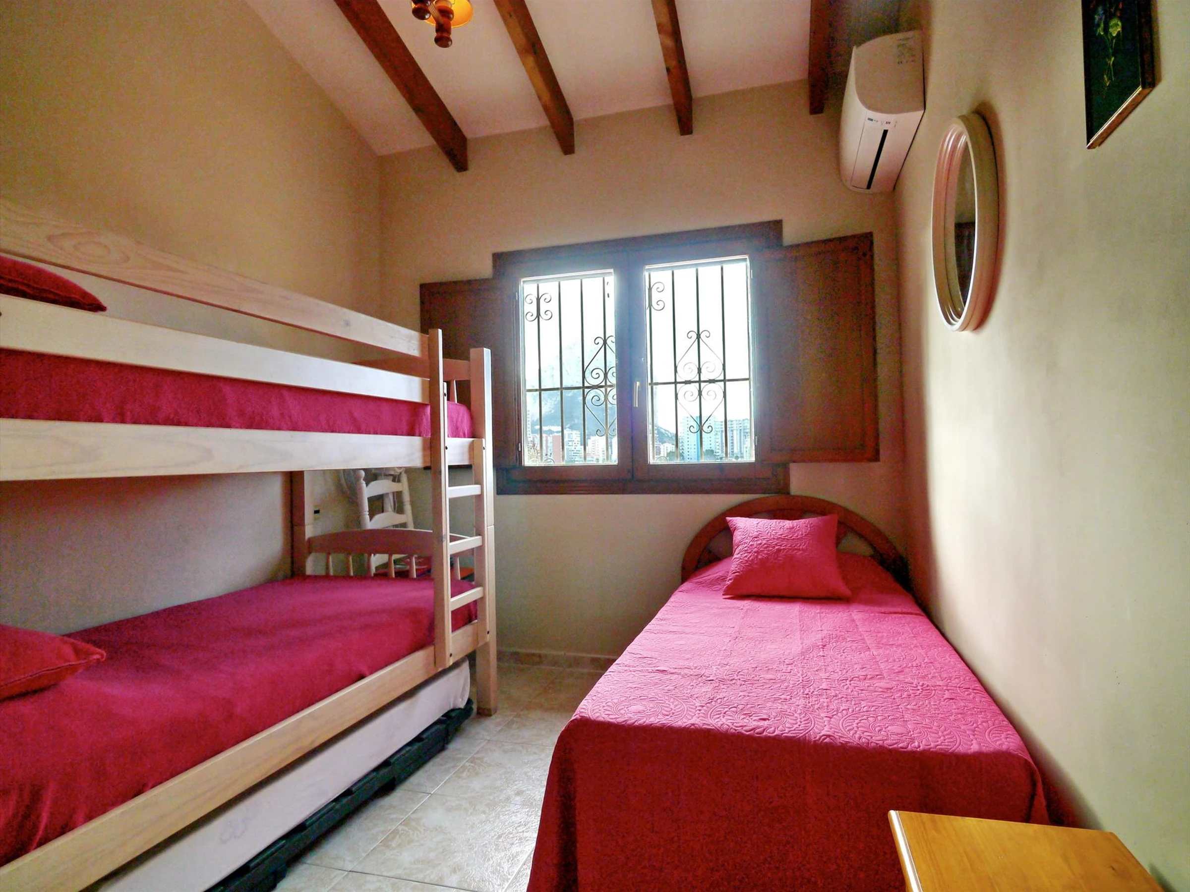 * Schlafzimmer mit Einzelbett, Etagenbett und Klimaanlage