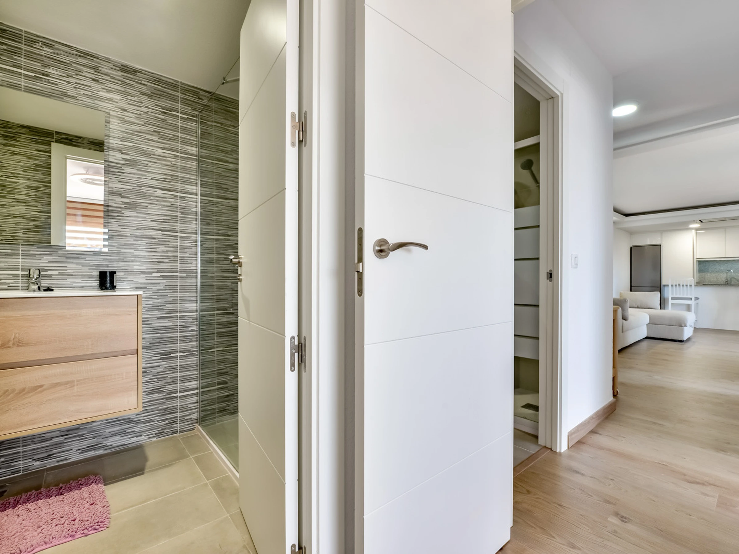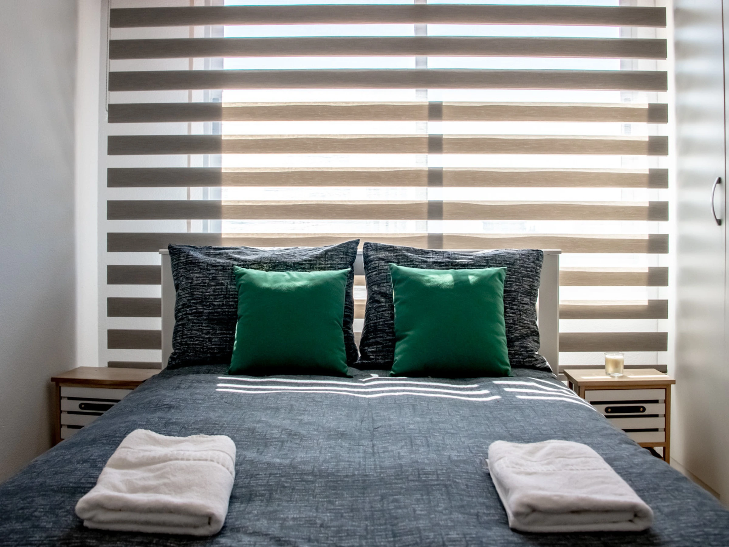 Die 76 m² große, neu renovierte und sehr helle Unterkunft verteilt sich auf ein geräumiges und helles Wohn-Esszimmer mit Klimaanlage, eine angenehme Terrasse mit einem schönen künstlichen Rasen und Blick auf den Naturpark Peñon de Ifach und den Gemeinschaftspool. Eine offene Küche mit einer bequemen Theke, ein Schlafzimmer mit einem Doppelbett von 160 cm, ein Badezimmer mit Dusche, ein zweites Schlafzimmer mit einem Doppelbett von 160 cm und ein zweites Badezimmer mit Dusche.