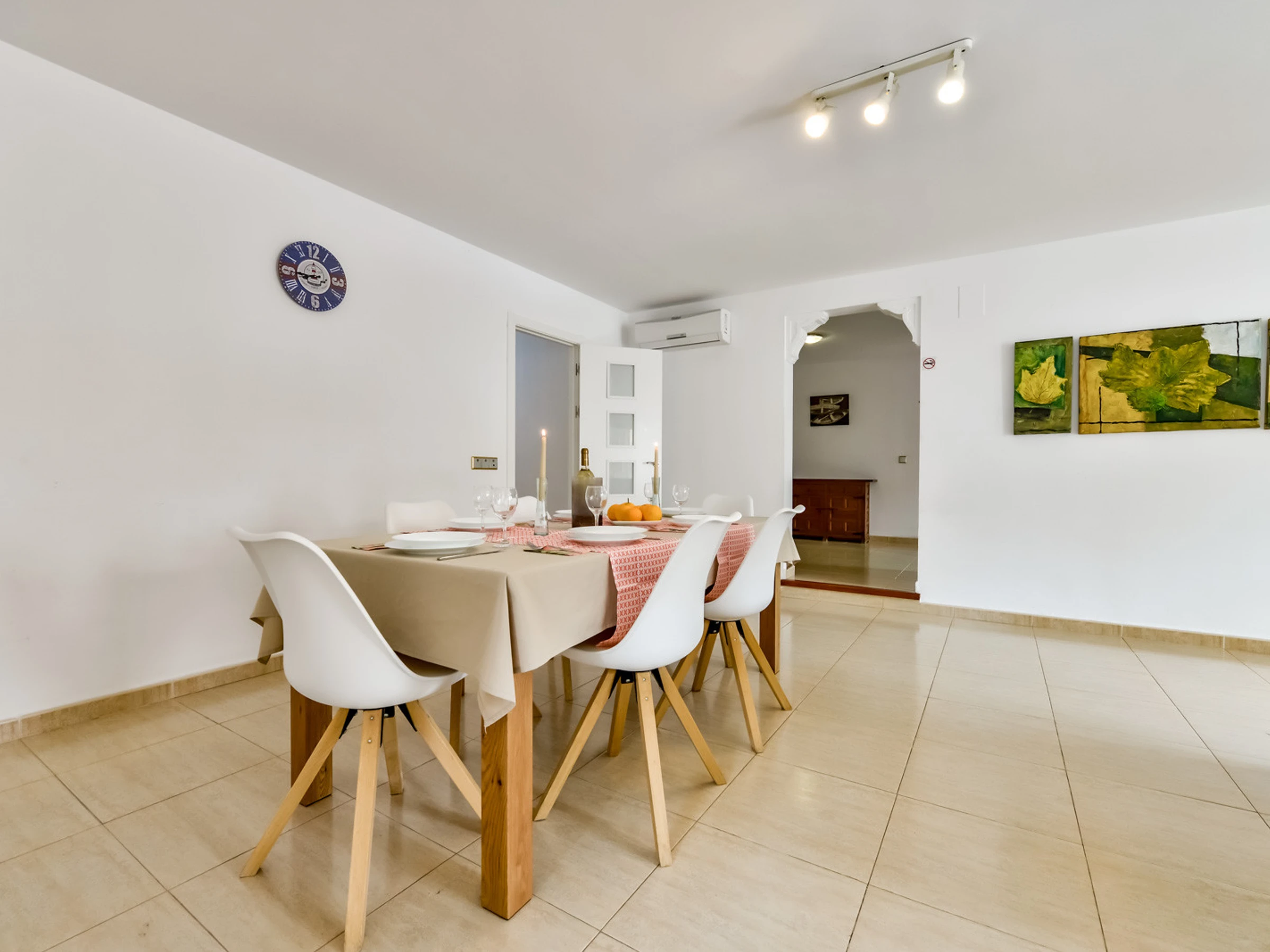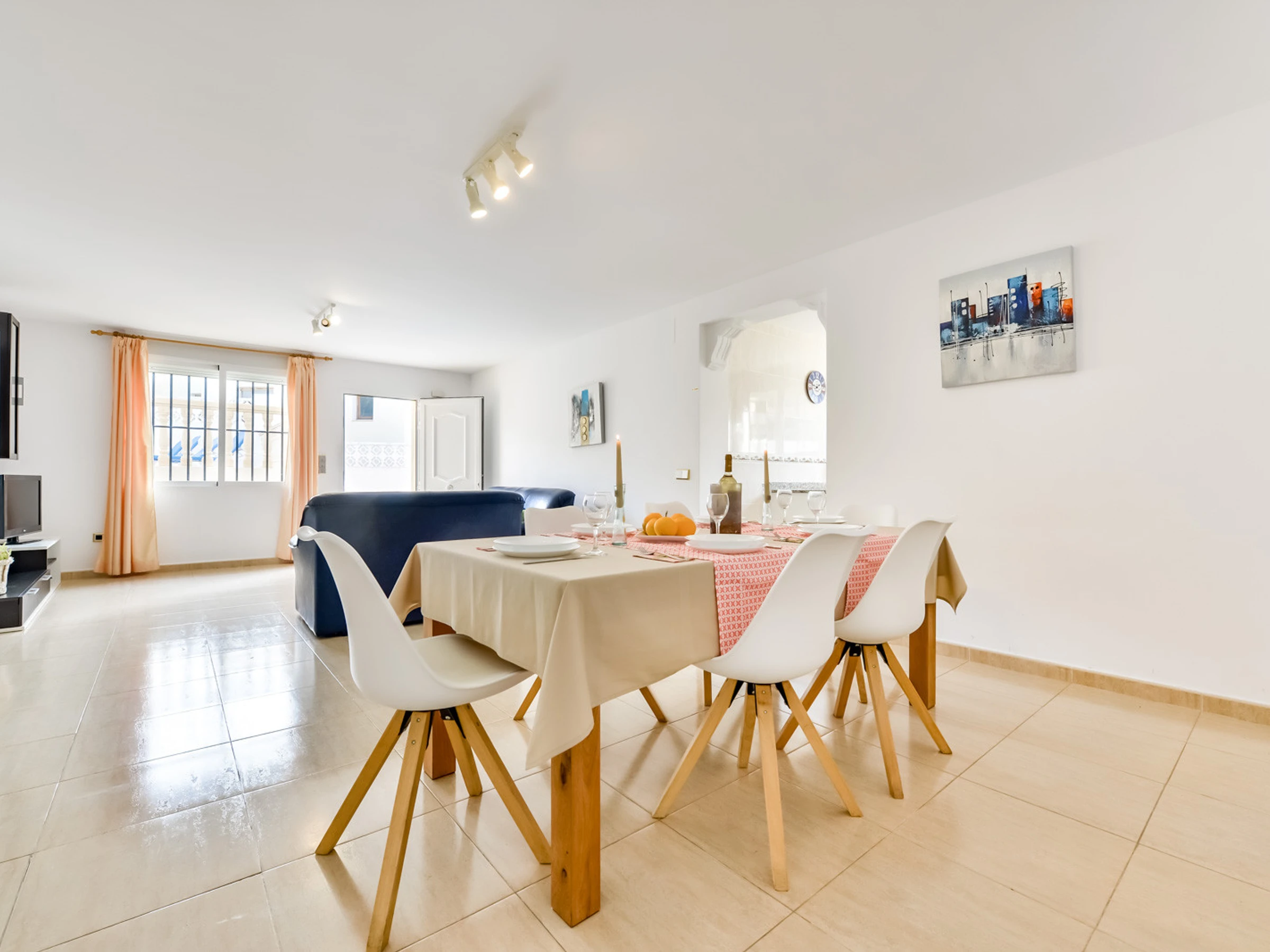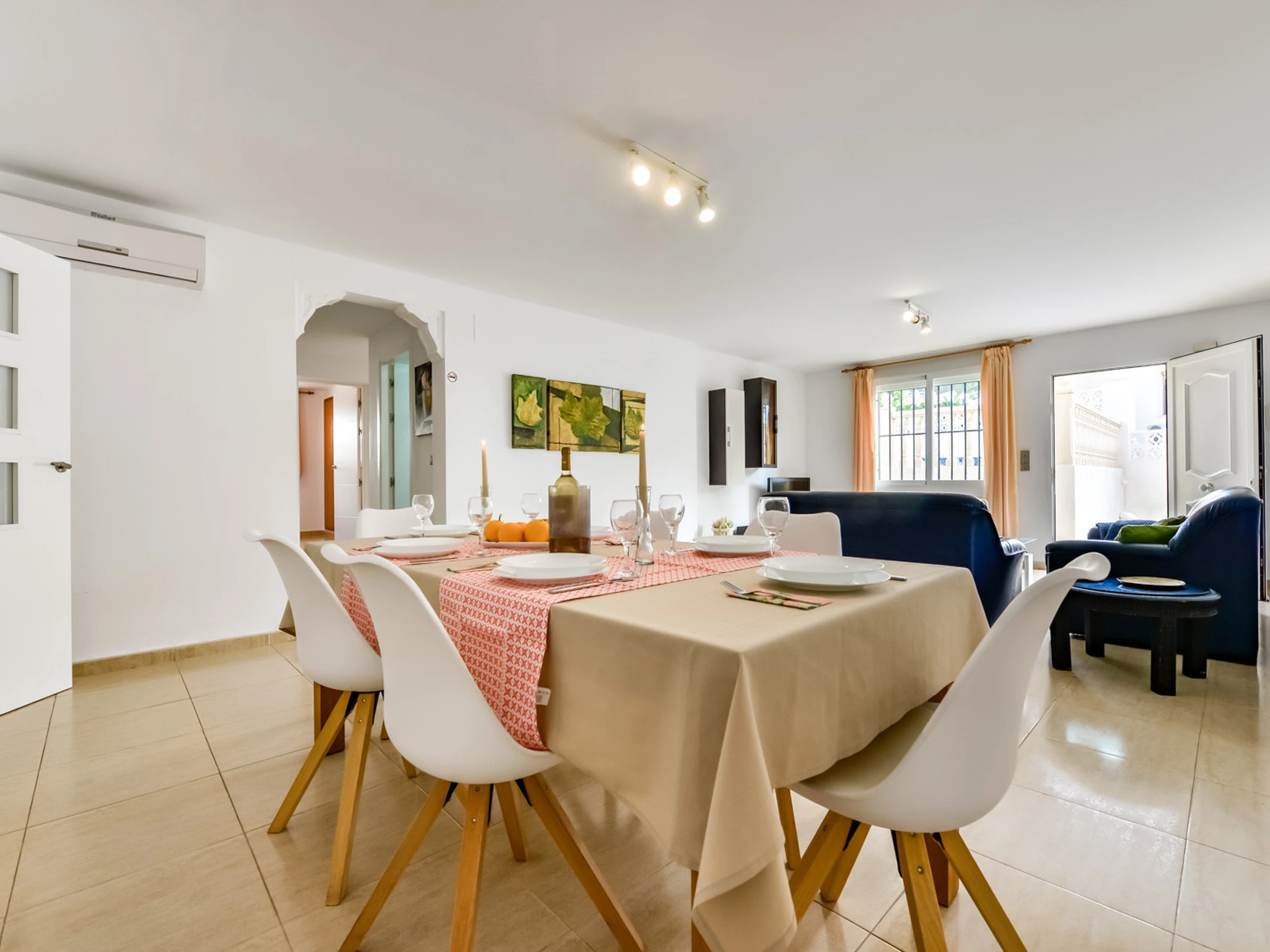 Es verfügt über einen Garten, Gartenmöbel, ein eingezäuntes Grundstück, eine 60 m² große Terrasse, mehrere tragbare Ventilatoren, einen Grill, ein Bügeleisen, einen kostenlosen Internetzugang (WLAN), eine Wärmepumpenheizung, eine Klimaanlage, einen privaten Pool und einen Parkplatz unter freiem Himmel im selben Gebäude Fernseher, Satellitenfernsehen (Sprachen: Spanisch, Deutsch, Französisch).