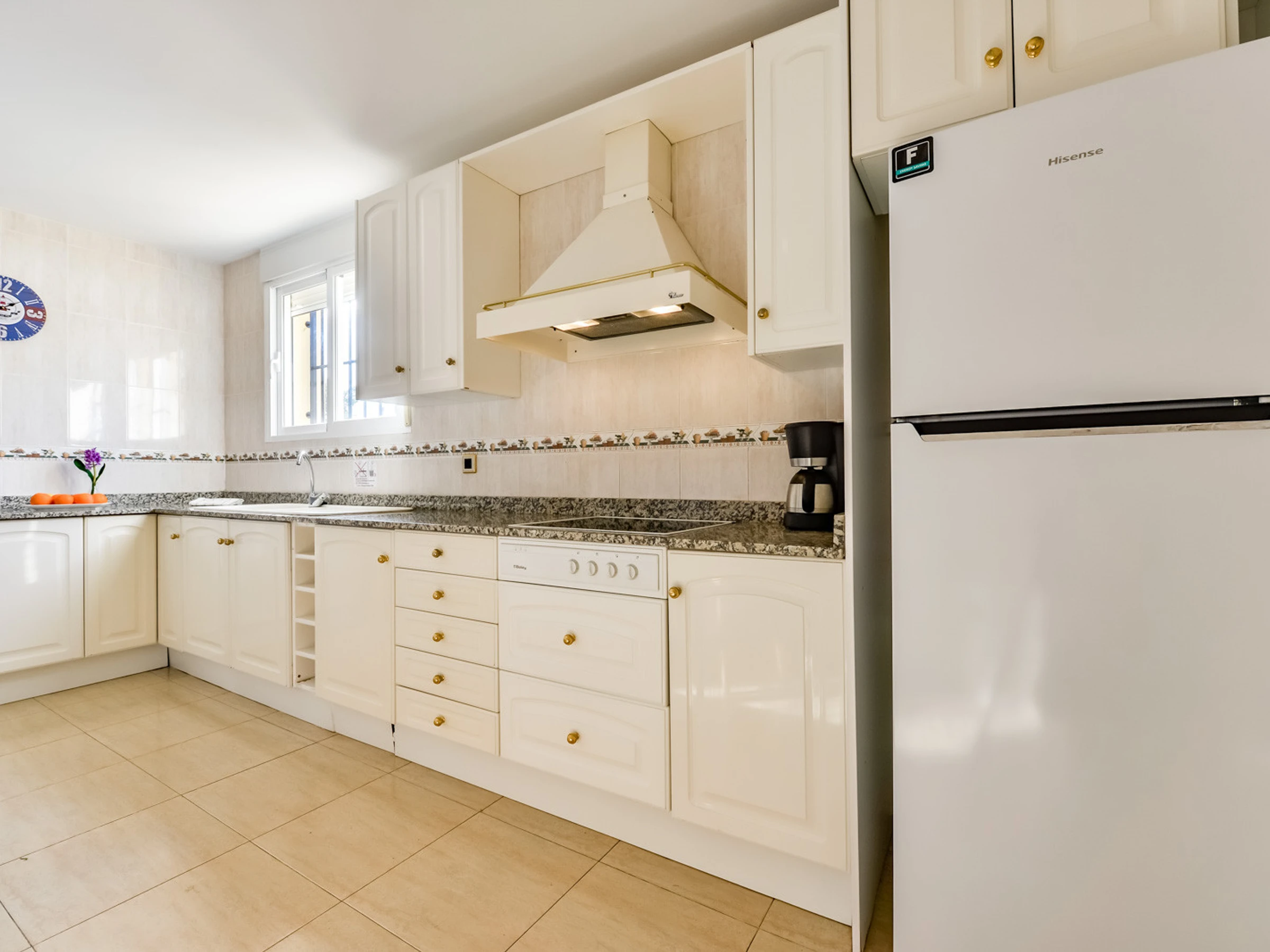 Die unabhängige Glaskeramikküche ist mit einem Kühlschrank, einer Mikrowelle, einem Backofen, einem Gefrierschrank, einer Waschmaschine, einem Geschirrspüler, Geschirr / Besteck, Küchenutensilien, einer Kaffeemaschine, einem Toaster, einem Wasserkocher und einer Saftpresse ausgestattet.