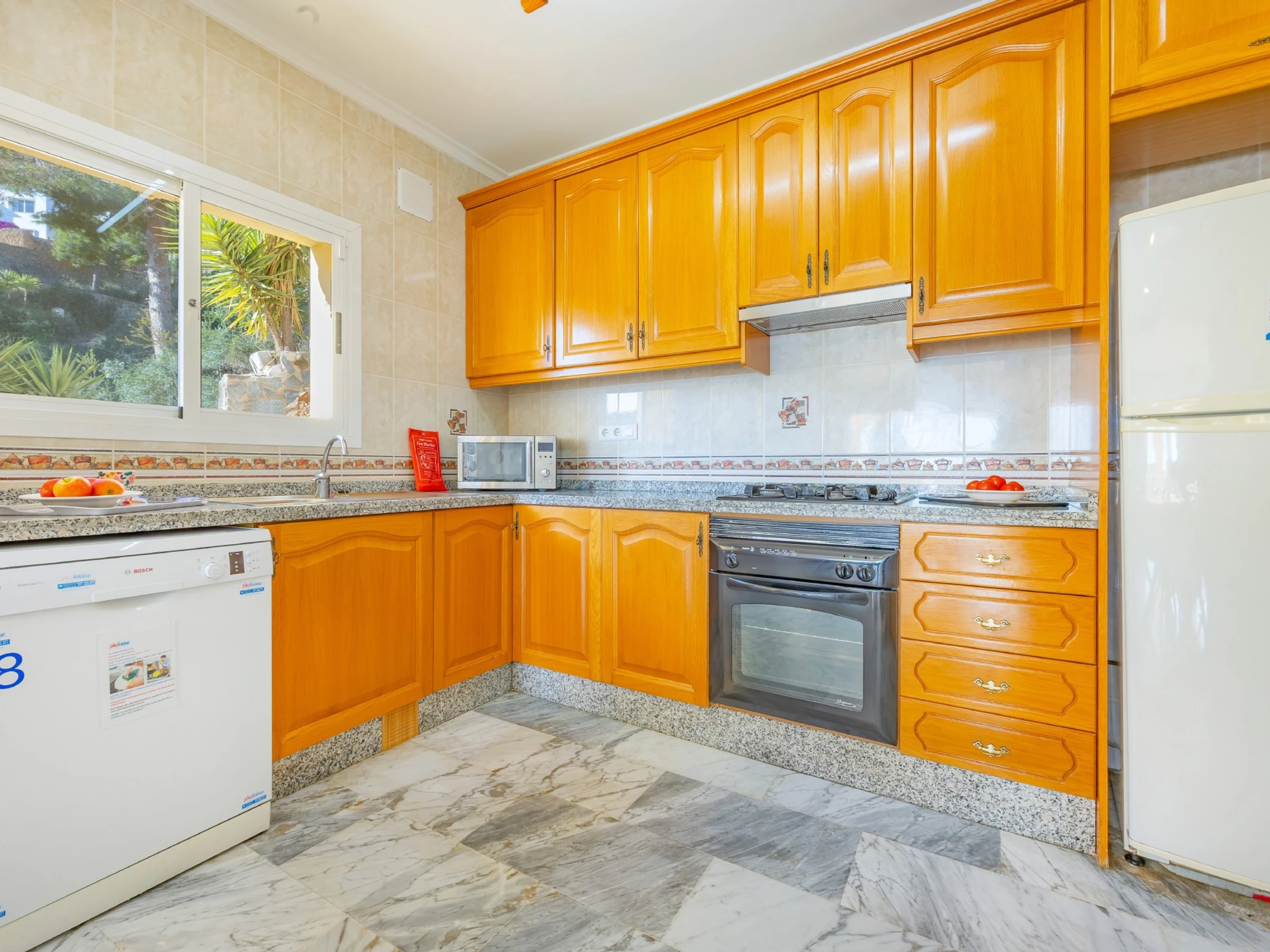 Die schöne Villa befindet sich auf der OBERSTEN ETAGE, wo Sie eine gemütliche Eingangshalle, ein Schlafzimmer mit einem Doppelbett und Zugang zu einer sonnigen Sonnenterrasse mit atemberaubendem Blick auf das Meer finden. Dieses Schlafzimmer hat auch ein eigenes Badezimmer mit Badewanne. Wenn wir die Innentreppe hinuntergehen, erreichen wir das ERDGESCHOSS, das ein geräumiges Wohn- und Esszimmer mit SAT/TDT-TV und Meerblick sowie Zugang zu einer überdachten Terrasse und dem Poolbereich bietet. Die offene Küche, komplett ausgestattet mit Gasherd und Geschirrspüler, wird zum Herzstück des Hauses. Zwei weitere Schlafzimmer, beide mit Meerblick (eines mit einem Doppelbett und das andere mit zwei Einzelbetten), sowie ein weiteres Badezimmer mit Dusche runden die Innenausstattung ab.